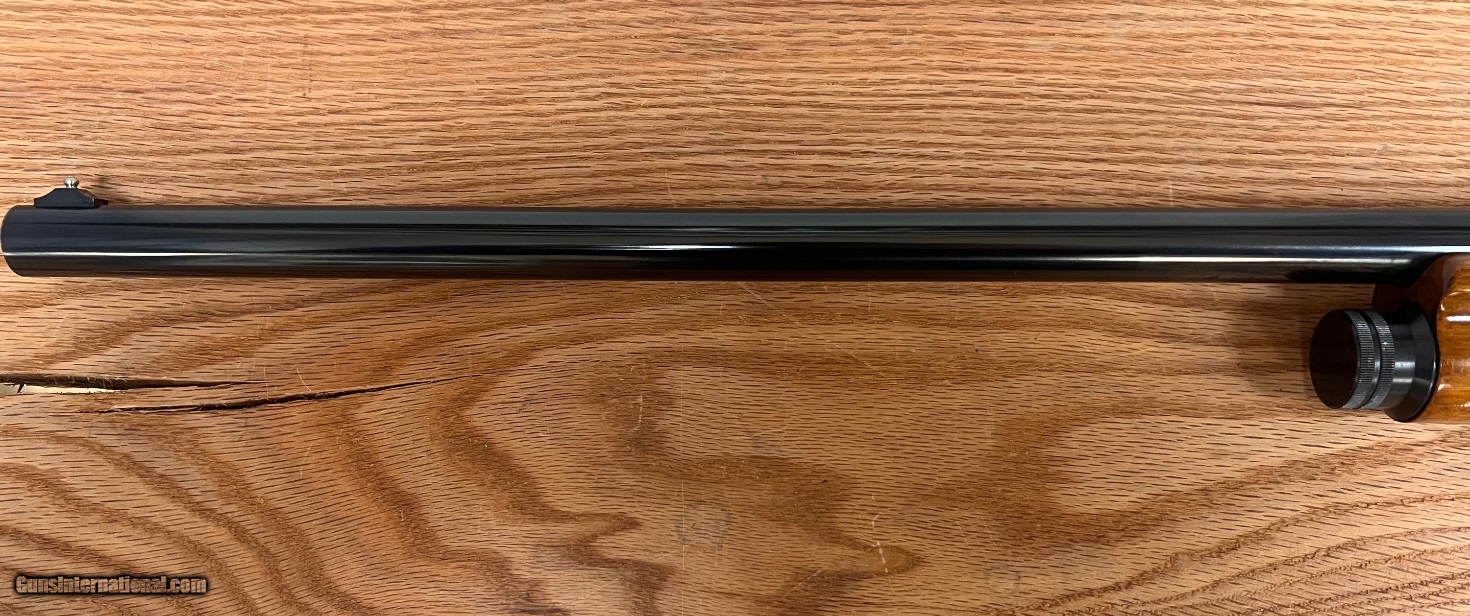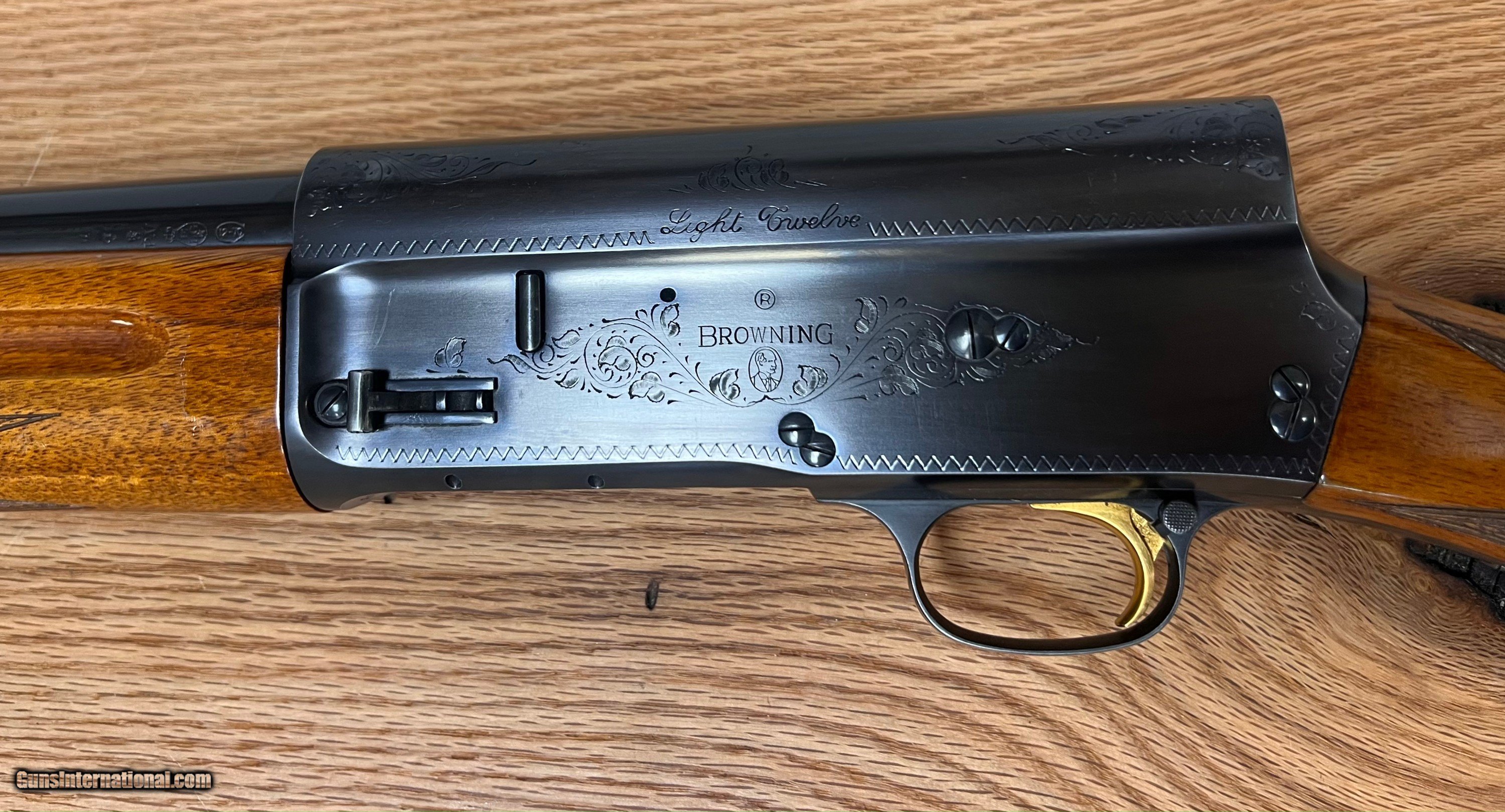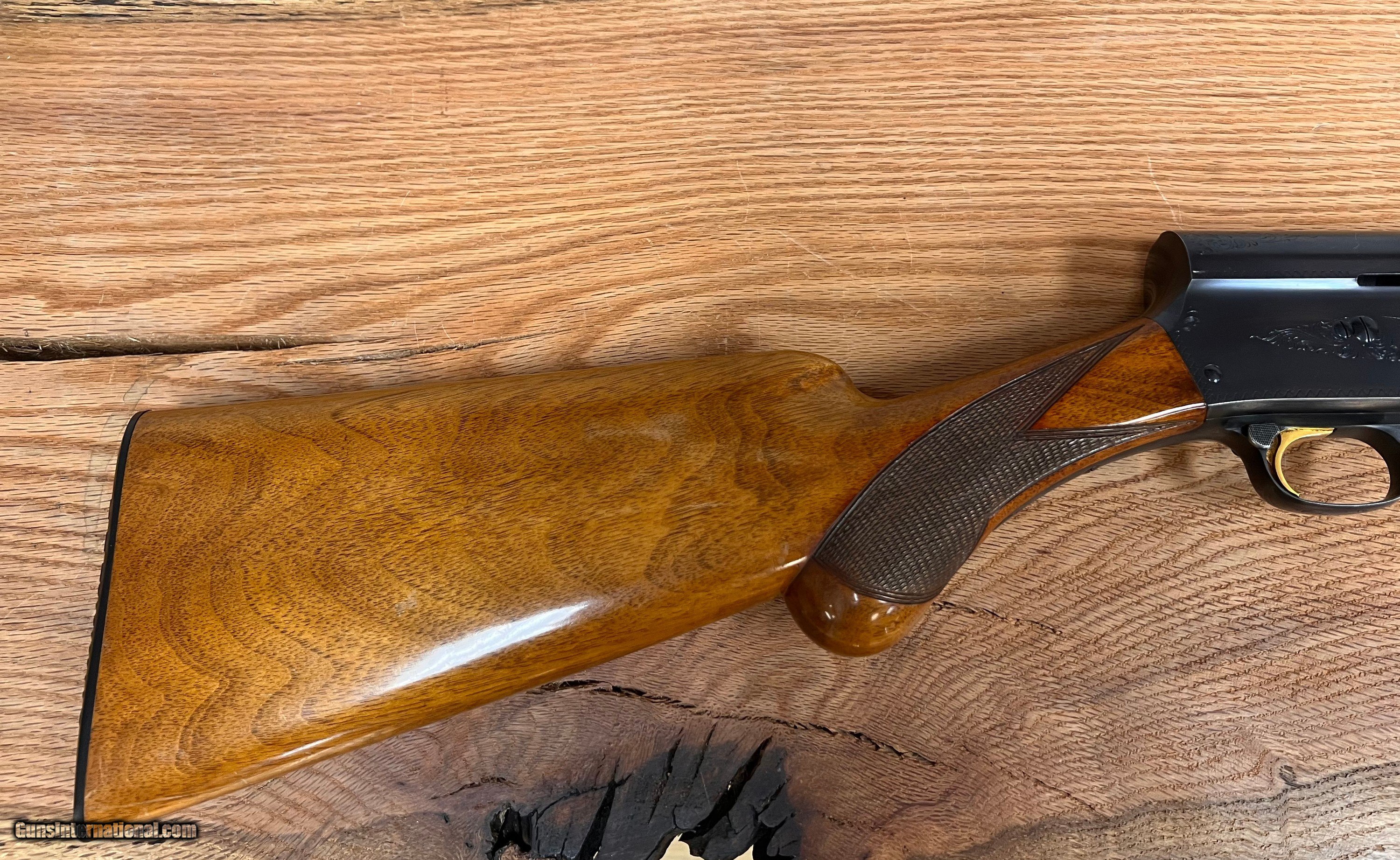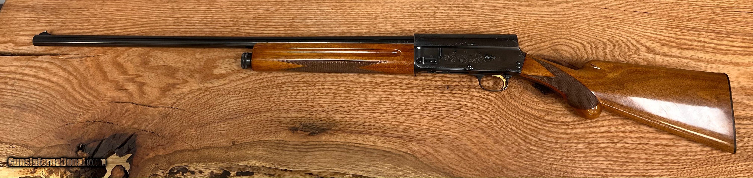 Description: This is a Belgium Browning A5 Light Twelve that is in excellent shape, Bluing is in impeccable condition, there is no rust, and very light wear. Has original furniture and looks to have never been opened. This particular piece was manufactured in 1957, during the time frame of 1947-1962 Browning outfitted the A5 with a reddish stock and forearm configuration as well as a rounded knob on the stock. This piece has been a safe queen most of its life and is in great shape, the perfect piece for any A5 collector. The barrel is 28 inches long and has a modified choke. SOLD Shotgun Gauge: 12 Gauge Manufacturer: Browning Model: A5 Light Twelve Serial Number: 2G80324 Manufacture Date: 1957 |