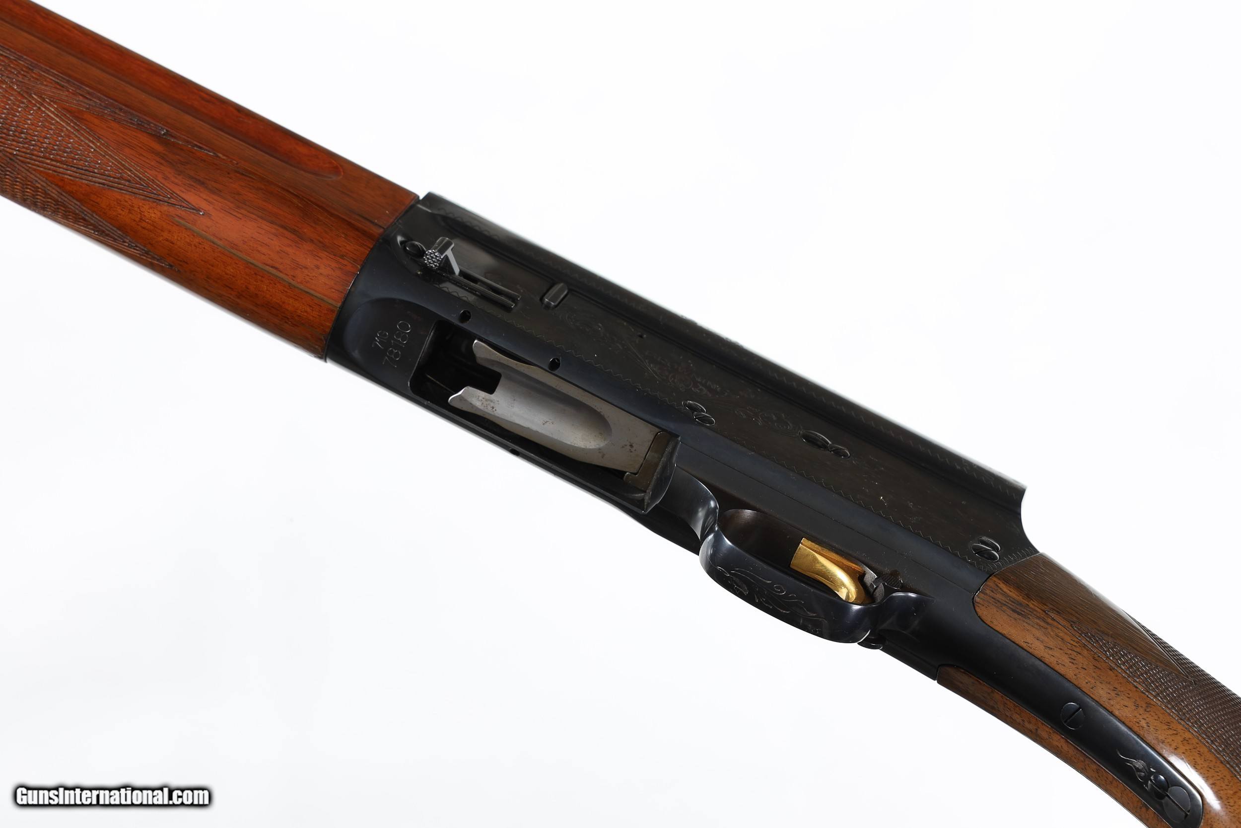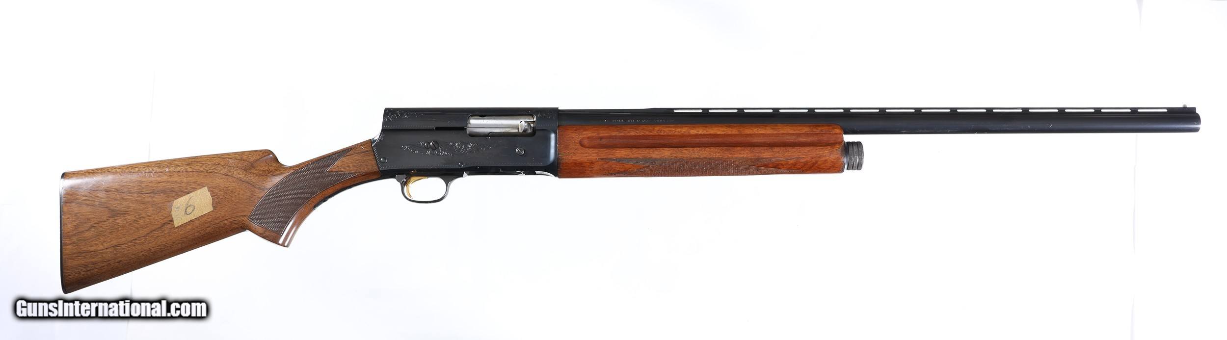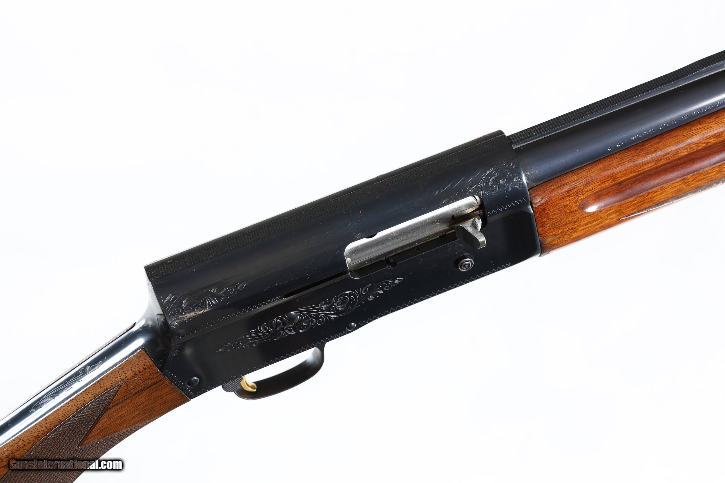 Description: Metal surfaces rate excellent. Hairline crack at underside of forend. Modified choke, 2 3/4" chamber, 14" LOP. Mfd in Belgium. Includes Certificate of Provenance stating it was previously a part of the Winchester Factory Collection where it was maintained by U.S. Repeating Arms. Barrel 25 1/2", C&R. SOLD Curio/Relic: Yes Manufacturer: Browning Model: A5 Light Twelve Serial Number: 71G78180 Metal Condition: Excellent. Action: Semi Shotgun Gauge Info: 12ga LOP: 14 |
