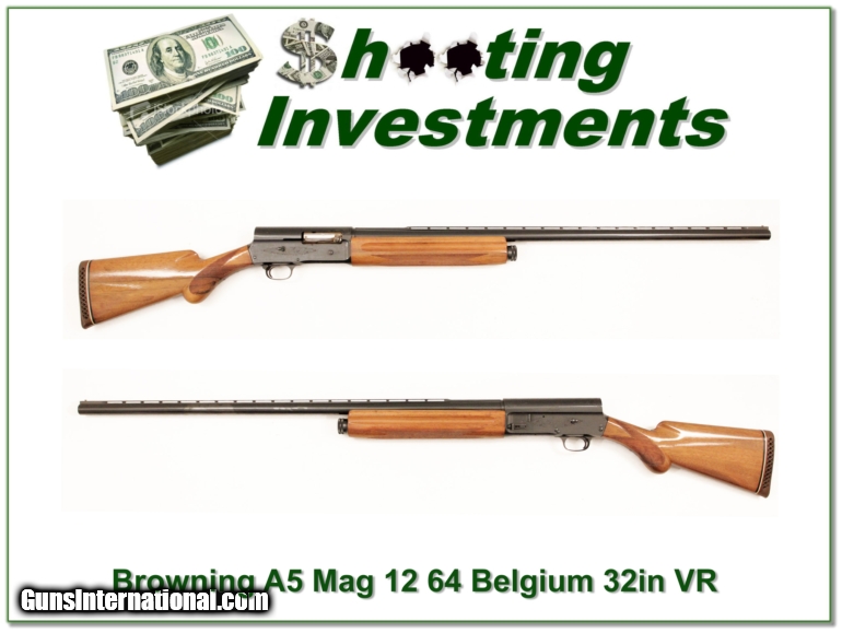 Description: This Browning A5 is a Magnum 12 Gauge. It was made in Belgium in 1964 and has the desirable round knob honey blond wood. This one has a 32in Vent Rob barrel. Blue shows little use with no edge or recoil wear. The wood has only a few marks with most being on the left side of the forearm. This is a nice classic A5 that you can use yet still expect to increase in value over time. That makes it a Shooting Investment. Shipping and insurance is $30 or for $18 more (my cost) I’ll ship it in a new Plano hard case. Please email me with any questions or larger pictures. (I now consign quality firearms only 10%! Let me know if you have any you would like to sell!) [15-0276] Payment: Payment is by Money Order, Cashiers Check or Personal Check. I can now also accept MasterCard and Visa with a 3% convenience fee. PayPal can be used for some items but never firearms. Please let us know if you would like to pay via PayPal. Shipping: The shipping charge will be listed in each description. It is $30 for most guns. Some heavy guns or those insured for over $2000 may be higher. Shipments to Alaska and Hawaii are higher because air shipment is required. Most firearms are shipped within 5 days of receipt of payment. We prefer shipping at the beginning of the week to avoid firearms in transit over weekends. We package all shipments carefully and insure them for the full purchase price, rounded up to the next $100. In the unlikely event that damage occurs, it is important that you save all packaging material for the claims process. Optics are shipped Priority Mail and most other non-firearm shipments are shipped First Class. Returns: Our return policy is simple. If for any reason you are not pleased with your purchase, you may return your item for a refund. The only exception is ammunition, it cannot be returned. It is important to us that you are happy. Guns cannot be fired or dissembled before returning them and must be returned in the same condition as received. Notification of a return must occur with-in 3 days of receipt at your dealer. Shipping, convenience and dealer fees are not refundable and are the responsibility of the buyer. Lay-a-way: If needed, we offer a 60 day lay-a-way option on most firearms. It is 1/3 now, 1/3 in 30 days and 1/3 in 60 days. Lay-a-way firearm sales are final. Consigning your firearms with Shooting Investments: We will help you get top dollar for your firearms. While most local guns shops charge 20% or more, our fee is only 10% with a minimum of $50. At your local gun shop it might take months to sell. Selling on-line provides instant access to thousands of interested buyers. You won’t find any other on-line dealer willing to sell your firearms for only 10% or listing every gun on 4 separate s. Selling through an House typically costs the seller 15% and the buyer an addition 15% (so 30%) and you have to wait several months to sell and longer to receive funds. If properly priced, we will sell your firearms in a week or two. Send us an email or give us a call and we’ll explain how easy it is for you to get top dollar. Trading: We collect guns and usually just trade for guns we want to add to our collections. We often sell guns for others wanting to purchase one of ours. We find this the most fair to both of us. Our Commission is only 10% and we hold the gun you want until yours sells. Please contact us if you want to sell one of yours to buy one of ours. Help for California Buyers: We are happy to ship to California. It is the buyer’s responsibility to make sure any item you buy is legal in your state. We are also happy to help with your purchase of a firearm from someone other than us. If you see a gun you would like to buy but the seller can’t or won’t ship to California we can help. You buy the gun and have it shipped to us. We’ll then ship it to your California dealer. The cost for this service is only $30 + shipping. Let me know if we can help! SOLD |