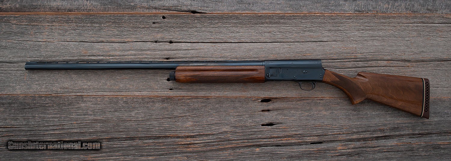 Description: Browning - A5 Magnum - 12 ga - Item Number: BRO72V6643 Shotgun type: Semi-Auto Action: Semi-Auto Ejectors: Yes Trigger: Single Grip: Pistol Grip Forend: Checkered Lop: 14 1/4 " Pad thickness: 1 " Type of butt: Factory Pad Drop comb: 1 5/8 " Drop heel: 2 1/2 " Cast amount: 1/8 " Cast: Off Weight: 9 lbs, 4 oz Manufactured in: Belgium Finish: Blue Overall condition: Very Good Stock condition: Very Good Metal condition: Very Good Stock: Original finish Metal: Original finish Type of Case: none Extra barrels: 0 Barrel info: Gauge: 12 ga Chamber: 3 " Length: 32 " Chokes: Full Rib type: Ventilated Comments : Gun is in very good condition with some light handling marks. SG-109 SOLD |