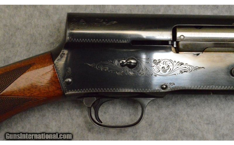 Description: This Browning A5 Magnum was made in Belgium. SOLD Manufacturer: 1969 Caliber Info: 12 Gauge Chambers: 3 Metal Condition: Very light surface scratches Wood Condition: Very light surface scratches Bore Condition: Bright and shiny Barrels: 28 Stock: Walnut Stock Dimensions: 14 1/2" LOP Fore End: Checkered walnut Butt Pad: Browning recoil pad Weight: 8 Lbs. 8 Ozs. Sights: Brass front bead Chokes: Fixed modified Item Location: Huntsville, AL |