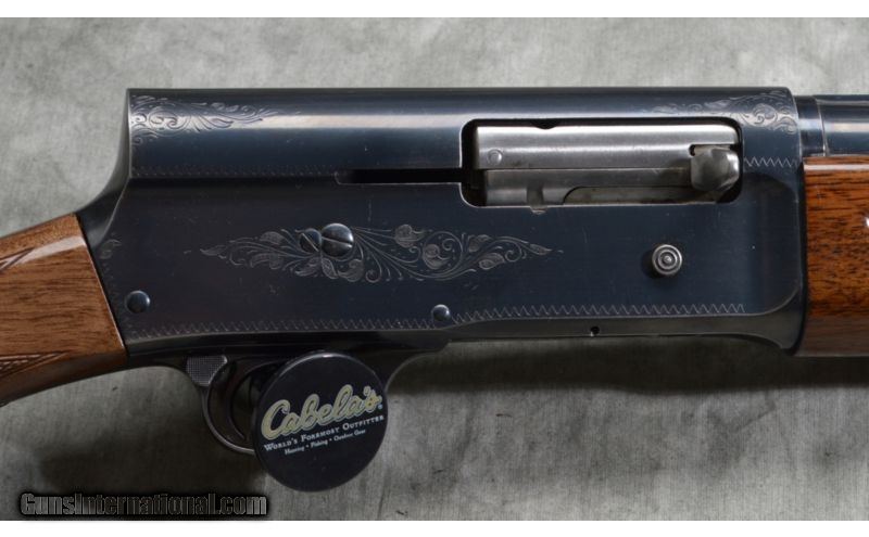 Description: A venerable Browning A5 featuring 31-1/2 inch barrel chambered for 3 inch magnum shells. A pretty reddish wood with the round knob and very well-maintained. SOLD Manufacturer: 1967 Caliber Info: 12 Gauge Chambers: 3 Inch Metal Condition: Very good. Lft sside of the barrel has wear marks (rack wear) and some bluing is worn from the high edges of the receiver Wood Condition: Very good to excellent. Some small scratches and dings. Checkering very sharp. Bore Condition: Bright and shiny Barrels: 31-1/2 Inch Stock: Checkered Walnut round knob pistol grip Stock Dimensions: 14 - 1/8 Inch LOP Fore End: Matching walnut Butt Pad: Ventilated rubber Browning pad Weight: 8 lb. - 14 oz. Sights: Ventilated rib with silver bead Chokes: Fixed Improved Modified (marked Full) Item Location: Rogers,, MN |