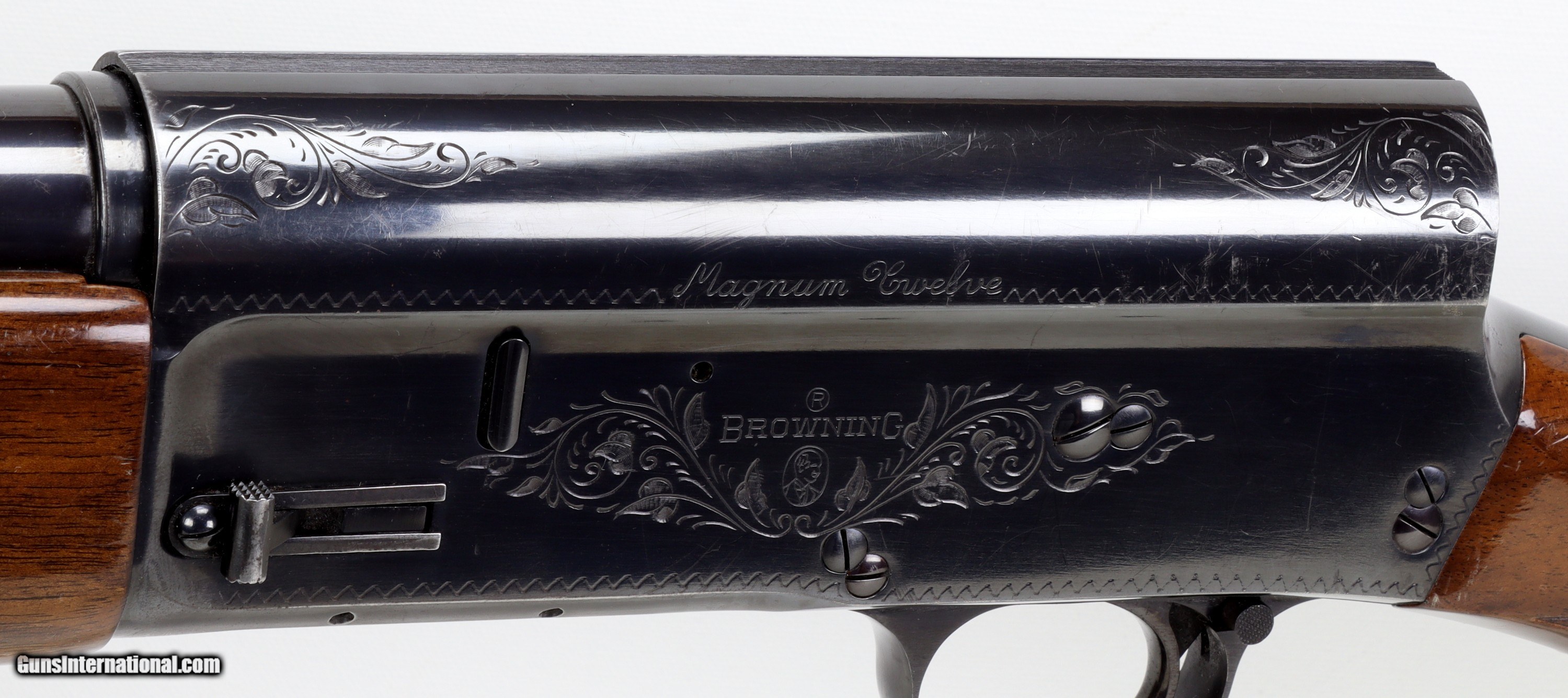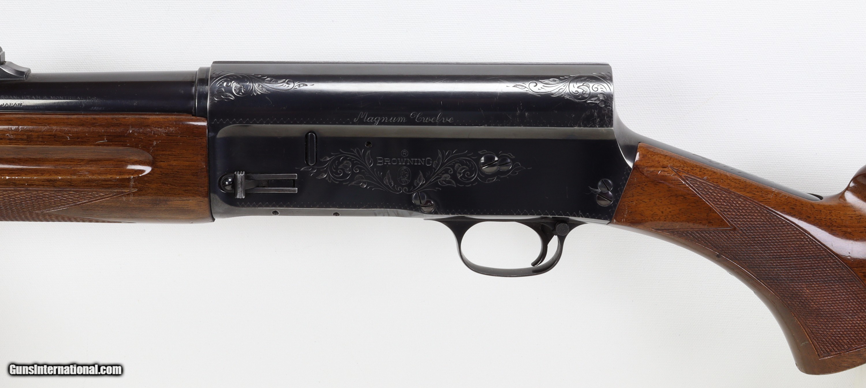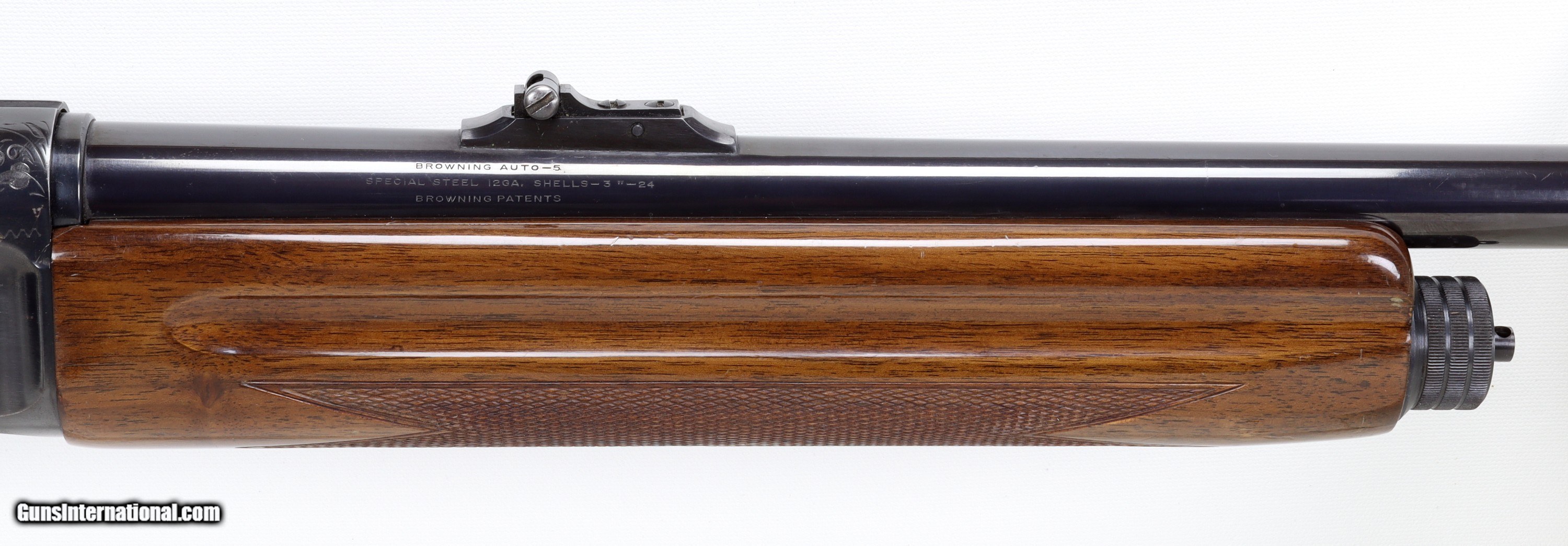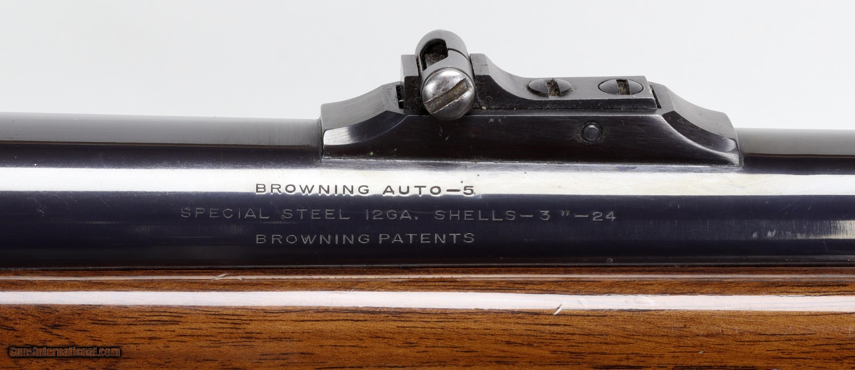 Description: BROWNING A5, MAGNUM 12, 24" "SLUG BARREL W/Sights, SN#28944/RR151, Fine Original Condition, LOP: 14 3/8", DAC: 2", DAH: 3". Trigger Pull: 4lbs, 3ozs. This Gun Made in 1977 in Japan. Ships to Lower 48, w/Insurance: $50.00 SOLD |