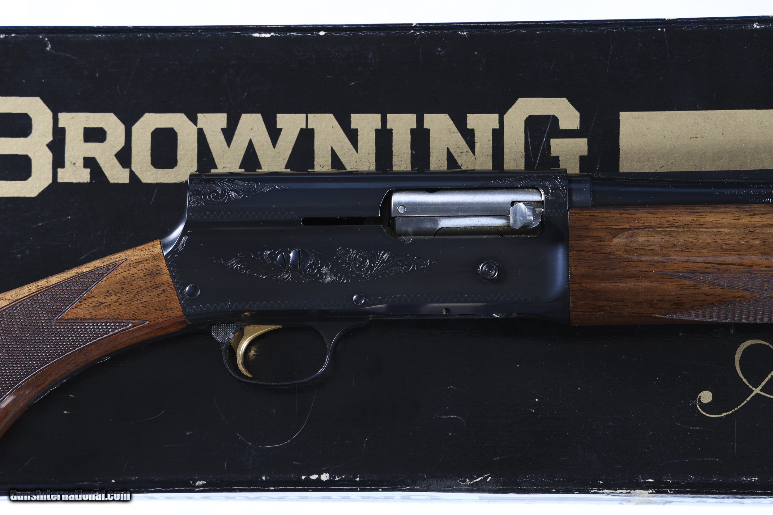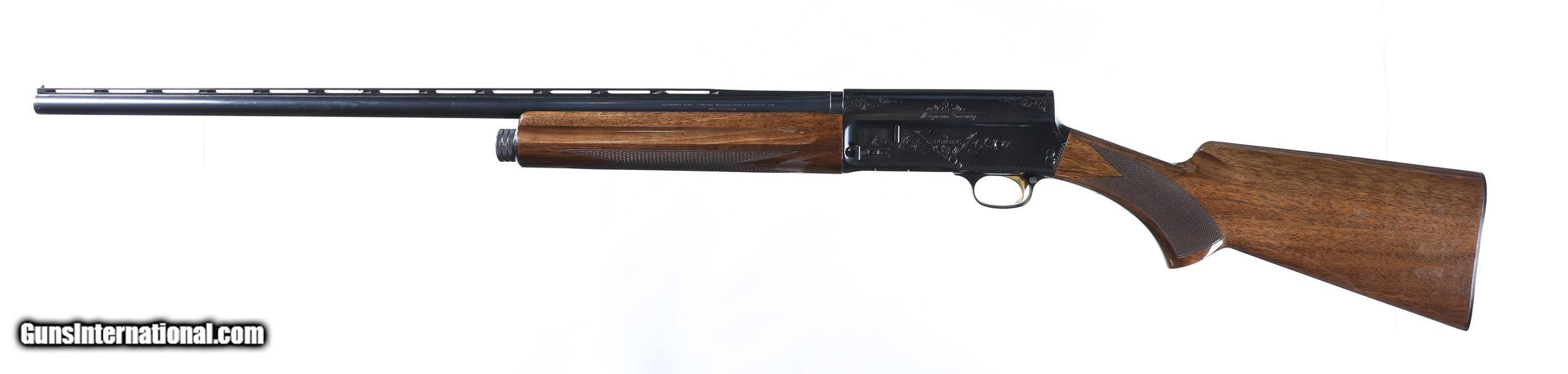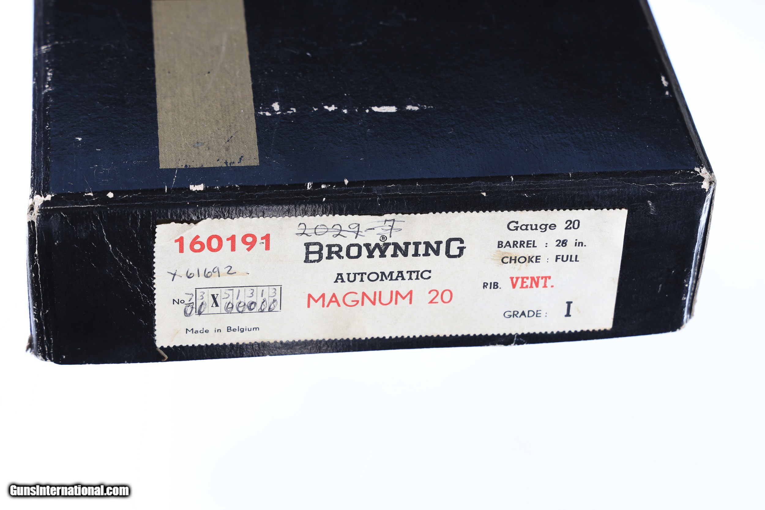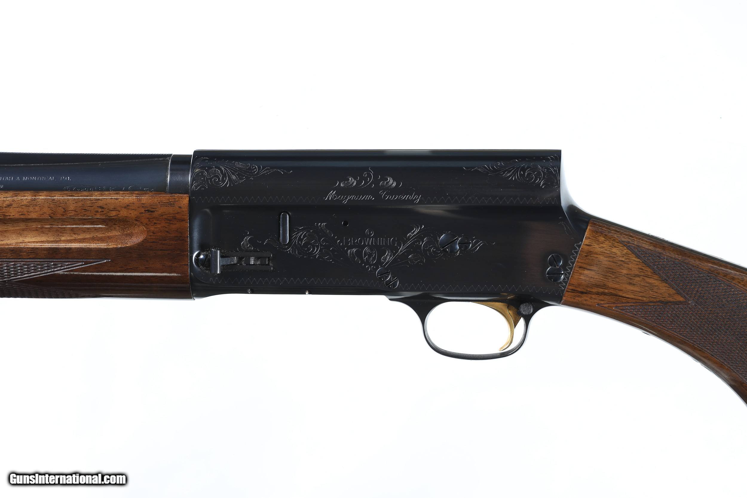 Description: Like new. Mfd in Belgium. With factory box renumbered to gun. Possibly test fired only. 3" chamber, full choke, and 14 1/8" LOP. Free Shipping, No Credit Card Fees! SOLD Manufacturer: Browning Model: Auto 5 Serial Number: 73X51313 Barrels: 27 1/2 Gauge Info: 20ga |