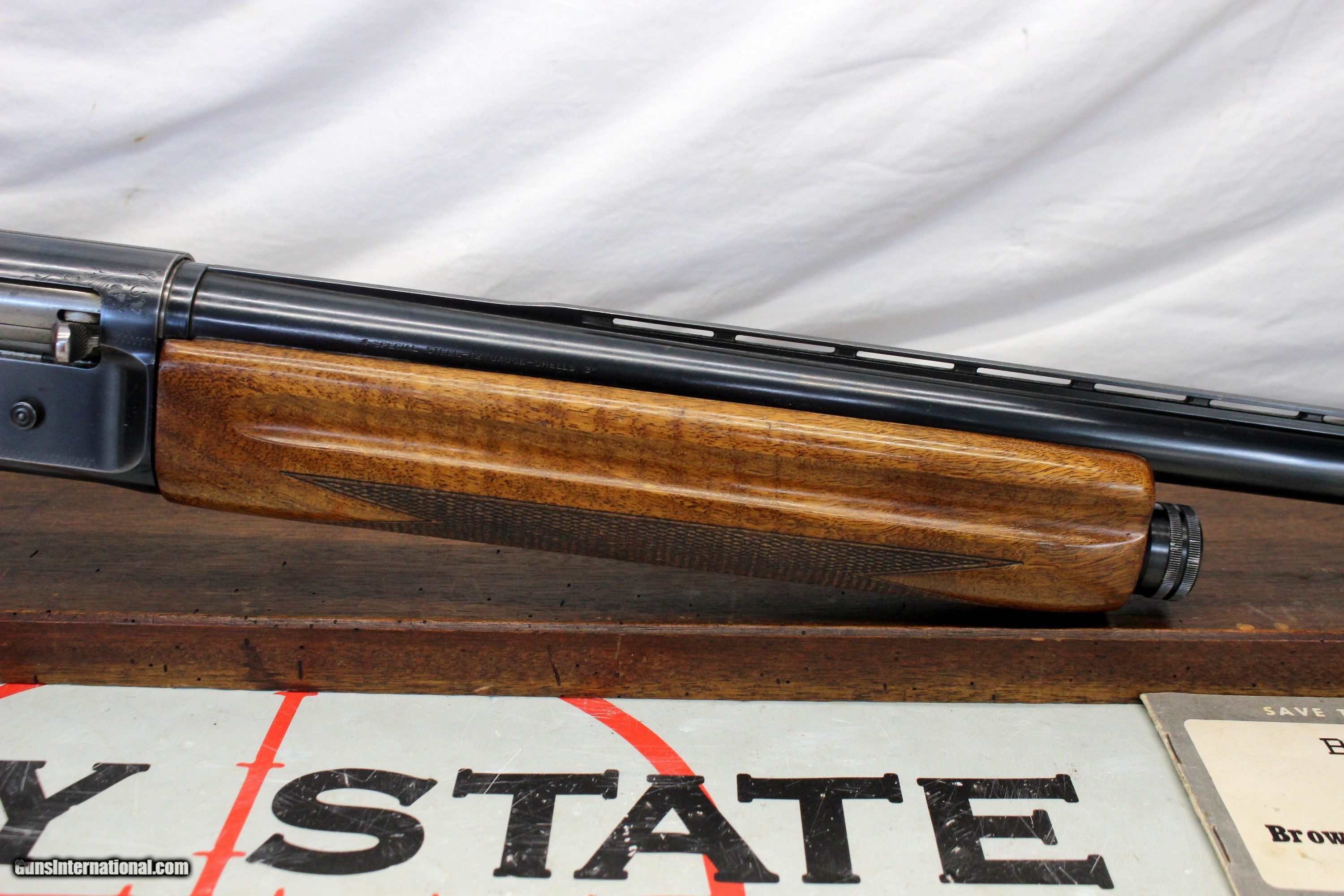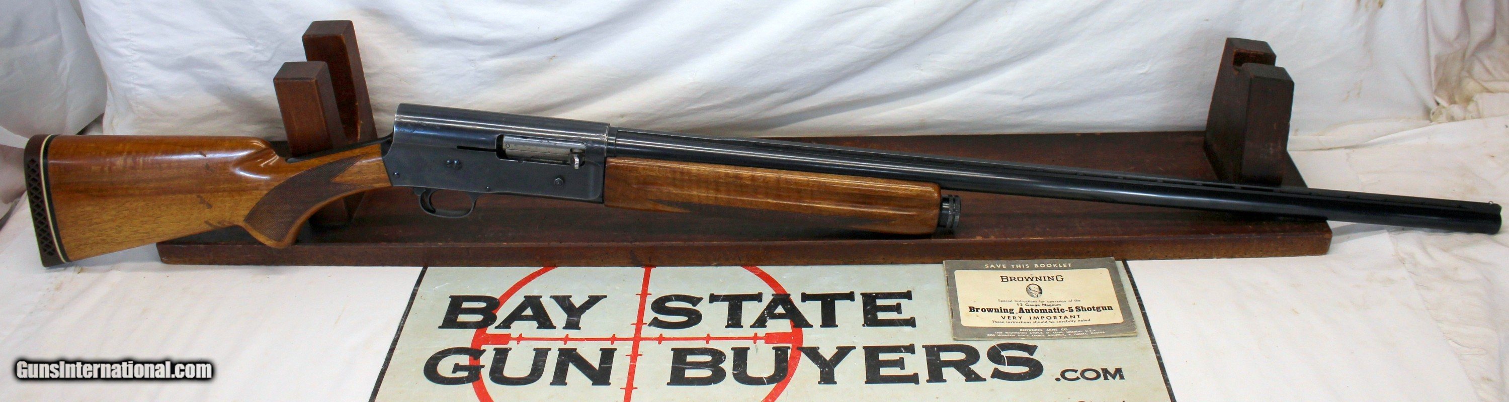 Description: We are offering for sale a Browning A5 MAGNUM semi-automatic shotgun chambred in 12Ga for 3" shells. This BELGIUM made shotgun remains in very good overall condition with hard to find 32" Vented Rib barrel. 32 (Actually 32.5") barrel is good to very good with scattered blue wear. The bore remains bright and clean. The action is good to very good with scattered field wear from use. No damage noted. Semi-auto functions flawlessly. The original shoulder stock is good with some field wear, light dings present. No breaks or cracks. Original forend is very good without cracks. Factory rubber recoil pad intact. 14.25" LOP. Approximate 9lb weight. ORIGINAL MANUAL INCLUDED! SEE PHOTOGRAPHS FOR DETAILS Shipping is $39.95 via USPS Ground PLEASE NOTE: WE DO NOT TAKE PAYMENT INFORMATION THROUGH THIS . WE TAKE ALL INFORMATION DIRECTLY OVER THE PHONE.BELGI PLEASE BE PREPARED TO CALL US WITH PAYMENT INFORMATION WHEN THE SALE IS COMPLETED ONLINE. . WE ONLY ACCEPT MASTERCARD & VISA PAYMENTS. WE CHARGE A NON-NEGOTIABLE 3% CC FEE Please know the legality of any weapon in your state before . If a gun can’t be transferred to you we will charge a 15% re-stocking fee. Also, we are a PART TIME business, Only in office Wednesday through Saturdays 10am-4pm. If you make an offer on Sunday-Tuesday we may not get back to you for 24+ hours, please send us an email with any questions, and we will do our best to get back in a timely manner. Thank You. We are not a shop open to the public, no private viewings. We stand behind our descriptions, and gladly take returns, however we know based on the descriptions given, you will not be disappointed. No Face To Face Transfers! Please note: Clicking "buy" does not guarantee that this gun is yours, However clicking “Buy” will reserve this gun for you, if it hasn’t been sold in store. We will try to do our best to remove the posts as efficiently as possible, but sometimes delays may ensue. “Buy” is your safest bet to reserve a gun. Also please add 6.25% MA state sales tax (if from MA) and 3% credit card shop courtesy fee. After Clicking “buy” we will need the following from you, via email before we ship. 1: A copy of your preferred FFL’s license via email () 2: Your preferred method of payment (If Credit card: 16 digit, MM/YY exp date, 3 digit code Plus billing address) 3: Your Shipping information/ Your preferred FFL’s Shipping information. You have 5 business days to arrange payments and ffl information to us. Any purchase not completed within this time frame will be cancelled, and the ad will be put back active online. Please before calling with concerns read these conditions and meet them accordingly. Shotgun Gauge: 12 Gauge Price: $999.00 Shipping: $39.95 Buy Now Contact Seller |