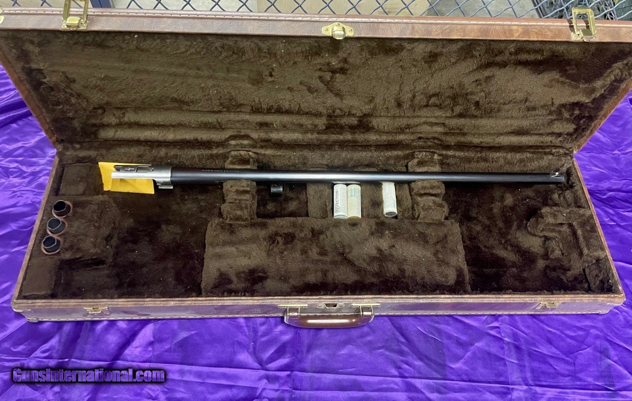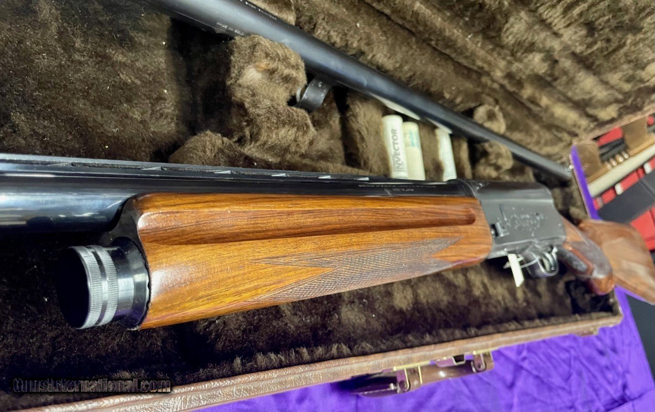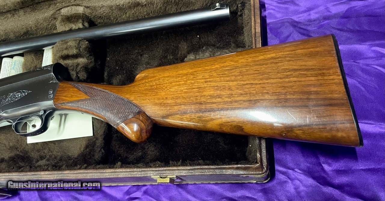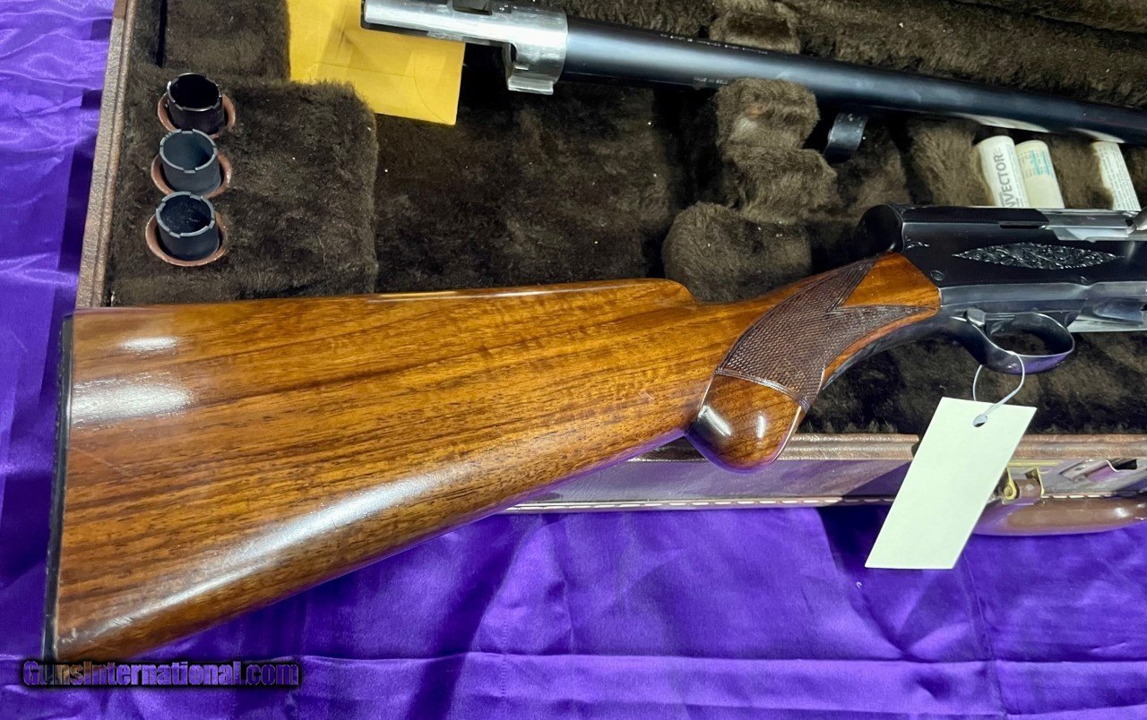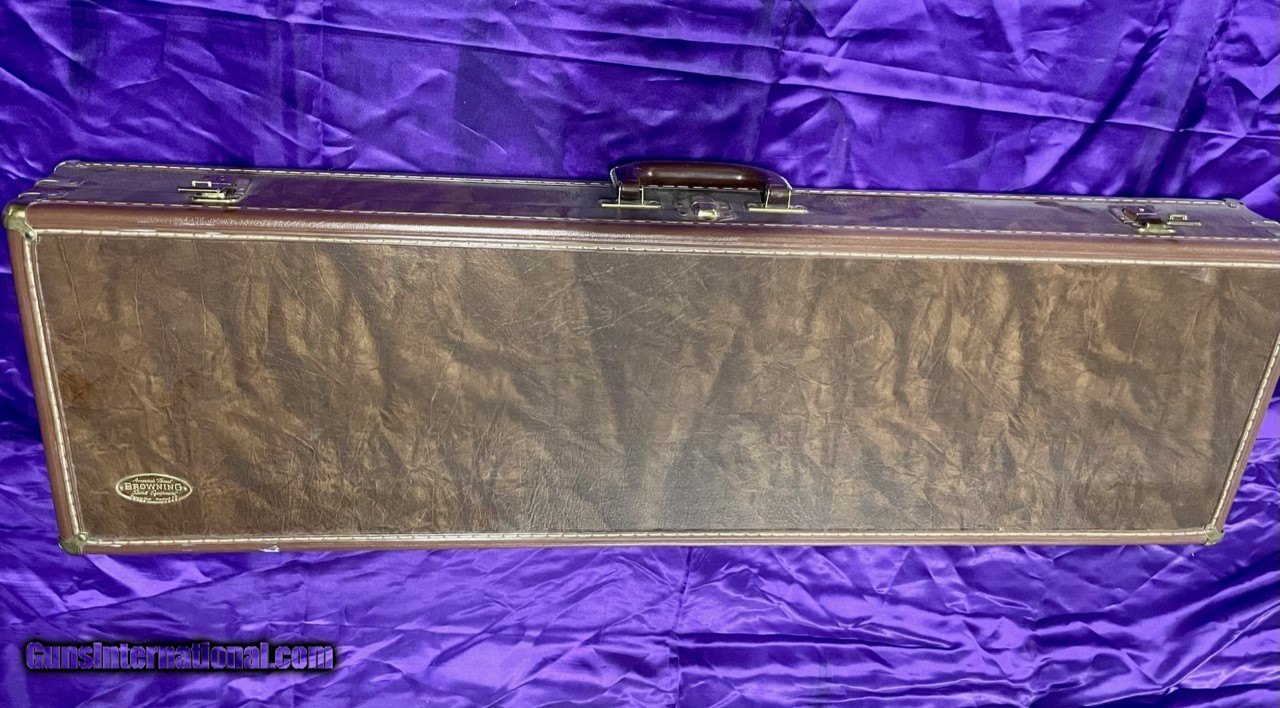 Browning A5, belgium made shotgun, two barrel set in factory Browning brown leather hard case. Factory Barrel is 28" modified cylinder. Additional barrel is 28" length Japanese made with Invector chokes.