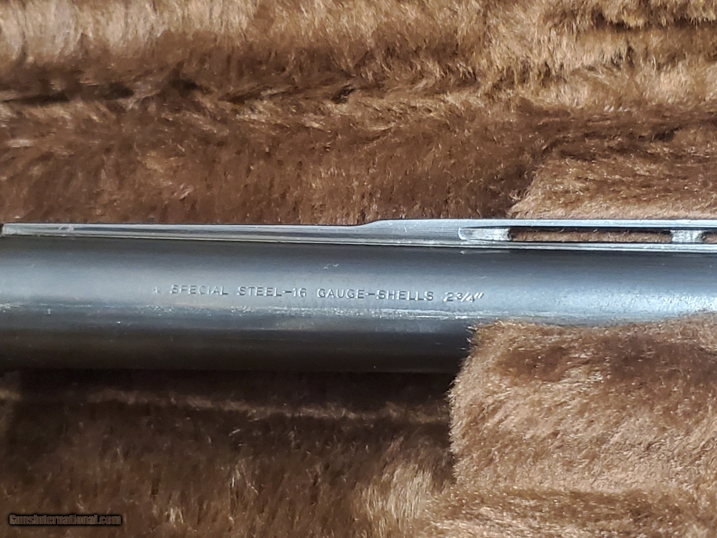 Description: Made in Belgium in 1966 Barrel is 28'' with a vent rib and choked FULL All factory and very clean. $50 for shipping. SOLD Curio/Relic: Yes Shotgun Gauge: 16 Gauge Manufacturer: Browning Model: A5 Condition: Excellent Metal Condition: Excellent Wood Condition: Very good with a few marks Bore Condition: Excellent Action: Semi Triggers: Gold Stock Comb: 1.5'' Stock Heel: 2.5'' LOP: 14.25'' Case: Factory Case |