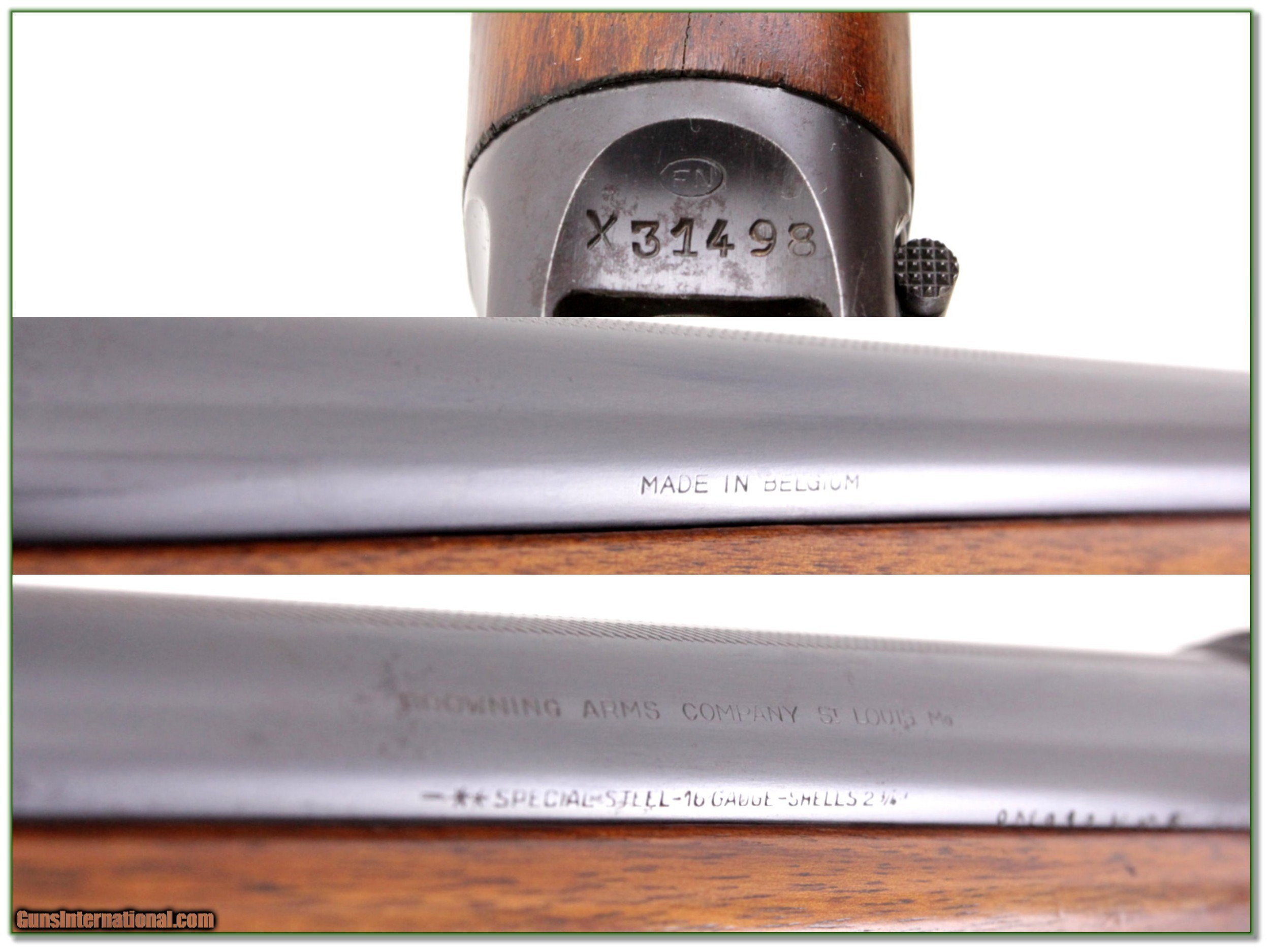 Description: This is a 1949 Belgium made Browning Sweet Sixteen. It is an early Sweet Sixteen with front safety. The blue is excellent, and it comes with 2 barrels. The one on the gun is a 26in IC barrel. The original barrel serialized to the gun has an added Vent Rib and Lyman adjustable choke. The LOP is 14.25in over recoil pad. This one will make a classic field gun and with the adjustable choked barrel you can use it for most anything! I am selling this one on consignment and as such lay-a-way can’t be used. It does of course have the standard 3-day inspection. Shipping with insurance is $39. Please email me with any questions or larger pictures. (Consign your quality firearms with Shooting Investments for only 12%! Let me know if you have any you would like to sell!) 19-0592 Payment: Payment is by Money Order, Cashiers Check or Personal Check. I can now also accept MasterCard and Visa with a 3% convenience fee. PayPal can be used for some items but never firearms. Please let us know if you would like to pay via PayPal. Shipping: The shipping charge will be listed in each description. It is $39 for most long guns and $29 for most handguns. Some heavy guns or those insured for over $2000 will be higher. Shipments to Alaska and Hawaii are higher because air shipment is required. Most firearms are shipped on Tuesday and Thursday and usually in 5 days of receipt of payment. We package all shipments carefully and insure them. For long guns you can purchase a new Plano case for $19. They now cost us $22 when buying 100 at a time. Optics are shipped Priority Mail and most other non-firearm shipments are shipped First Class. Returns: Our return policy is simple. If for any reason you are not pleased with your purchase, you may return your item for a full refund of purchase price. Ammunition cannot be returned. It is important to us that you are happy. Guns cannot be fired or dissembled before returning them and they must be returned in the same condition as received. Notification of a return must occur with-in 3 days of receipt at your dealer. Shipping, convenience and dealer fees are not refundable and are the responsibility of the buyer. Lay-a-way: If needed, we offer a 60 day lay-a-way option on most firearms. It is 1/3 now, 1/3 in 30 days and 1/3 in 60 days. Lay-a-way firearm sales are final and if not completed the first payment cannot be returned. Consigning your firearms with Shooting Investments: We will help you get top dollar for your firearms. While most local guns shops charge 20% or more, our fee is only 12% with a minimum of $75. At your local gun shop it might take months to sell. Selling on-line provides instant access to thousands of interested buyers. You won’t find any other on-line dealer willing to sell your firearms for only 12% or listing every gun on 3 separate s. Selling through an House typically costs the seller 15% and the buyer an addition 15% (so 30%) and you have to wait several months to sell and longer to receive funds. If properly priced, we will sell your firearms in a few weeks. Send us an email or give us a call and we’ll explain how easy it is for you to get top dollar. Trading: Trading for use is really just buying your gun to re-sell. If you have a gun you want to trade, please email a picture and we will let you know what we can give or it. You will always get more if we sell it for you on consignment. Help for California Buyers: We are happy to ship to California. It is the buyer’s responsibility to make sure any item you buy is legal in your state. We are also happy to help with your purchase of a firearm from someone other than us. If you see a gun you would like to buy but the seller can’t or won’t ship to California they can ship to use and we’ll then ship it to your California dealer. The cost for this service is only $30 + shipping. Let us know if we can help! SOLD |