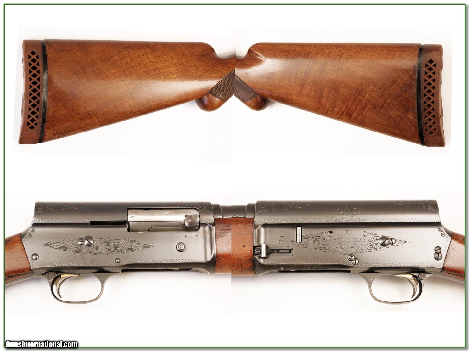 Description: This A5 was made in Belgium in 1957. It is a Sweet Sixteen in very good condition. The wood has nicer grain than most and has not been cut. It has a recoil pad but you could put a buttplate on if wanted. The barrel is a 28in full. It will make a nice classic gun you can use! Shipping and insurance is $30 or $18 more if you want it shipped in a new Plano hard case. Please email me with any questions or larger pictures. (I now consign quality firearms only 10%! Let me know if you have any you would like to sell!) [15-1227] Payment: Payment is by Money Order, Cashiers Check or Personal Check. I can now also accept MasterCard and Visa with a 3% convenience fee. PayPal can be used for some items but never firearms. Please let us know if you would like to pay via PayPal. Shipping: The shipping charge will be listed in each description. It is $30 for most guns. Some heavy guns or those insured for over $2000 may be higher. Shipments to Alaska and Hawaii are higher because air shipment is required. Most firearms are shipped within 5 days of receipt of payment. We prefer shipping at the beginning of the week to avoid firearms in transit over weekends. We package all shipments carefully and insure them for the full purchase price, rounded up to the next $100. In the unlikely event that damage occurs, it is important that you save all packaging material for the claims process. Optics are shipped Priority Mail and most other non-firearm shipments are shipped First Class. Returns: Our return policy is simple. If for any reason you are not pleased with your purchase, you may return your item for a refund. The only exception is ammunition, it cannot be returned. It is important to us that you are happy. Guns cannot be fired or dissembled before returning them and must be returned in the same condition as received. Notification of a return must occur with-in 3 days of receipt at your dealer. Shipping, convenience and dealer fees are not refundable and are the responsibility of the buyer. Lay-a-way: If needed, we offer a 60 day lay-a-way option on most firearms. It is 1/3 now, 1/3 in 30 days and 1/3 in 60 days. Lay-a-way firearm sales are final. Consigning your firearms with Shooting Investments: We will help you get top dollar for your firearms. While most local guns shops charge 20% or more, our fee is only 10% with a minimum of $50. At your local gun shop it might take months to sell. Selling on-line provides instant access to thousands of interested buyers. You won’t find any other on-line dealer willing to sell your firearms for only 10% or listing every gun on 4 separate s. Selling through an House typically costs the seller 15% and the buyer an addition 15% (so 30%) and you have to wait several months to sell and longer to receive funds. If properly priced, we will sell your firearms in a week or two. Send us an email or give us a call and we’ll explain how easy it is for you to get top dollar. Trading: We collect guns and usually just trade for guns we want to add to our collections. We often sell guns for others wanting to purchase one of ours. We find this the most fair to both of us. Our Commission is only 10% and we hold the gun you want until yours sells. Please contact us if you want to sell one of yours to buy one of ours. Help for California Buyers: We are happy to ship to California. It is the buyer’s responsibility to make sure any item you buy is legal in your state. We are also happy to help with your purchase of a firearm from someone other than us. If you see a gun you would like to buy but the seller can’t or won’t ship to California we can help. You buy the gun and have it shipped to us. We’ll then ship it to your California dealer. The cost for this service is only $30 + shipping. Let me know if we can help! SOLD |