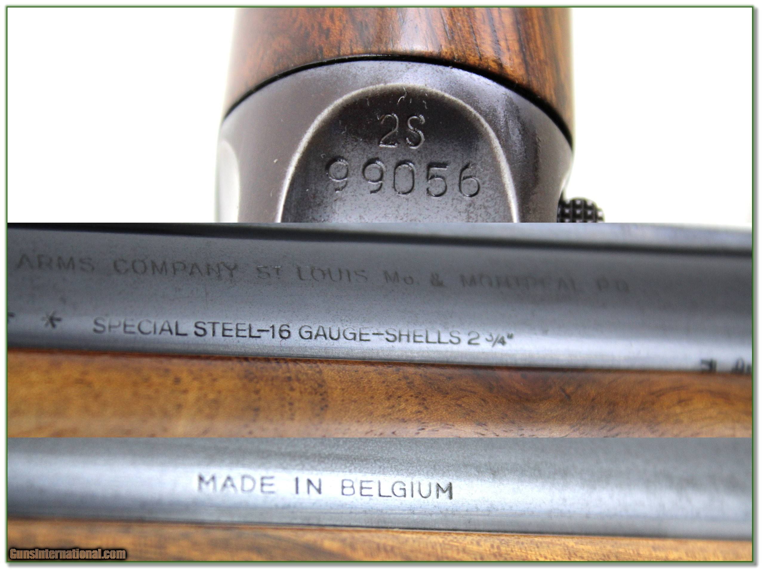 Description: This is a 1962 Belgium made Browning Sweet Sixteen. It has a 28in Vent Rib Modified barrel. Most of the original blue remains with some thinning on the carry parts of the receiver and muzzle as seen. The wood has nice colors and grain. The butt stock has its original finish. The forearm looks to have had the clear coat removed at some point. This one could be restored to like new or will make a classic field gun as is. That makes it a Shooting Investment. I am selling this one on consignment and as such lay-a-way can’t be used. It does of course have the standard 3-day inspection. Shipping and insurance is $49. Please email me with any questions or larger pictures. (Consign your quality firearms with Shooting Investments for only 12%! Let me know if you have any you would like to sell!) 24-0042 Payment: Payment is by Money Order, Cashier’s Check or Personal Check. I can now also accept Credit Cards (MasterCard, Visa, Discover & American Express) with a 3% convenience fee. Shipping: The shipping charge will be listed in each description. It is $49 for most firearms. Some heavy guns or those insured for over $2000 will be higher. Shipments to Alaska and Hawaii are higher because air shipment is required. Most firearms are shipped on Tuesday and Thursday and usually in 5 days of receipt of payment. We package all shipments carefully and insure them. Optics are shipped Priority Mail and most other non-firearm shipments are shipped First Class. Returns: Our return policy is simple. If for any reason you are not pleased with your purchase, you may return your item for a full refund of purchase price. Ammunition cannot be returned. It is important to us that you are happy. Guns cannot be fired or dissembled before returning them and they must be returned in the same condition as received. Notification of a return must occur within 3 days of receipt at your dealer. Shipping, convenience and dealer fees are not refundable and are the responsibility of the buyer. Lay-a-way: If needed, we offer a 60 day lay-a-way option on most firearms. It is 1/3 now, 1/3 in 30 days and 1/3 in 60 days. Lay-a-way firearm sales are final and cannot be returned. If a lay-a-way is not completed the first payment cannot be refunded. Consigning your firearms with Shooting Investments: We will help you get top dollar for your firearms. While most local guns shops charge 20% or more, our fee is only 12% with a minimum of $75. At your local gun shop it might take months to sell. Selling on-line provides instant access to thousands of interested buyers. You won’t find any other on-line dealer willing to sell your firearms for only 12% or listing every gun on 3 separate s. Selling through an House typically costs the seller 15% and the buyer an addition 15% (so 30%) and you have to wait several months to sell and longer to receive funds. If properly priced, we will sell your firearms within a few weeks. Send us an email or give us a call and we’ll explain how easy it is for you to get top dollar. Trading: Trading for us is really just buying your gun to re-sell. If you have a gun you want to trade, please email a picture and we will let you know what we can give for it. You will always get more if we sell it for you on consignment. SOLD |