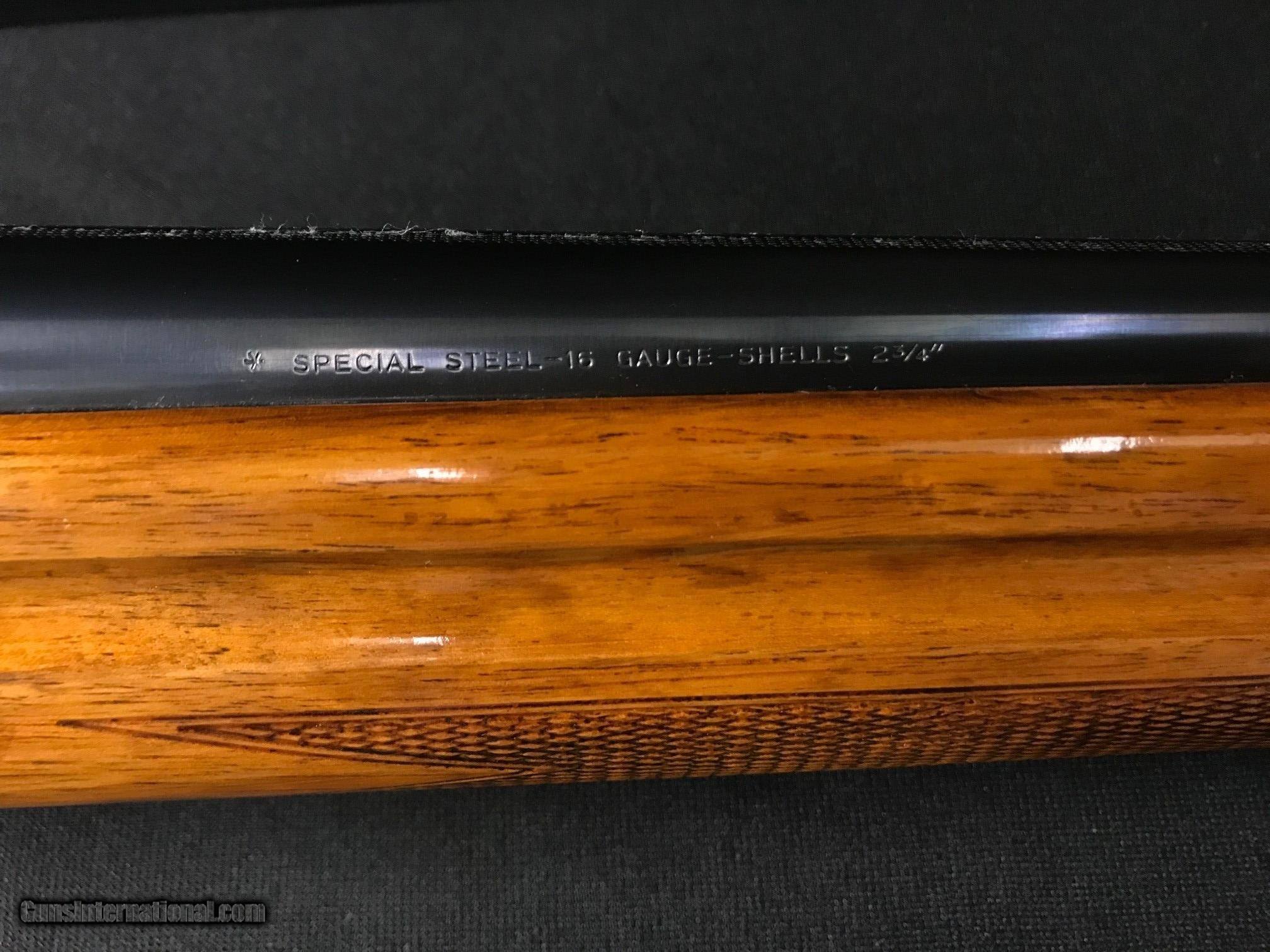 Description: Browning Auto 5 Sweet Sixteen. Manafacturing in 1966. 28 " Matte Rib, Full Choke barrel. MINT CONDITION! Collector Qaulity. For more information or purchasing of this firearm, PLEASE CALL 1(479)-968-4106 . PRICE - $1,850 + Shipping SOLD Manufacturer: BROWNING Model: SWEET SIXTEEN Serial Number: 6S 56959 Barrel Length: 28 Action: Semi Automatic Gauge Info: .16 GAUGE LOP: 14 Sights: Plain Matte Rib Manufacture Date: 1966 Chokes: FULL |