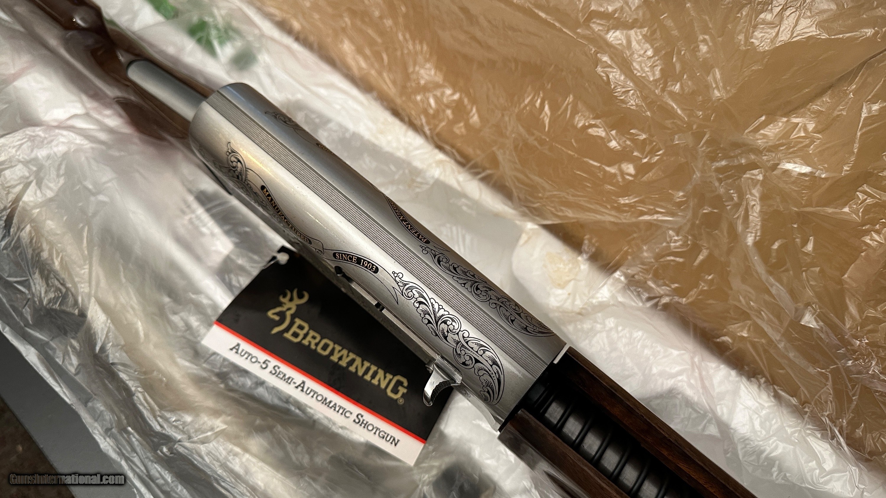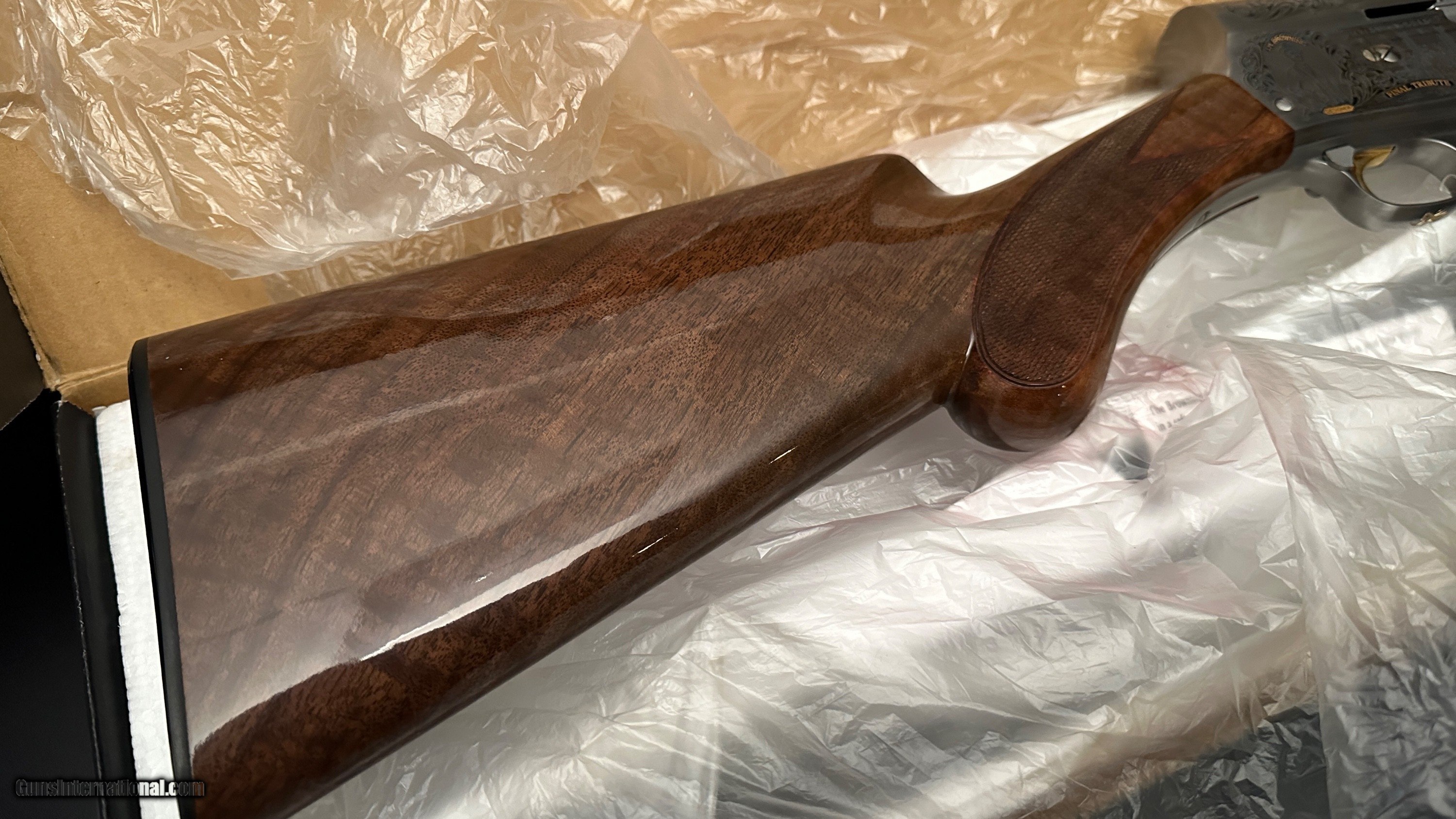Description: Looking to sell a NIB Browning A5 12ga “Final Tribute” - 1 of 1000 Limited Edition Shotgun from 1999. FEATURES: - Deep-relief engraving on a silver receiver with 24k gold lettering - Gorgeous High-Grade Special Walnut Stock with Fine Cut Checkering - Round Knob, Long - 28" Barrel with Vented Rib, Deep Polished Blue, Backbored for less recoil & better patterns - Invector Plus+ Choke System - Full, Mod, IC - 12 GA 2 3/4" Chamber - LOP 14 1/4" - Serial No. 2000 FT0### - Includes original box, choke tubes, lock, tool and manual. 100% NEW UNFIRED & UNASSEMBLED IN ORIGINAL BOX!! RARE!! $4500 shipped/insured from my ffl dealer to your ffl dealer. SOLD Shotgun Gauge: 12 Gauge Manufacturer: Browning Model: A5 The “Final Tribute” for North America, Limited Series, 1 of 1000, The last “edition” 12ga Barrel Length: 28” Chambers: 2 3/4 Ejectors: Yes Condition: New in Original Box! Never Assembled! Barrels: 28” Barrel Action: Semi-Auto Triggers: Single Gold Trigger Stock: Beautiful Feathercrotch Walnut, RK, Pistol, Finger Groove Forend LOP: LOP 14 3/8 Rib: Vent Rib Weight: 8lbs 8oz Chokes: Invector Chokes Engraving: Scene w/ scroll and gold accents Case: NEW in original box |