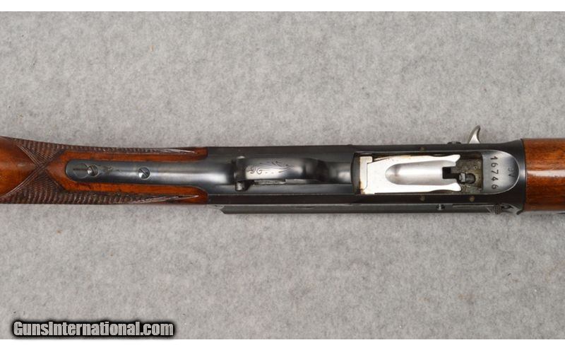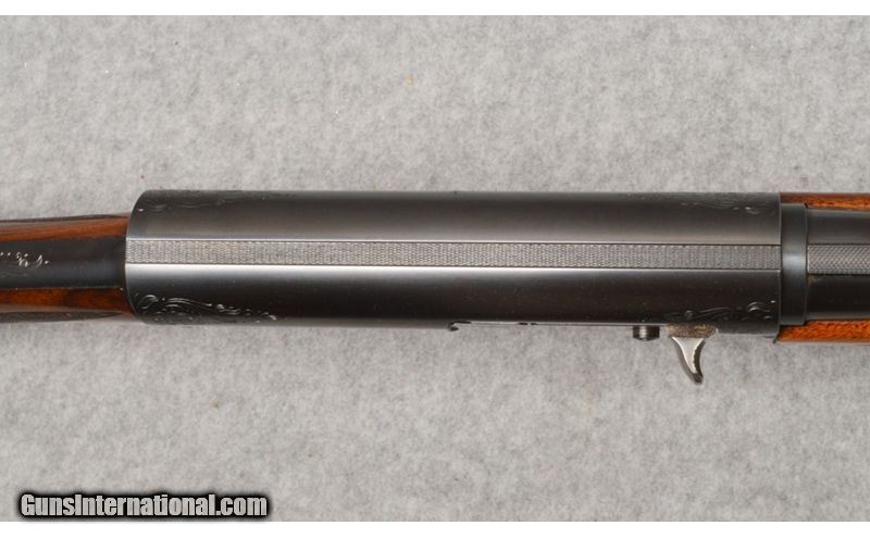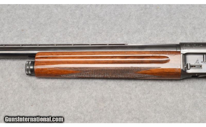 Description: This is a very nice Browning Magnum Semi Auto Shotgun in 12 gauge. The blued barrel and receiver frame are in very good condition. The blued vent rib 31" barrel is very good with a shiny bore. The factory blued curved trigger is smooth and light. The smooth dark walnut stock with checkered pistol grip is very good, with a small ding at the RH butt stock near the receiver, and small dings at the bottom of the butt stock. The matching checkered fore end is very good with a small ding on the RH side towards the front. This is a gorgeous representation of a Browning Magnum, especially to have been produced in 1959. This will be a prized and cherished possession. No box or other accessories. 12 Gauge SOLD Chambers: 3 Metal Condition: Very Good Wood Condition: Very Good Bore Condition: Very Good Barrels: Blued Vent Rib 31 Triggers: Factory Blued Curved Stock Dimensions: 14" LOP Fore End: Matching Checkered Dark Walnut Butt Pad: Factory Brown Cushioned Rubber Weight: 9 Lb. 5 Oz. Sights: Front Silver Bead Chokes: Full Item Location: West Chester, OH |
