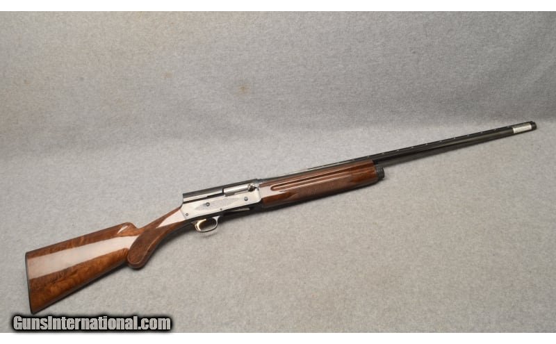 Description: This is a very nice Browning Arms Model A5 Magnum Twenty semi auto shotgun in 20 gauge. The richly blued barrel and lightly engraved receiver frame are excellent. The blued 28" vent rib barrel is excellent with a bright shiny bore. The factory gold-plated trigger is typical Browning, smooth and light with a crisp release. The checkered dark walnut stock and fore arm are excellent with a couple small rub marks on the RH buttstock. This Browning A5 is one of the first Japanese models as the barrel is stamped Made in Japan rather than Miroku. This A5 Magnum Twenty shotgun does not come with a box or any accessories. 20 Gauge SOLD Chambers: 3 Metal Condition: Excellent Wood Condition: Excellent Bore Condition: Excellent Barrels: 28 Triggers: Factory Gold-Plated Curved Smooth Stock Dimensions: LOP 14 1/4" Height 6 3/4" Length 47 1/2 Fore End: Matching Checkered Dark Walnut Butt Pad: Factory Black Hard Plastic Weight: 7 Lbs. 3 Oz. Sights: Front Silver Bead Chokes: Improved Cylinder Item Location: West Chester, OH |