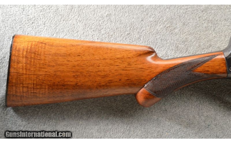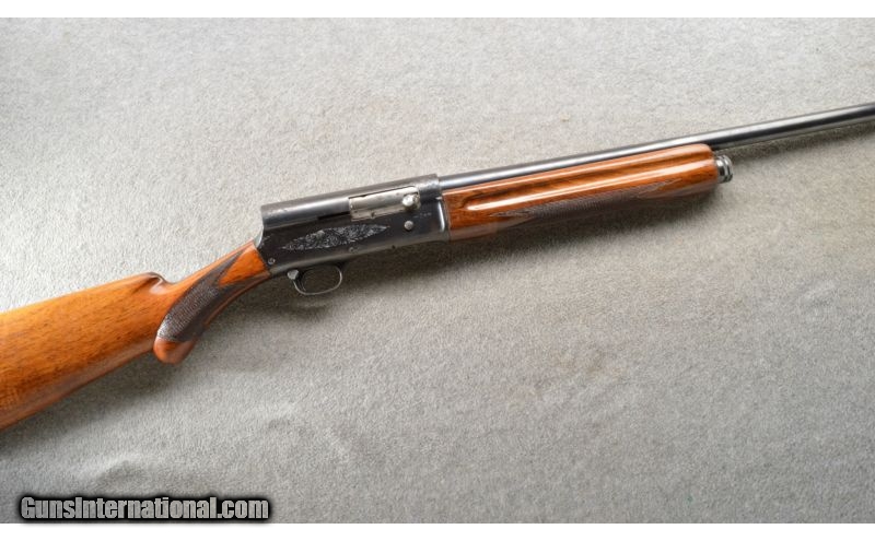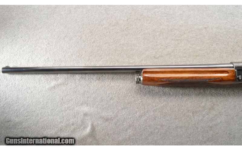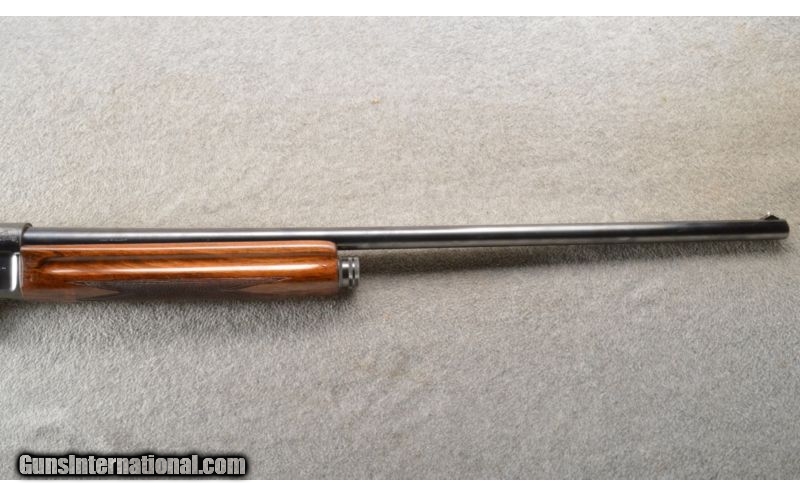 Description: This Browning Auto-5 12 gauge shotgun was made in 1953. The blue is good but has minor spotting on the receiver. The blue barrel is in excellent condition and the shotgun looks good. The walnut stock and matching forearm are good looking, the forearm is crack free and the butt stock has the standard tiny cracks behind the upper tang. There has been finish added to the wood. SOLD Curio/Relic: Yes Manufacturer: 1953 Caliber Info: 12 Gauge. Chambers: 2 3/4 inch semi-auto. Metal Condition: Good with spotting. Wood Condition: Very good. Bore Condition: Bright and shiny. Barrels: 29 1/2 inch blue with a front bead. Triggers: Single blue. Stock: Nice walnut with a checkered round knob. Stock Dimensions: 14 1/4 inch LOP. Fore End: Matching checkered walnut with finger grooves. Butt Pad: Browning FN butt plate. Weight: 8 Lbs. 3 Oz. Sights: Single front sight bead on a ramp. Chokes: Fixed FULL. Item Location: Owatonna, MN |
