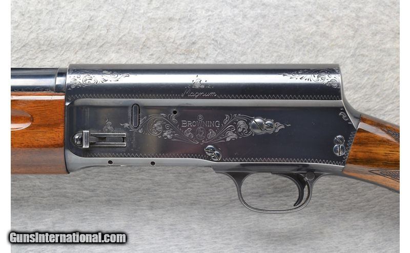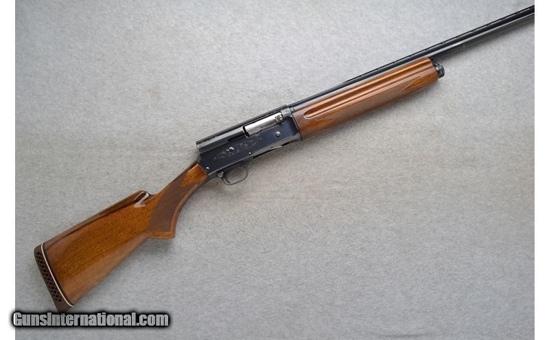 Description: This Browning Model Auto-5 is a right hand semi-auto shotgun in 12 Ga. It has a 29.5 inch barrel. A metal bead front sight. With a 3 inch chamber it has a fixed Full choke. The butt stock is a checkered grip walnut pistol grip. The forearm is a checkered grip walnut with finger grooves. It has a lightly engraved receiver. Made in Belgium. S/N 70V63622. 12 Gauge SOLD Chambers: 3 inch. Metal Condition: Good. Minor handling/use marks. Wood Condition: Good. Has handling marks. Bore Condition: Shiny. Barrels: 29.5 inch barrel with a ventilated rib. Stock Dimensions: LOP 14 1/8 inches. Fore End: Checkered grip walnut with finger grooves. Butt Pad: Browning rubber recoil pad. Weight: 9 lb. 2 oz. Sights: Metal front bead. Chokes: Fixed Full choke. Item Location: Richfield, WI |