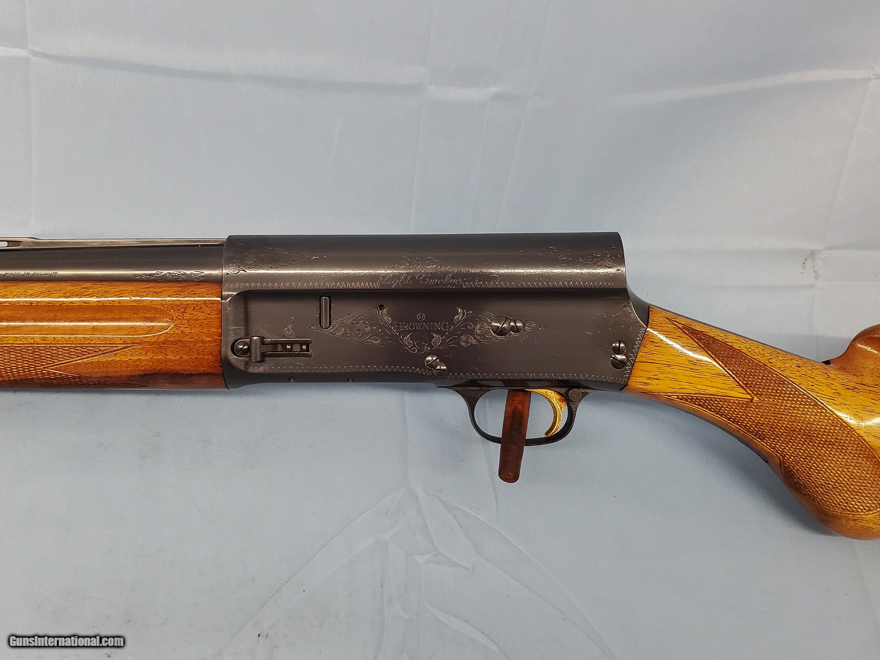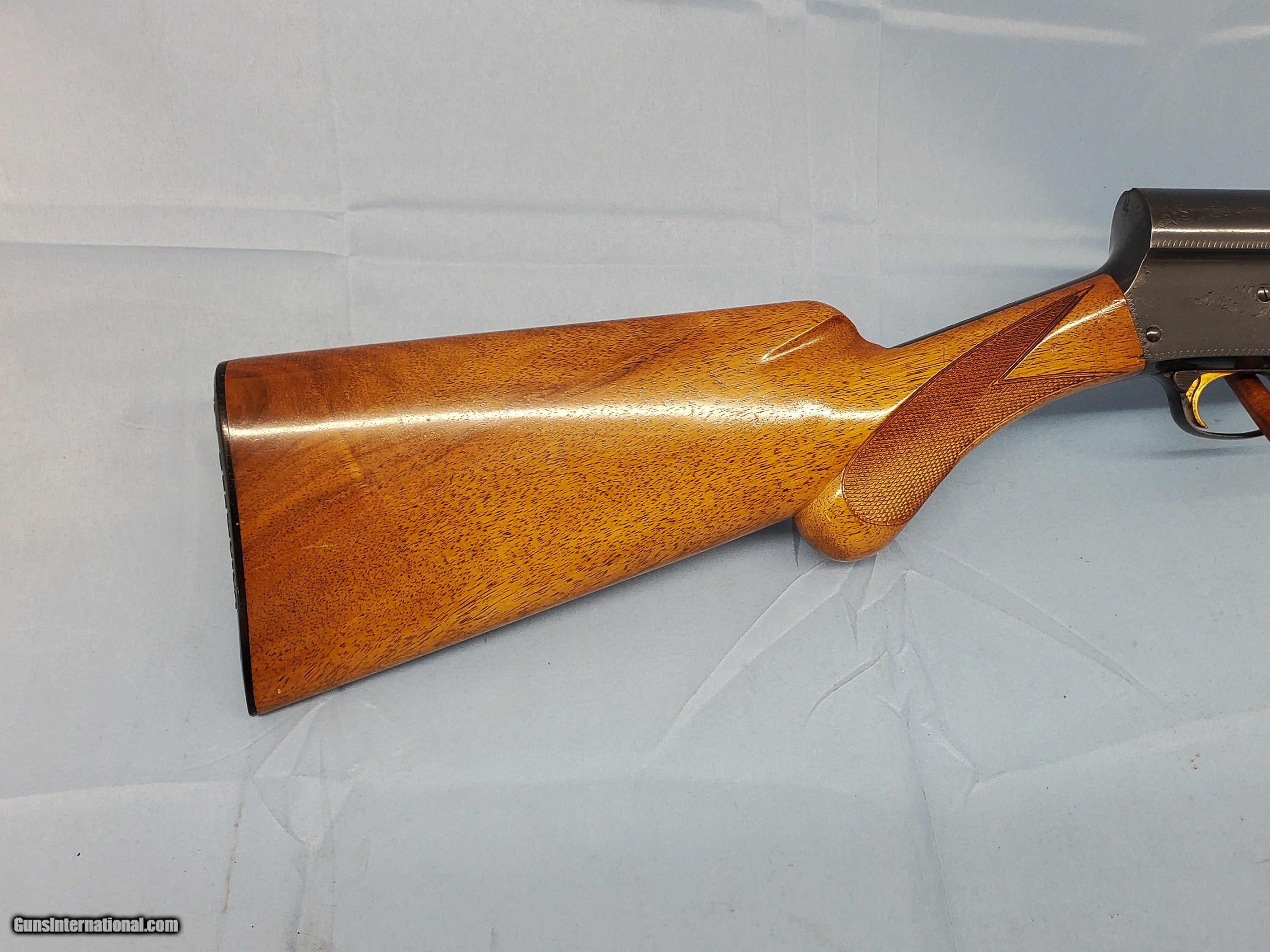 Description: MADE IN BELGIUM IN 1965. BARREL IS 26'' WITH A VENT RIB AND CHOKED I.C. ALL FACTORY AND GOOD CONDITION. PLEASE ADD $75 FOR SHIPPING. SOLD Curio/Relic: Yes Shotgun Gauge: 12 Gauge Manufacturer: BROWNING Model: AUTO 5 Condition: VERY GOOD Metal Condition: VERY GOOD Wood Condition: VERY GOOD Bore Condition: EXCELLENT Action: SEMI Triggers: GOLD LOP: 14 1/4'' Weight: 7 LB 14 OZ Extras: NONE |
