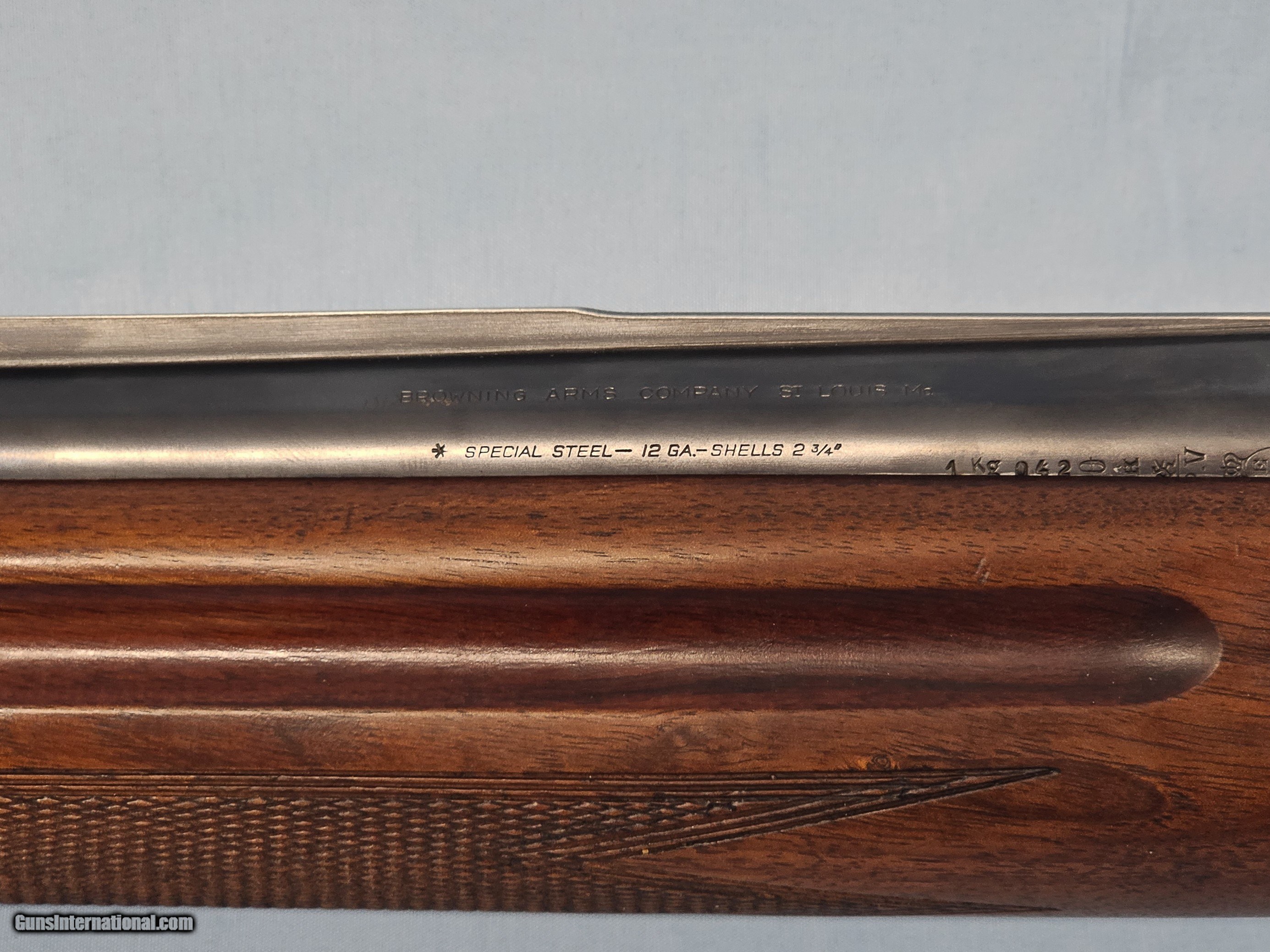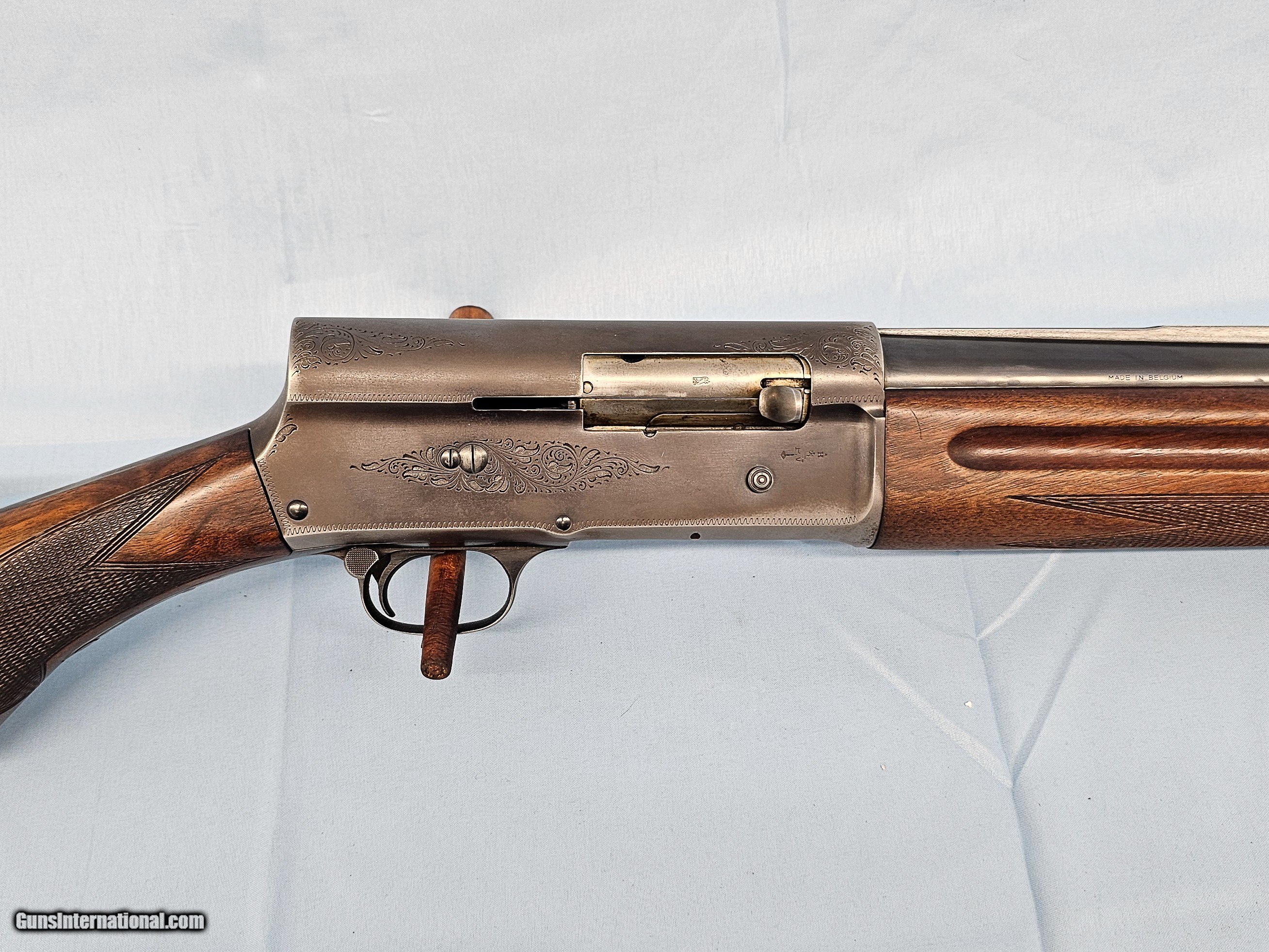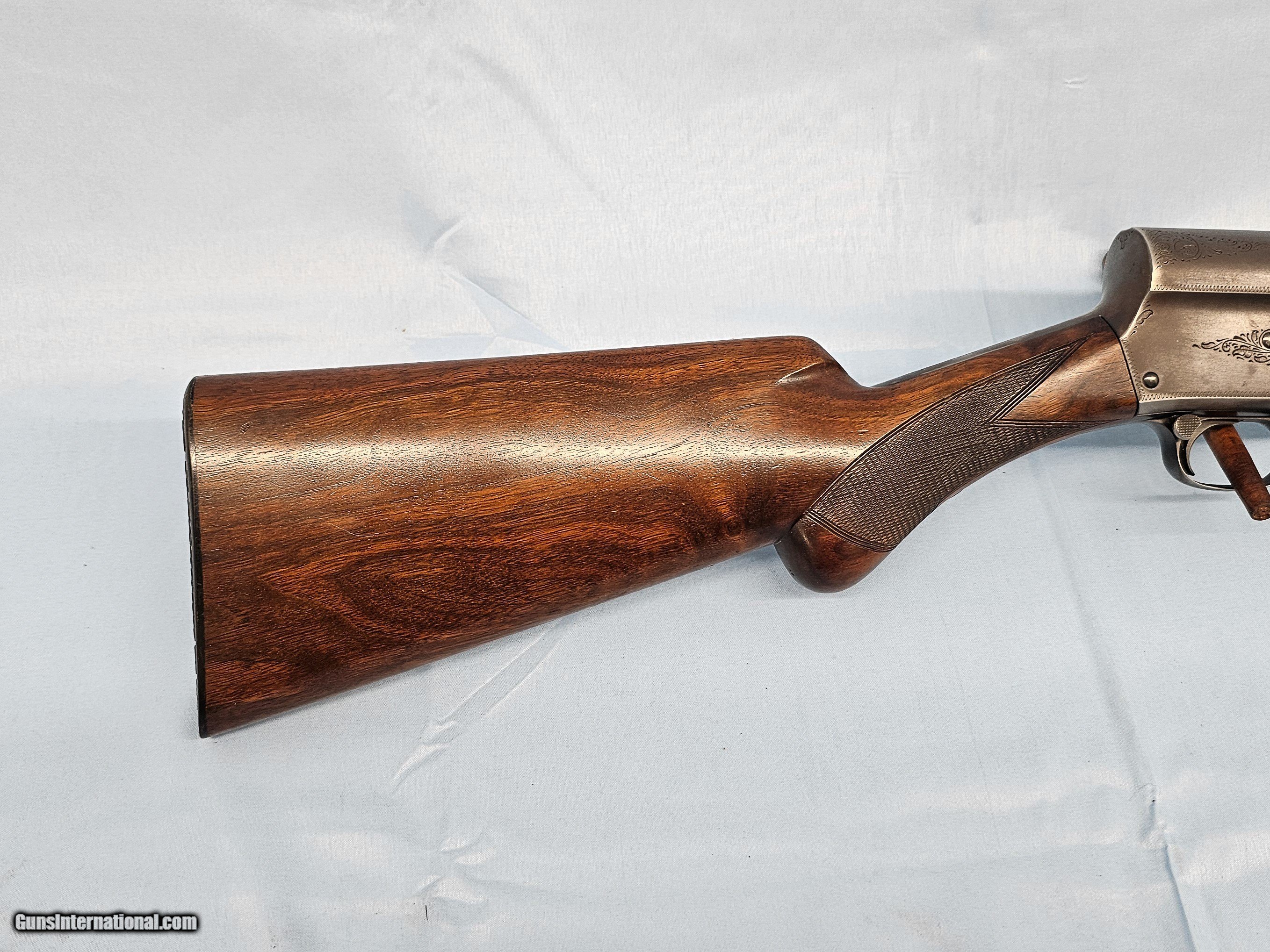 Description: MADE IN BELGIUM IN 1953. BARREL IS 28'' WITH A SOLID RIB AND CHOKED FULL. ALL FACTORY AND GOOD CONDITION WITH NO CRACKS. NUMBERS MATCHING. PLEASE ADD $75 FOR SHIPPING. SOLD Curio/Relic: Yes Shotgun Gauge: 12 Gauge Manufacturer: BROWNING Model: AUTO 5 Condition: GOOD Metal Condition: GOOD Wood Condition: GOOD Bore Condition: EXCELLENT Action: SEMI LOP: 14 3/8'' Weight: 8 LB 8 OZ Extras: NONE |