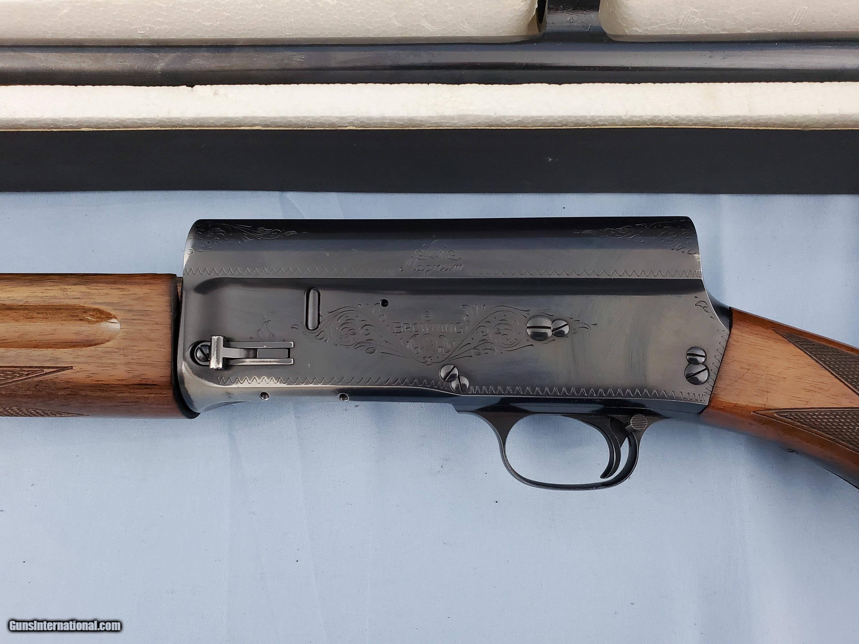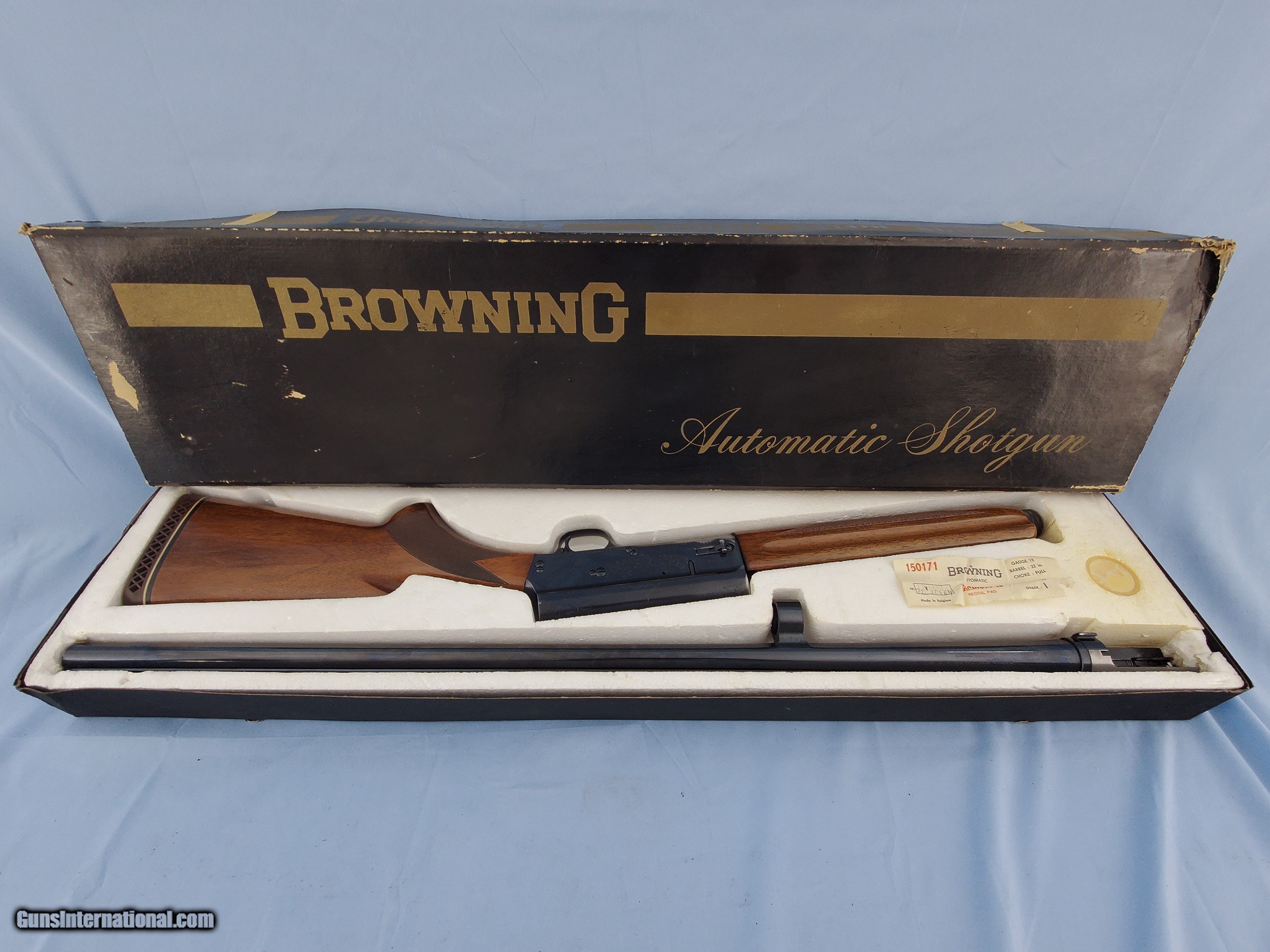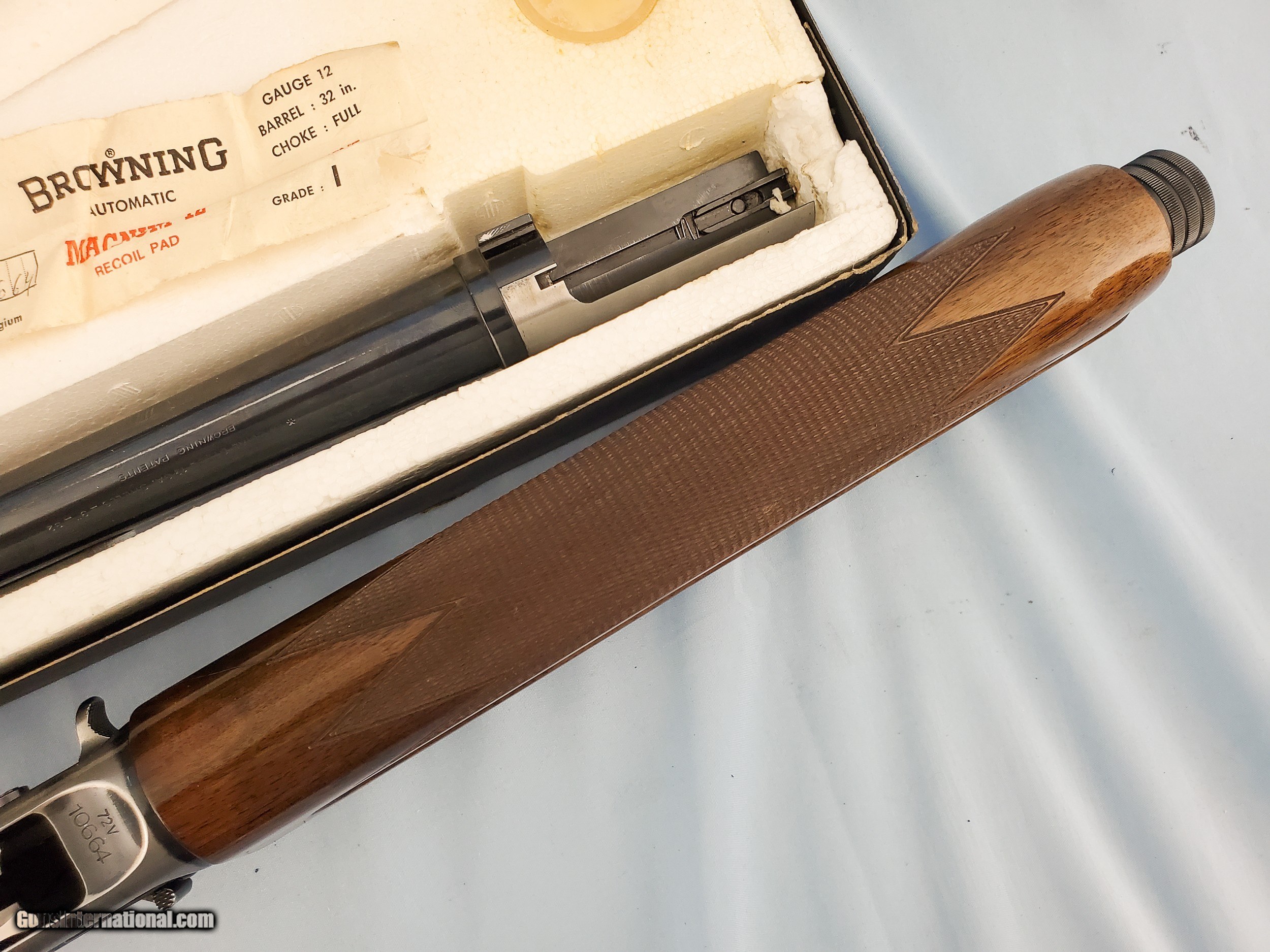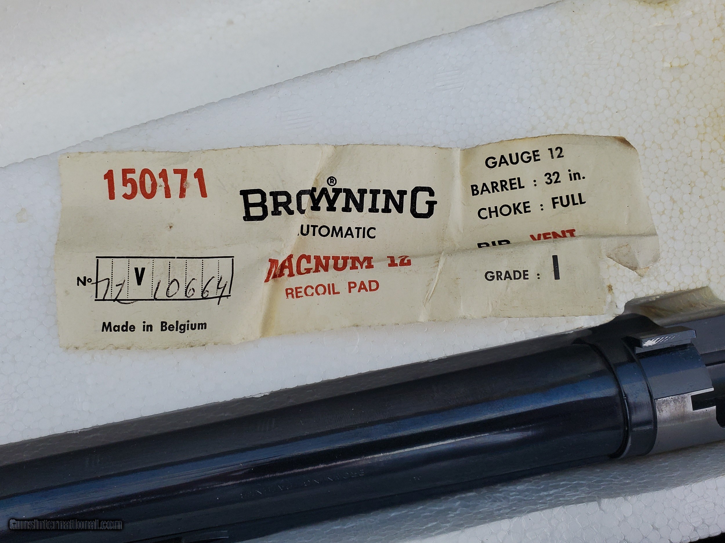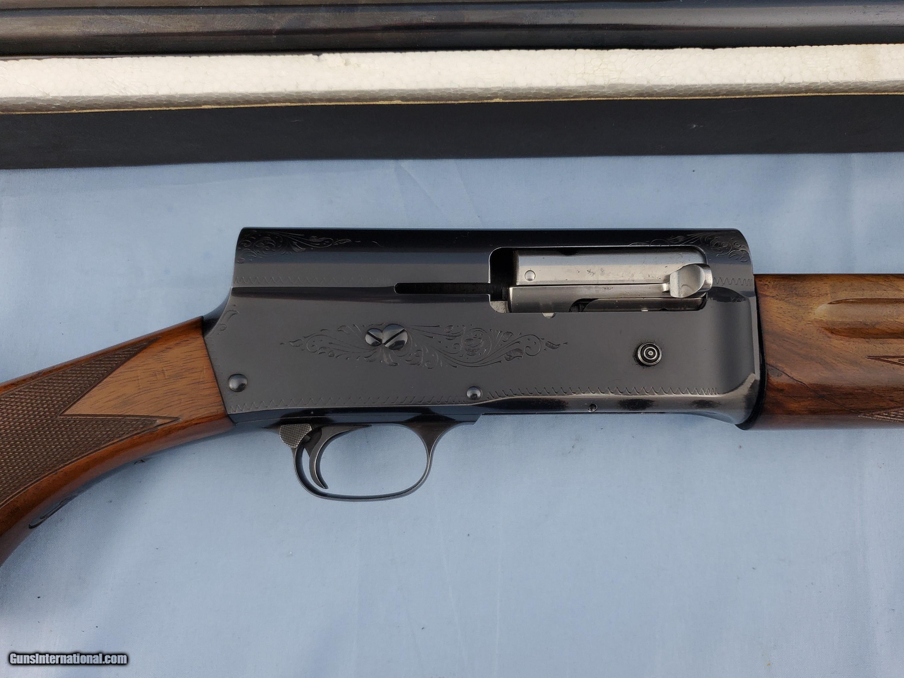 Description: MADE IN BELGIUM IN 1972. BARREL IS 32'' WITH A VENT RIB AND CHOKED FULL. ALL FACTORY WITH SOME WEAR. PLEASE ADD $75 FOR SHIPPING. SOLD Curio/Relic: Yes Shotgun Gauge: 12 Gauge Manufacturer: BROWNING Model: AUTO 5 Condition: EXCELLENT Metal Condition: EXCELLENT Wood Condition: EXCELLENT Bore Condition: EXCELLENT Action: SEMI LOP: 14 1/4'' Case: FACTORY BOX |