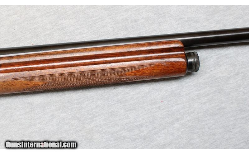 Description: This semi-auto shotgun is a Browning Auto-5 chambered in 12 Gauge (2 3/4-inch shells). The Browning A-5 is a recoil-operated semi-automatic shotgun designed by John Browning. It is a Belgium made standard weight gun manufactured in 1959. It was the first successful semi-automatic shotgun design and remained in production until 1998. The name of the shotgun designates that it is an autoloader with a capacity of five rounds, four in the magazine and one in the chamber. It has a magazine cutoff, engraved scroll receiver, round knob, and original Browning butt pad. 12 Gauge SOLD Chambers: 2 3/4 Inches Metal Condition: Very Good Wood Condition: Solid with many handling marks Bore Condition: Bright Barrels: 25 1/2 Inches Triggers: Factory Stock Dimensions: LOP 14 1/2 Inches Fore End: Checkered Walnut Butt Pad: Horn butt plate Sights: White Bead Chokes: Full Item Location: La Vista, NE |