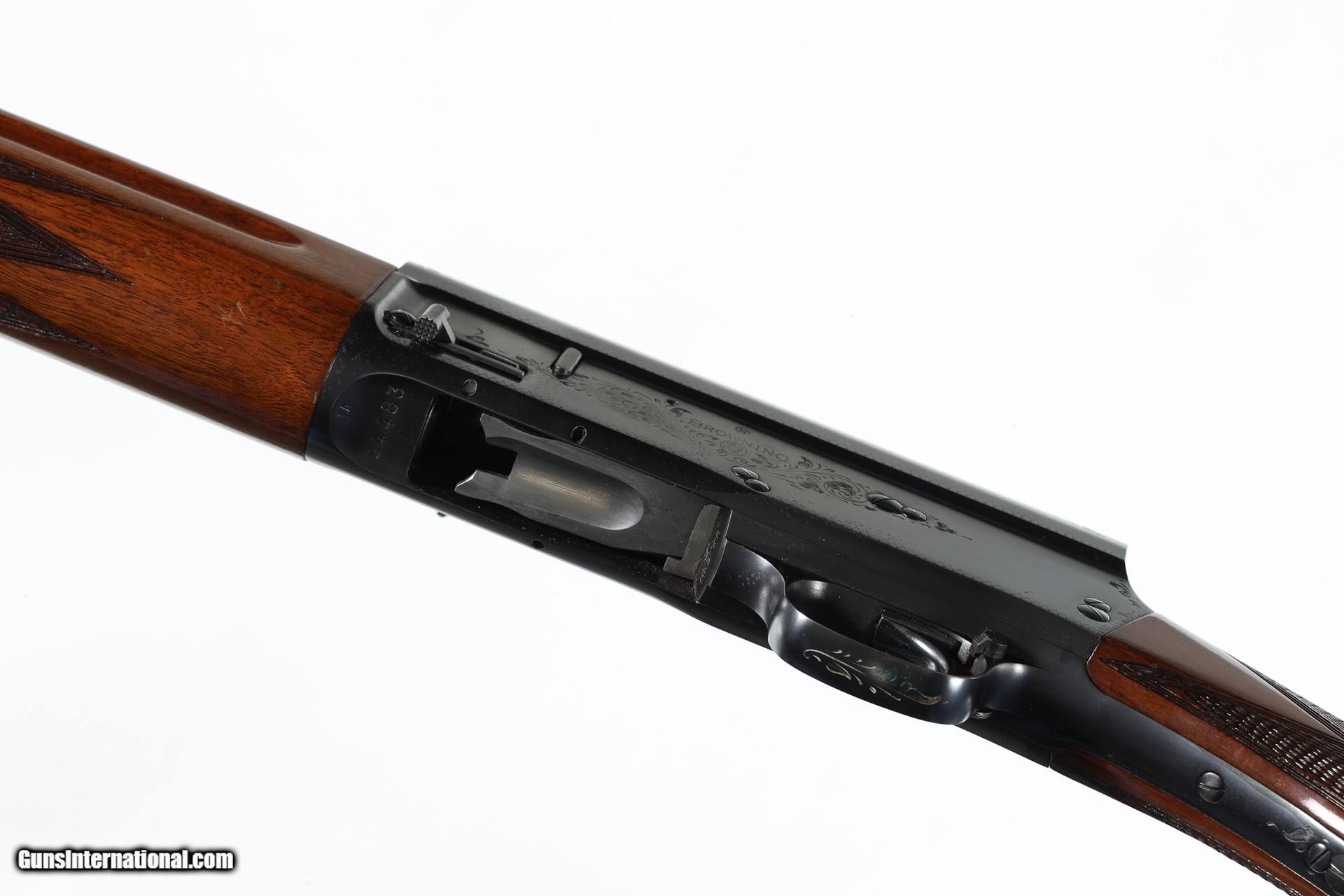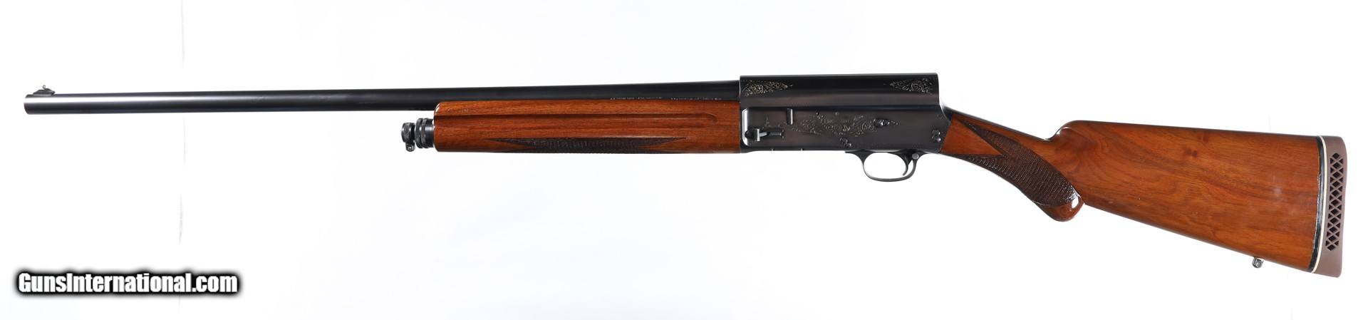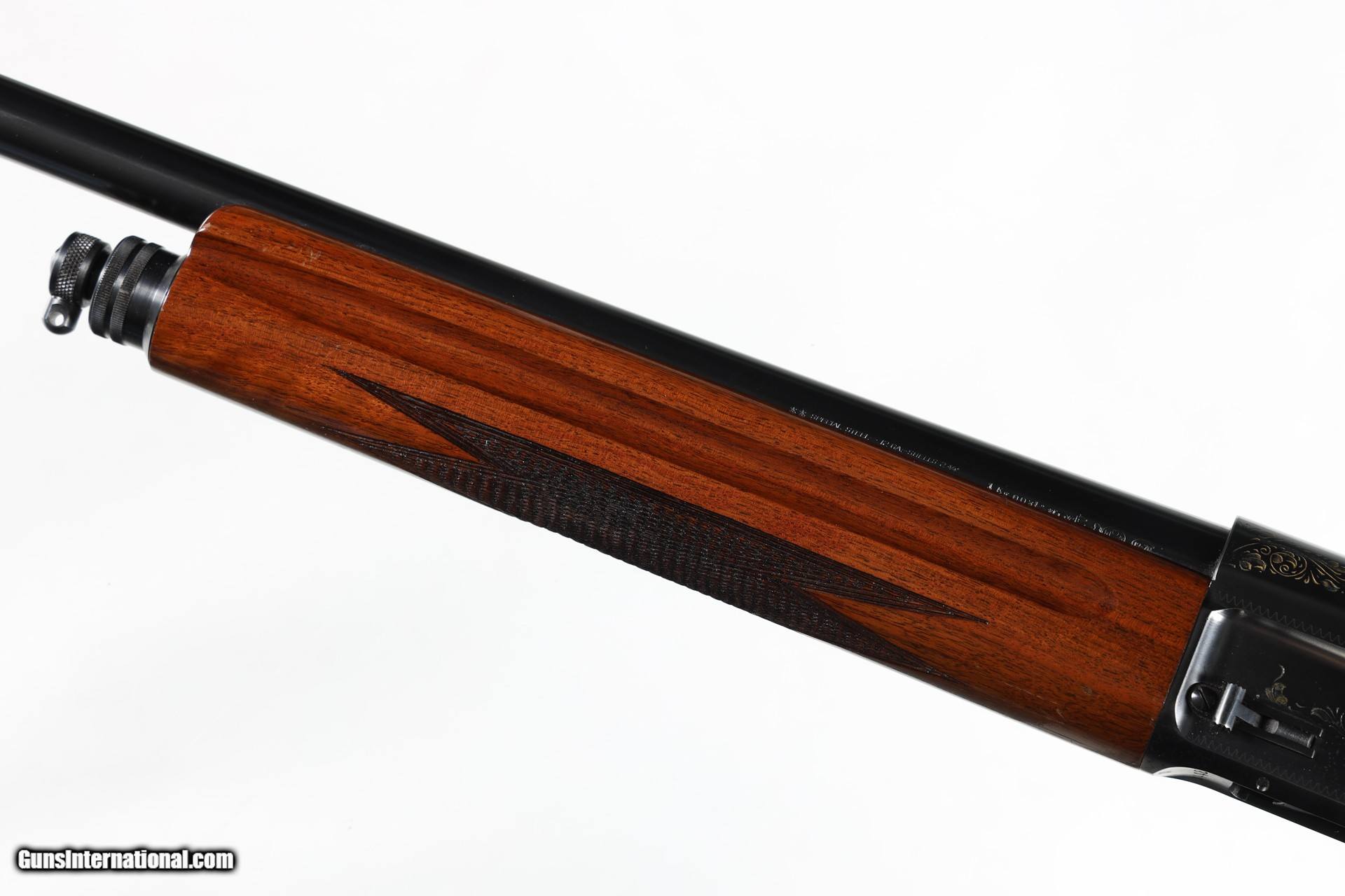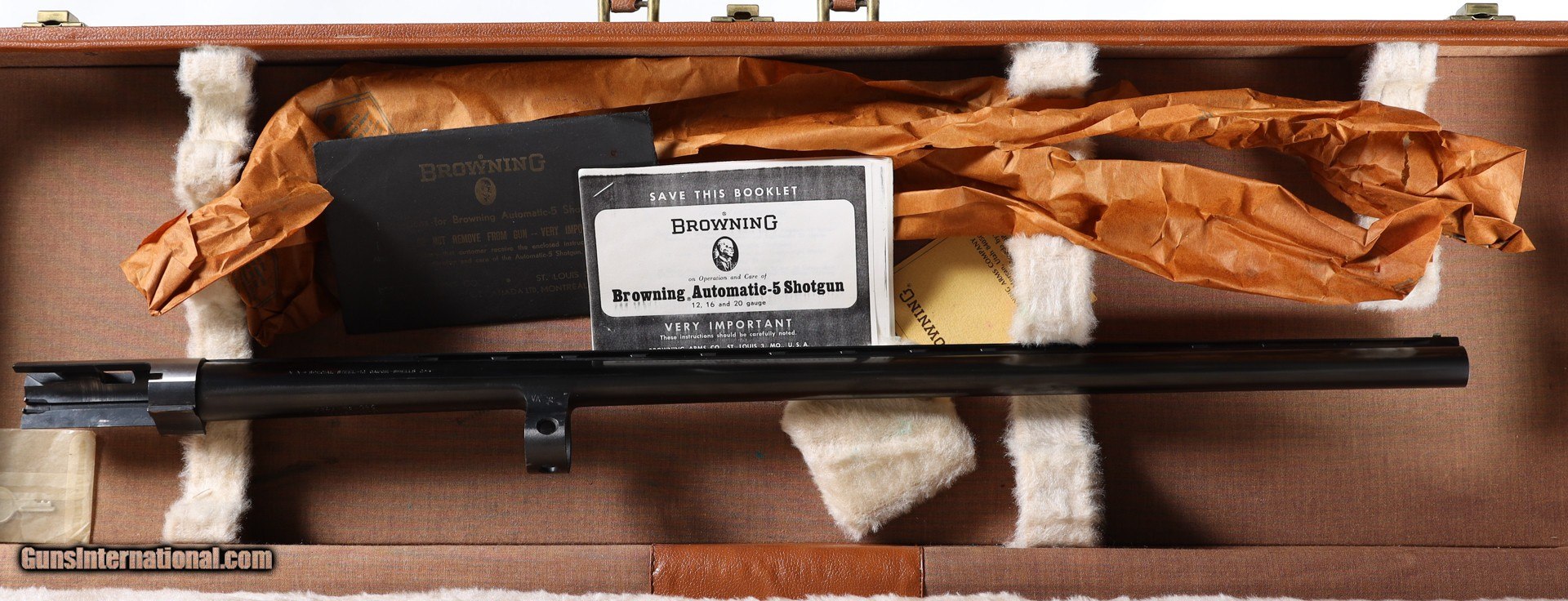 Description: Browning A5 two barrel set. Metal surfaces rate near excellent with limited areas of peppery finish. 2 3/4" chamber, modified choke, and 15 3/16" LOP. Manufactured 1957. With Browning takedown case, leather sling, and extra barrel with improved cylinder choke. Previous owner's name and SSN lightly scratched on underside of each barrel. • Free Shipping, No Credit Card Fees. • Lay-a-way available for this firearm. • 1/3 Down, a 1/3 in 30 Days 1/3 in 60 Days. SOLD Manufacturer: Browning Model: A5 Serial Number: M44483 Barrel Length: 27-1/2 |