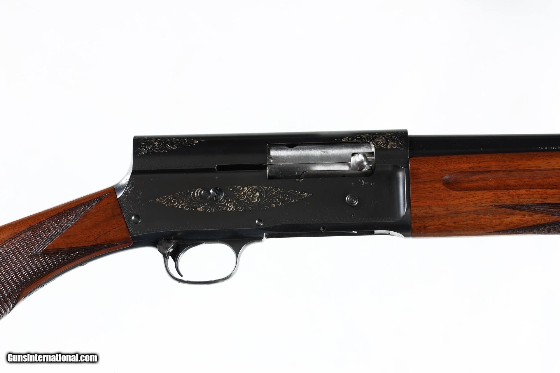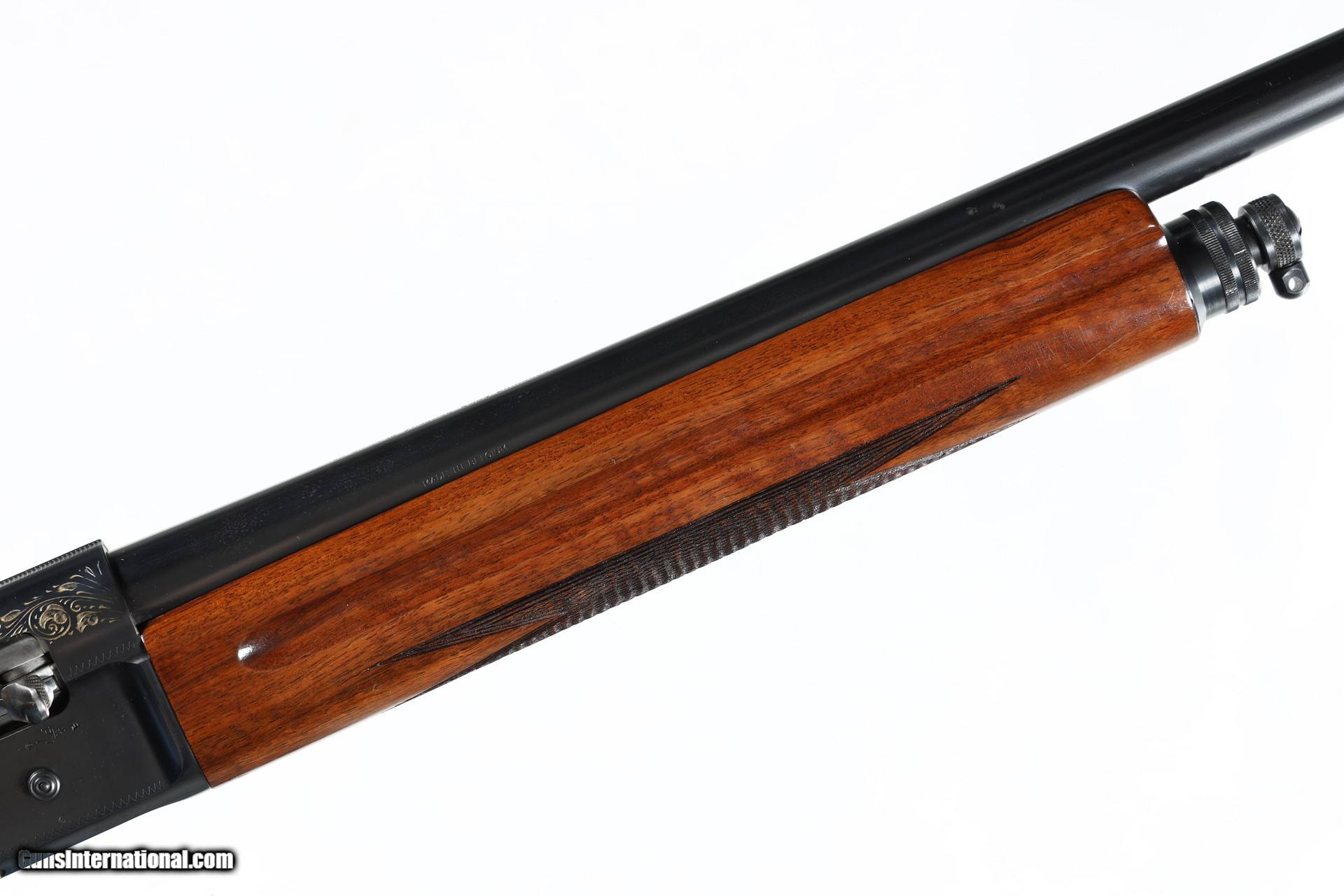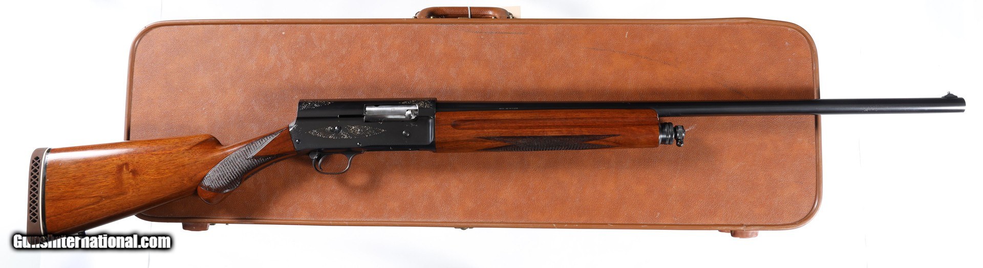 Description: Browning A5 two barrel set. Metal surfaces rate near excellent with limited areas of peppery finish. 2 3/4" chamber, modified choke, and 15 3/16" LOP. Manufactured 1957. With Browning takedown case, leather sling, and extra barrel with improved cylinder choke. Previous owner's name and SSN lightly scratched on underside of each barrel. • Free Shipping, No Credit Card Fees. • Lay-a-way available for this firearm. • 1/3 Down, a 1/3 in 30 Days 1/3 in 60 Days. SOLD Manufacturer: Browning Model: A5 Serial Number: M44483 Barrel Length: 27-1/2 |