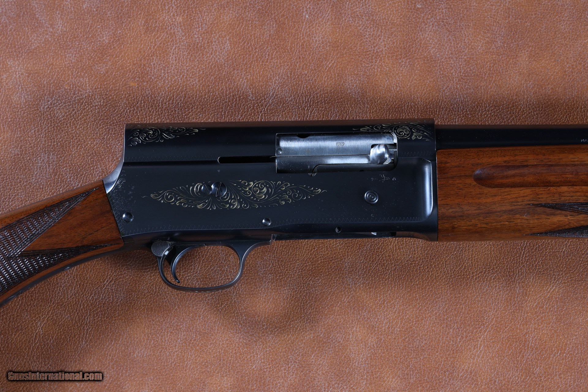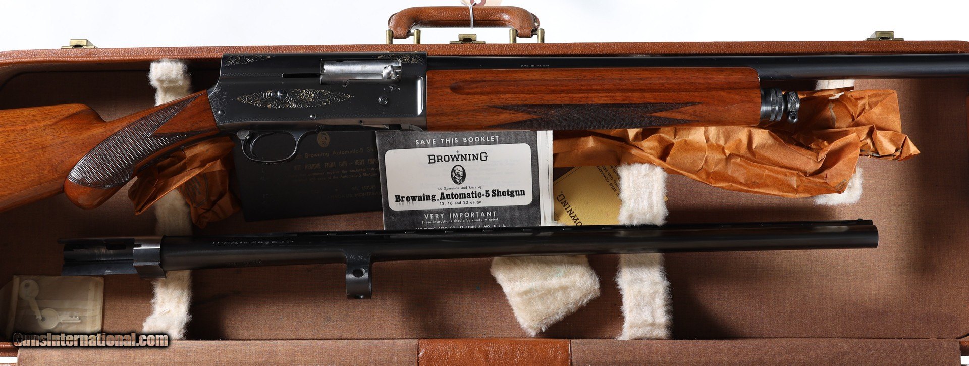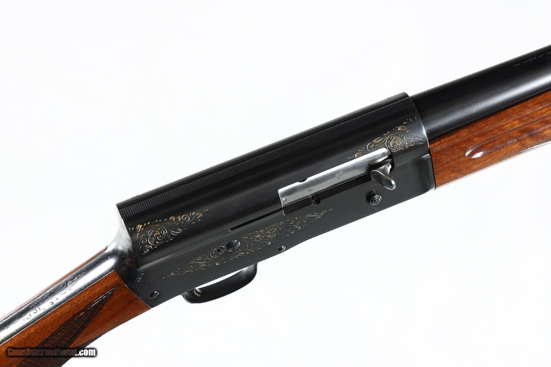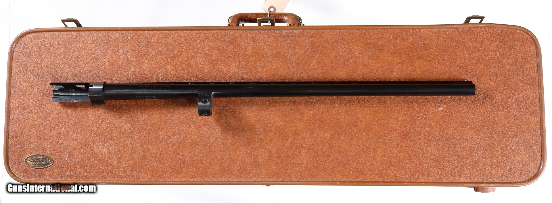 Description: Browning A5 two barrel set. Metal surfaces rate near excellent with limited areas of peppery finish. 2 3/4" chamber, modified choke, and 15 3/16" LOP. Manufactured 1957. With Browning takedown case, leather sling, and extra barrel with improved cylinder choke. Previous owner's name and SSN lightly scratched on underside of each barrel. • Free Shipping, No Credit Card Fees. • Lay-a-way available for this firearm. • 1/3 Down, a 1/3 in 30 Days 1/3 in 60 Days. SOLD Manufacturer: Browning Model: A5 Serial Number: M44483 Barrel Length: 27-1/2 |