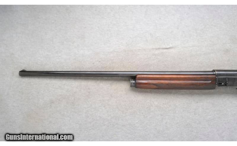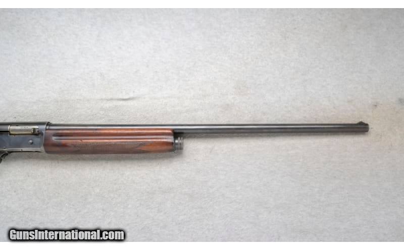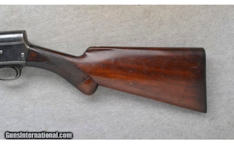 Description: This Browning (FN) Model Auto-5 is a right hand semi-auto shotgun in 16 Ga. It has a 27.5 inch barrel with a raised metal bead front sight. With a 2 3/4 inch chamber it has a fixed full choke. The butt stock is a checkered grip walnut round knob pistol grip. The forearm is a checkered grip walnut with finger grooves. Serial Number 78904 - Made in Belgium. 16 Gauge SOLD Chambers: 2 3/4 inch. Metal Condition: "Has blue wear, handling marks and freckling. Wood Condition: Has many handling marks. Cracks in the forearm and butt stock. Bore Condition: Needs a good cleaning. Barrels: 27.5 inch. Stock Dimensions: LOP 14 1/4 inches. Fore End: Checkered grip walnut with finger grooves. Butt Pad: FN Browning black plate. Weight: 7 lb. 4 oz. Sights: Raised metal bead front. Chokes: Fixed Full. Item Location: Richfield, WI |