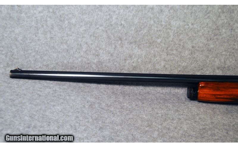 Description: The classic FN Browning Auto 5 in 16 gauge made in Belgium. Wood and metal condition is indicative of its age with some dents and dings in the wood and some bluing loss with the metal. The butt plate has a crack from the toe to the first screw but the stock looks undamaged. It does have the 2 9/16" chamber, it will need special ammunition. A nice classic firearm. 16 Gauge SOLD Chambers: 2 9/16". Metal Condition: "Good, bluing is thin in some spots on barrel and receiver. Wood Condition: "Good, with dents and dings indicative of age. Barrels: 28" blued barrel. Triggers: Single. Stock Dimensions: 13 1/2" LOP. Fore End: Walnut. Butt Pad: Original FN / Browning hard plastic butt plate. Sights: Brass bead on front. Chokes: Fixed full choke. Item Location: Lexington, KY |