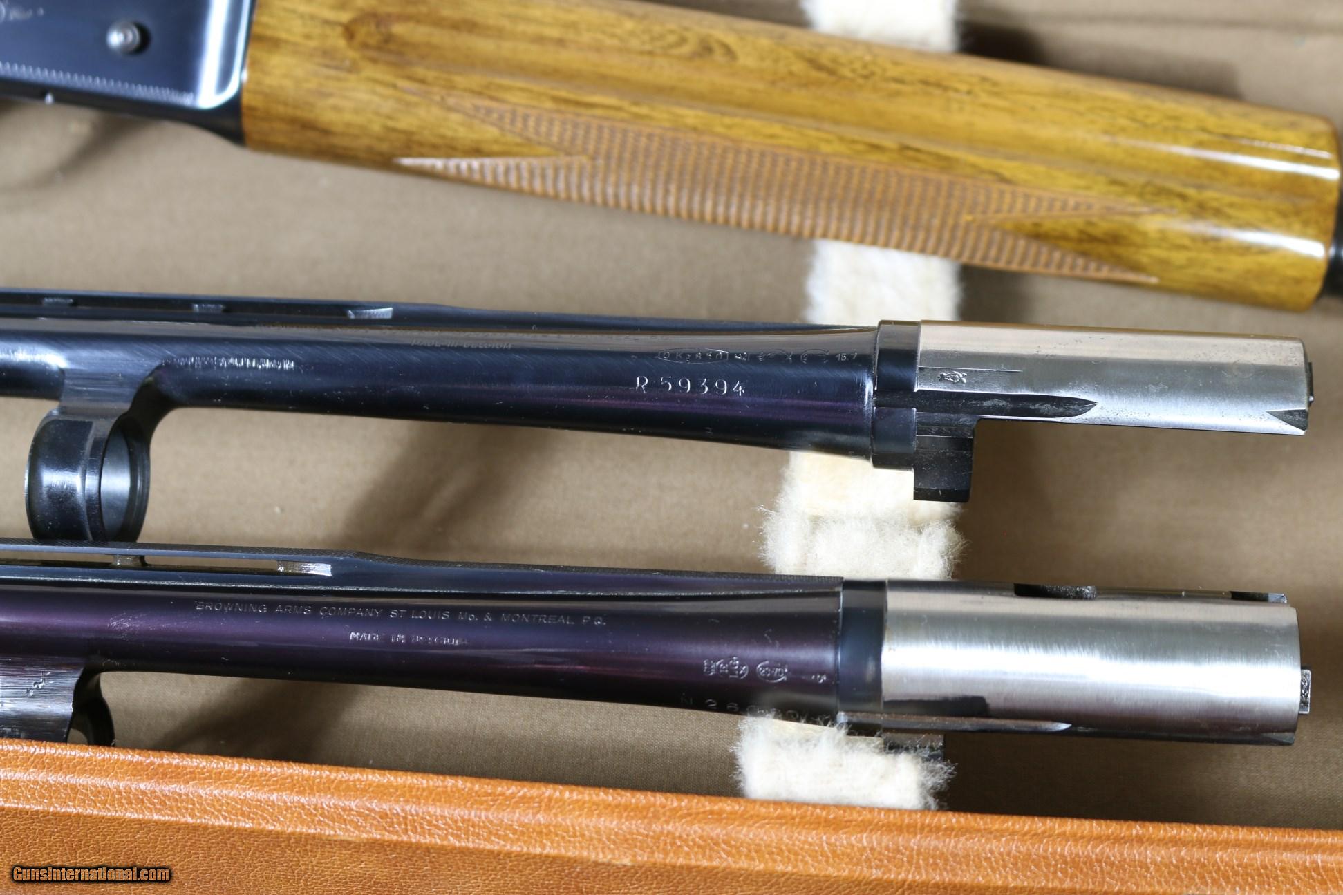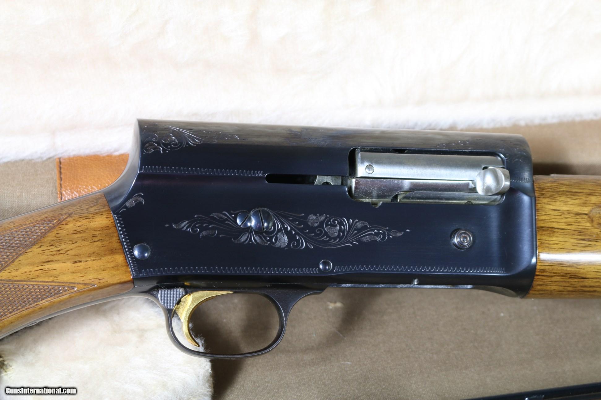 Description: MADE IN BELGIUM IN 1968. 28" VENT RIB AND CHOKED FULL. 28" VENT RIB AND CHOKED MODIFIED. 98% CONDITION. PLEASE ADD $50 FOR SHIPPING. RETURN POLICY: We offer a 3 day return policy. Items must be returned in the same condition as received. Notification must be made with-in 3 days of receipt at dealer. All fees are non-refundable no exceptions. LAY-A-WAY: We offer a 60 day lay-a-way with a 1/3 up front and 1/3 every 30 days. Once started all sales are final with no exceptions. CONDITIONS OF SALE: Art’s Gun Shop makes no express or implied warranty or representation with respect to items being advertised or sold. In no event shall Art’s Gun Shop be held responsible for correctness of description, representation, or warranty of items sold by them or their representatives. All items sold as collector items. All liability concerning the use of any weapons purchased from Art’s Gun Shop or its representatives is assumed by the purchaser. SOLD Manufacturer: BROWNING Model: AUTO 5 Condition: EXCELLENT Metal Condition: EXCELLENT Wood Condition: EXCELLENT Bore Condition: EXCELLENT Triggers: SINGLE/GOLD LOP: 14 1/4 Rib: VENT Manufacture Date: 1968 Extras: CASE AND KEY Case: AIRWAYS |