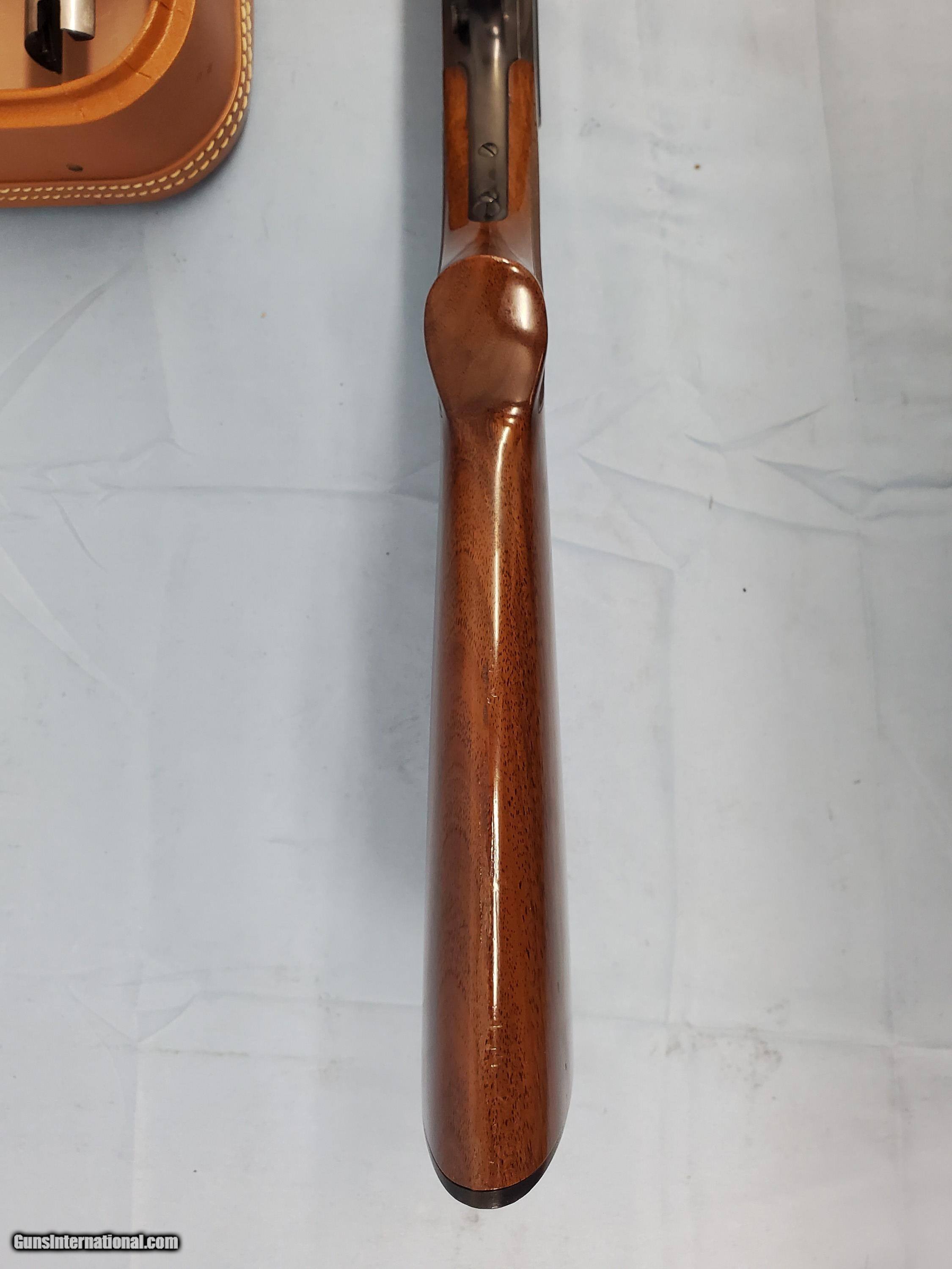 Description: MADE IN BELGIUM IN 1971. FIRST BARREL IS 28'' WITH A VENT RIB CHOKED FULL. SECOND BARREL IS 24'' BIG GAME WITH OPEN SIGHTS. INCLUDES CASE, KEY, AND HANG TAG. FACTORY BLUE AND WOOD FINISH. PLEASE ADD $75 FOR SHIPPING. SOLD Curio/Relic: Yes Shotgun Gauge: 20 Gauge Manufacturer: BROWNING Model: AUTO 5 Condition: VERY GOOD Metal Condition: VERY GOOD Wood Condition: VERY GOOD Bore Condition: EXCELLENT LOP: 14 1/4'' |