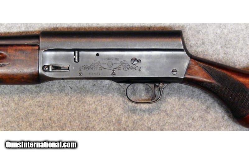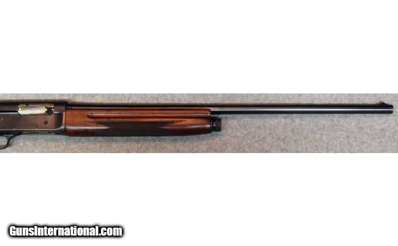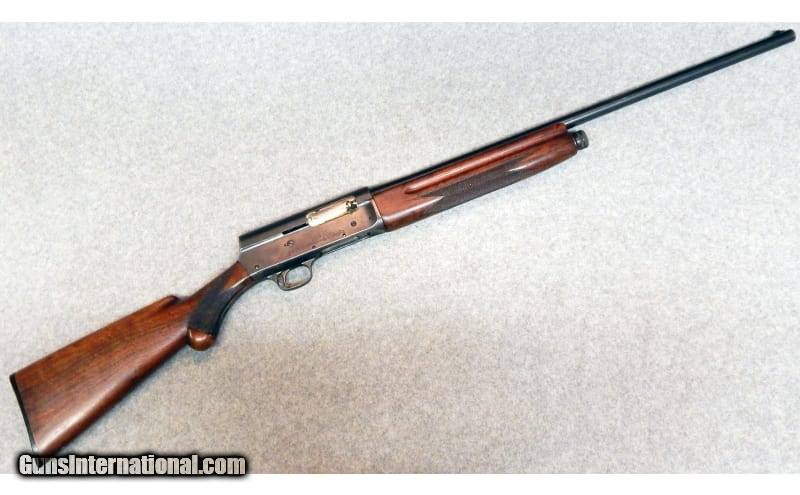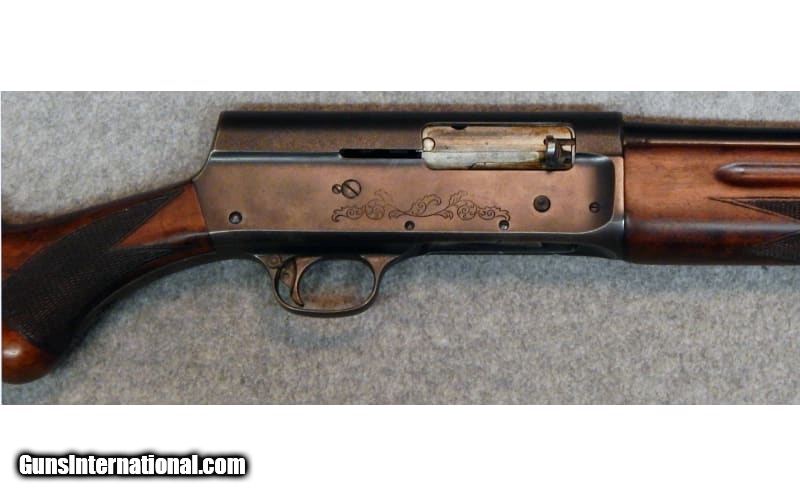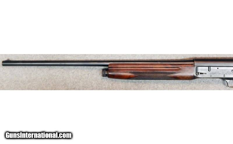 Description: Browning ~ A5 ~ Chambered in 20 Gauge. Is a semiautomatic shotgun with a 3 + 1 capacity tubular magazine. Features a 26" modified bore barrel, blued receiver has a dull patina and bears an engraving pattern, and is complimented with walnut furniture. 20 Gauge SOLD Chambers: 20 Gauge. Metal Condition: Good condition. Wood Condition: Very good condition. Bore Condition: Good condition. Triggers: 5 pounds. Stock Dimensions: 14" LOP. Fore End: Walnut. Butt Pad: Polymer. Weight: 7.75 pounds Sights: Fixed front bead sight. Item Location: Acworth, GA |