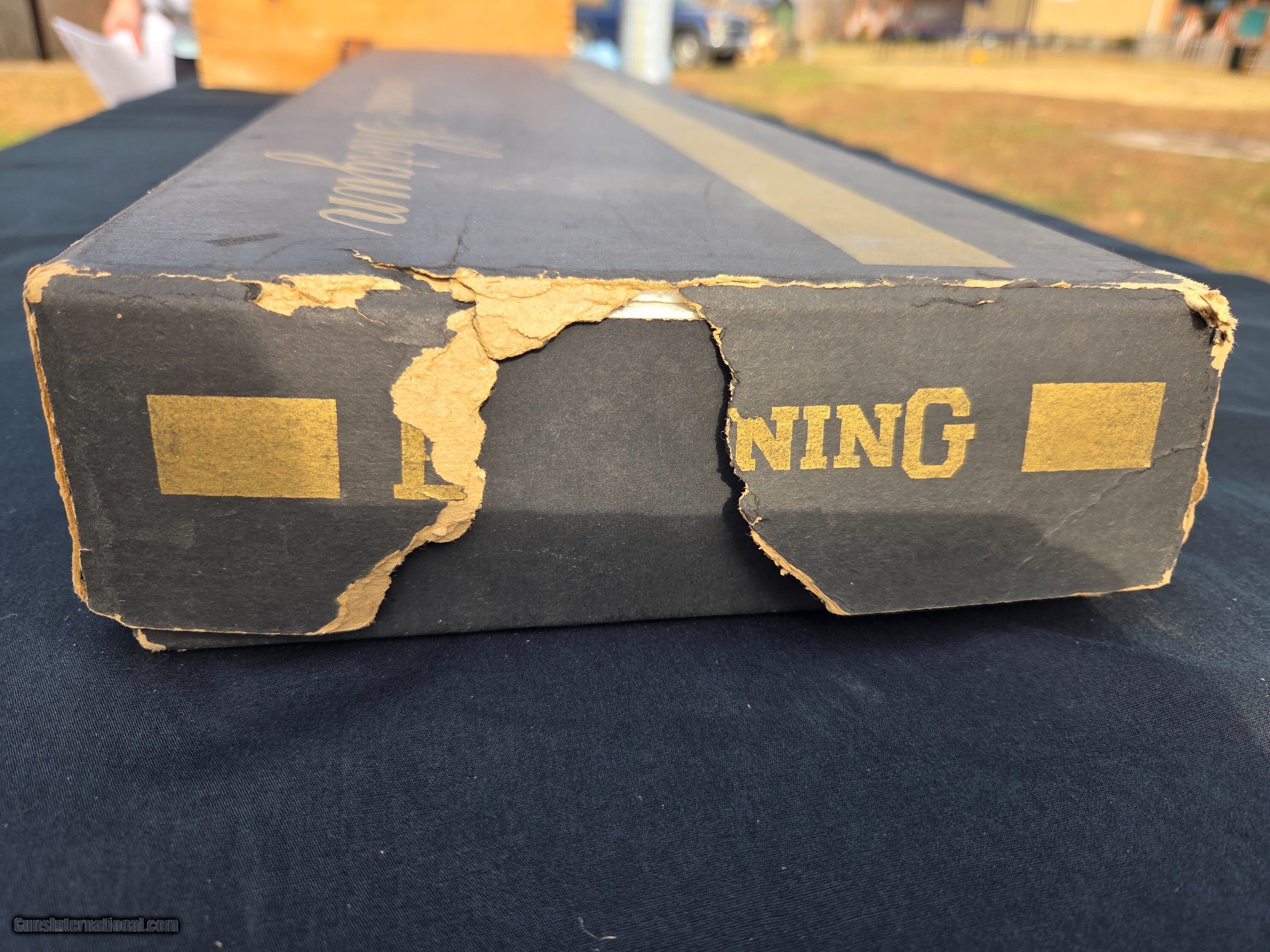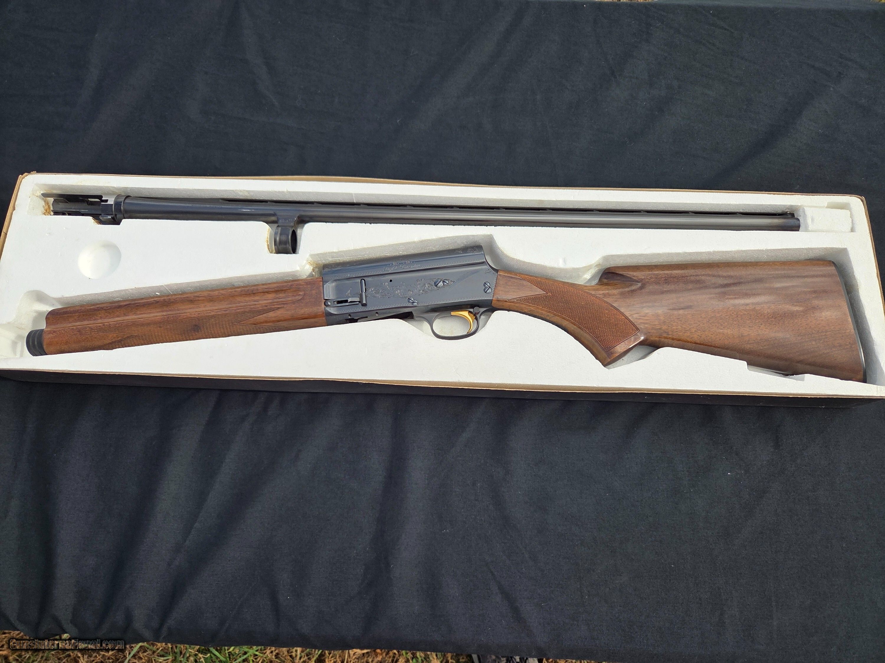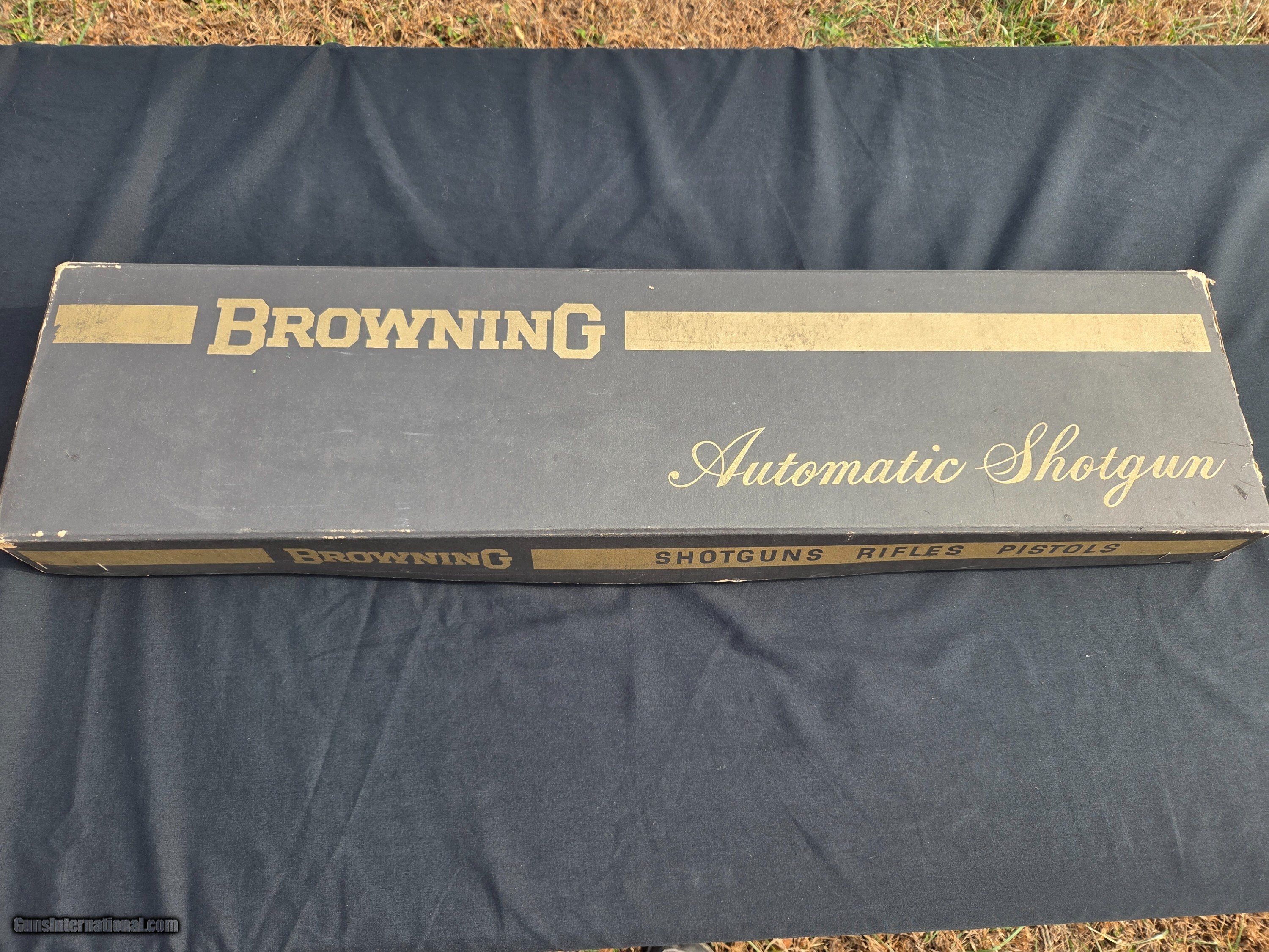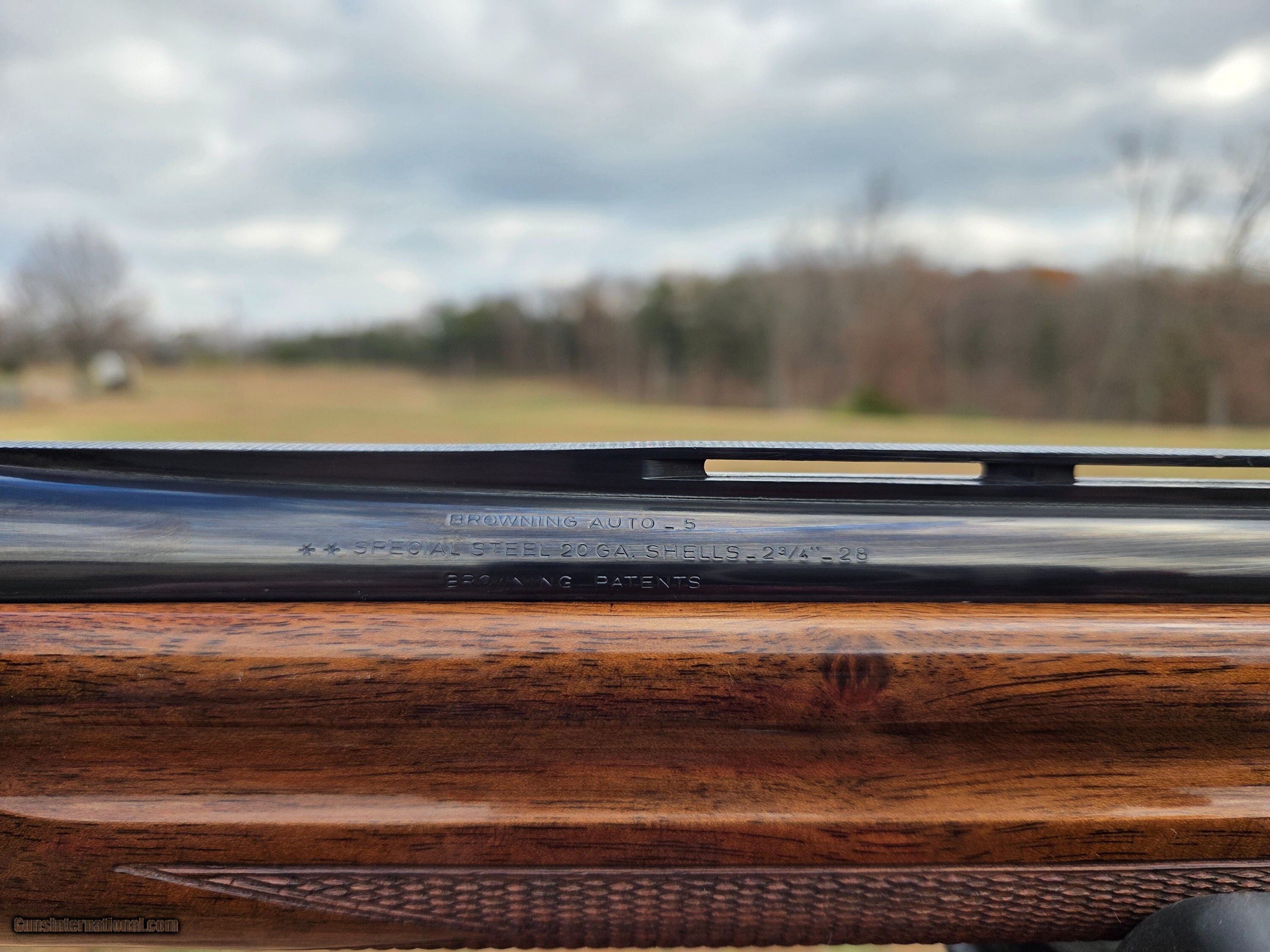Description: Belgium made Browning Auto 5 20 gauge in the box from 1973. This gun is all factory but does show some handling marks, more so in the wood than the metal. The box is correct and does match the gun. The barrel is 28" with 2 3/4" chambers and a modified choke. Length of pull is 14.25". Great addition to and collection and great investment piece. Please add $100 for shipping and 3% when paying with a card. Shotgun Gauge: 20 Gauge Price: $4,400.00 Shipping: $100.00 Contact Seller |