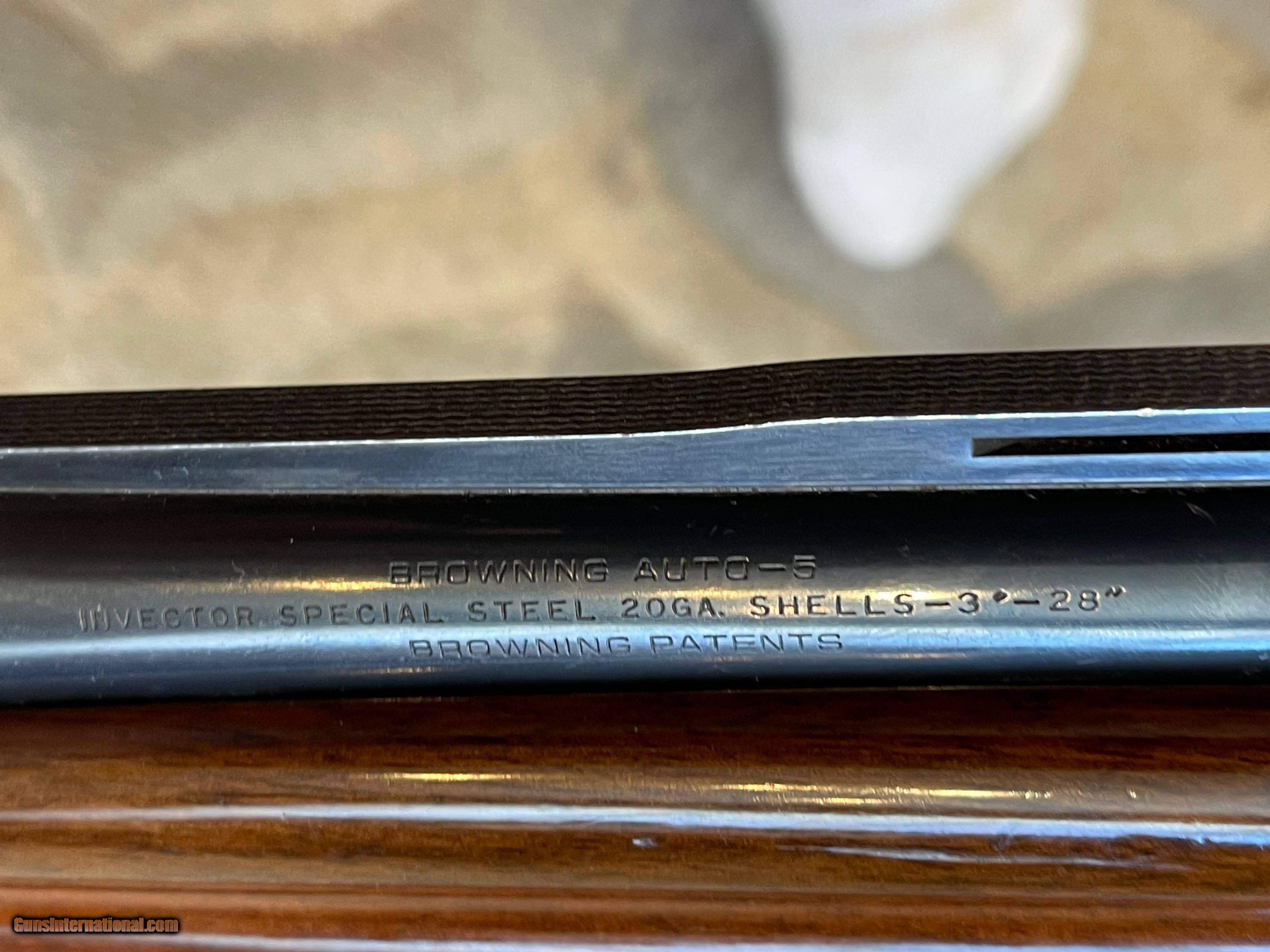 BROWNING AUTO-5 A5 MAGNUM TWENTY SHOTGUN 20 GA 28" VENT RIB BARREL 3" CHAMBER WITH INVECTOR REMOVABLE CHOKE TUBE GREAT SHOOTER CYCLES PERFEC
