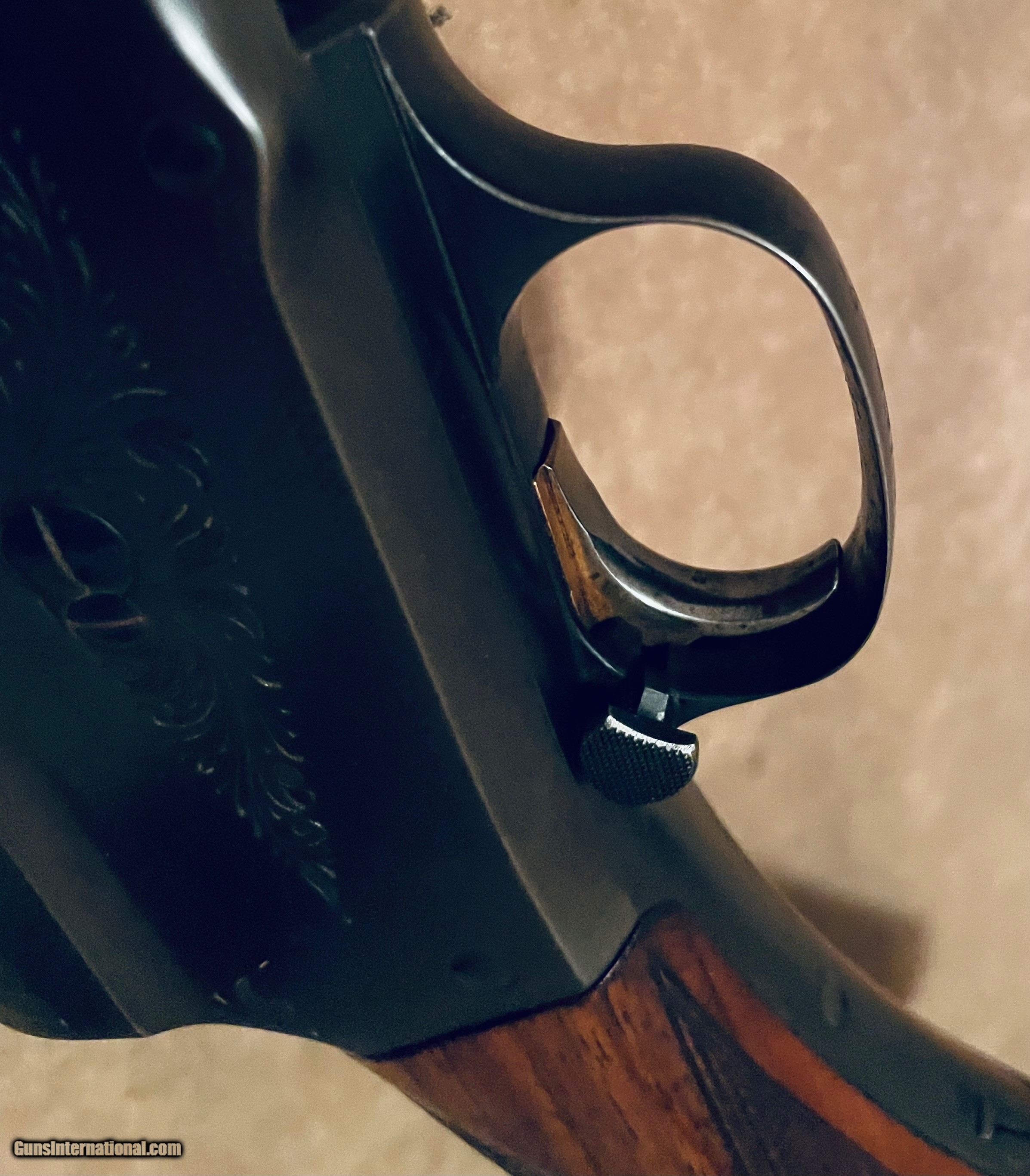 Description: Note, does not have the speed load feature. Also receiver is turning a gray/brown which did not show well in pictures. And barrel is not original to the gun nor is it a Light 12 barrel. Another of my dad's. He'd owned it since the 90's, doubt he ever fired it. Finsih appears original to me. Buttplate is obviously horn and does have some worm holes. Does not have a magazine plug. I fired 5 rounds of some of his very old reloads and they all short stroked (i.e. failed to eject). And yes the rings were set correctly; I've known how to do that since I was 11 and that was a long time ago. Fired most of a box of some cheap Winchester factory shells and they fed/ fired/ extracted/ ejected flawlessly. That means zero malfunctions wtih factory ammo so there's no reason to ask if it malfunctioned with factory ammo. Proofhouse put date of mfg 1953. I always email when payment is received and provide tracking when item ships, usually next business day. Will not sell face to face but local buyers can arrange to pick it up from the dealer I use for transfers and I'll cover his transfer fee. I'm not set up in any way to sell to anybody in CA. $35 shipping, FEDEX Ground. Payment by USPS or bank money order, cashiers check or personal check only. NO WESTERN UNION money orders. SOLD Shotgun Gauge: 12 Gauge Manufacturer: Browning Model: Auto-5 |