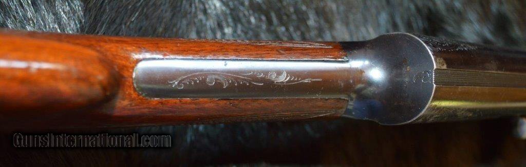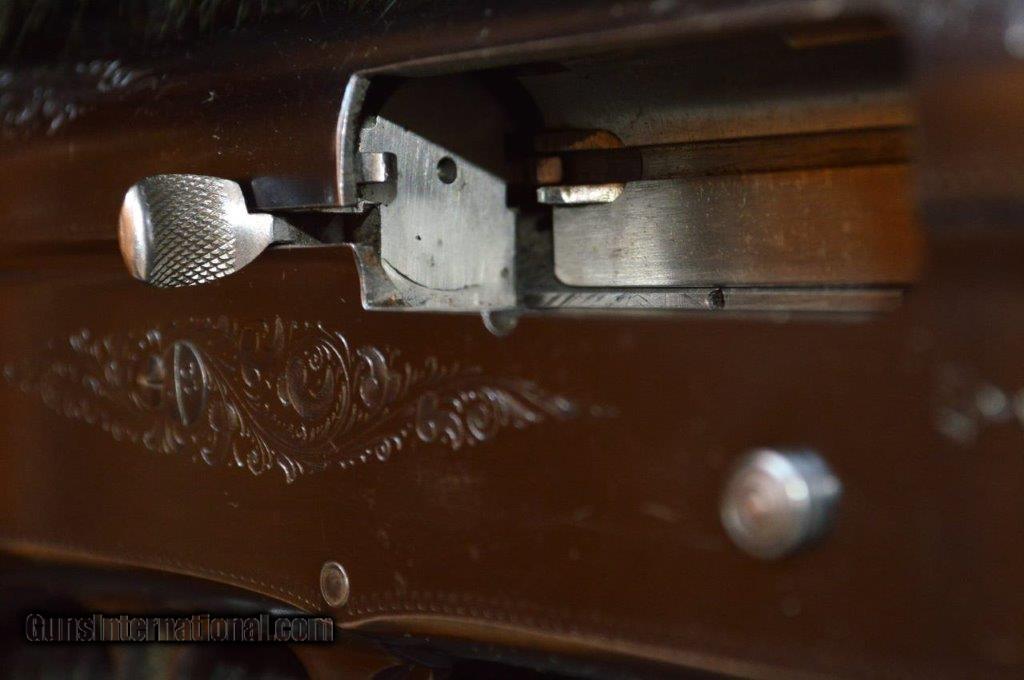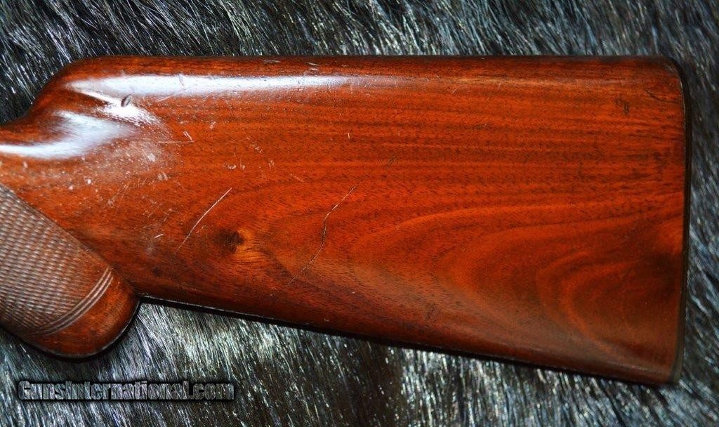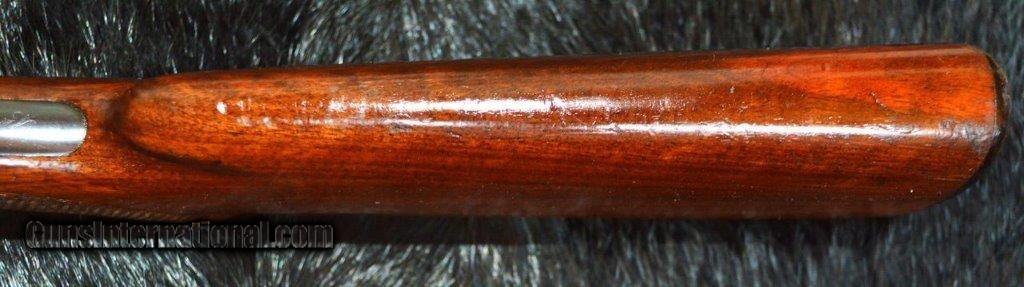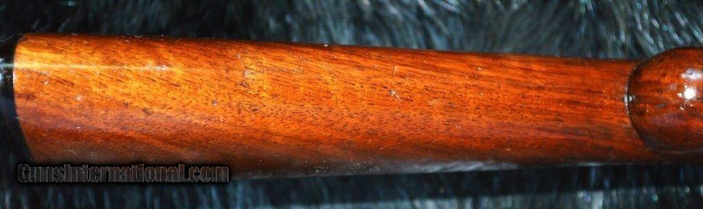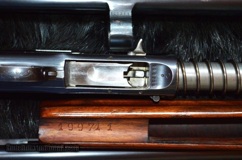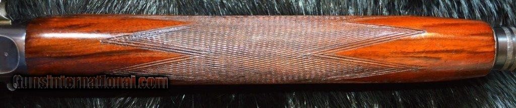 Description: This is a 12 gauge Browning Auto-5 made in 1938. It has the original 30" full choked solid rib barrel with a gold bead at the end. It has the typical 4 shot magazine with the magazine cutoff, a checkered pistol grip stock and forend with a horn buttplate. The bluing is a beautiful deep rust blue. The barrel, forend and frame all have the same serial number, 199711. The bolt face shows that this gun has been shot very little and as a result the springs are all very strong. The 2-3/4" chambered bore is bright and shiny. The wood has nice color and figure and the stock and forend have no cracks, splits or gouges. Just some light handling marks. These guns were all hand engraved and hand checkered in Belgium. Curio/Relic: Yes Shotgun Gauge: 12 Gauge Manufacturer: Browning Model: Auto-5 Serial Number: 199711 Barrel Length: 30 Chambers: 2-3/4 Action: Recoil operated Stock Dimensions: 14-1/4 Rib: Solid rib Manufacture Date: 1938 Chokes: Full Price: $1,156.95 Shipping: $45.00 Buy Now Contact Seller |