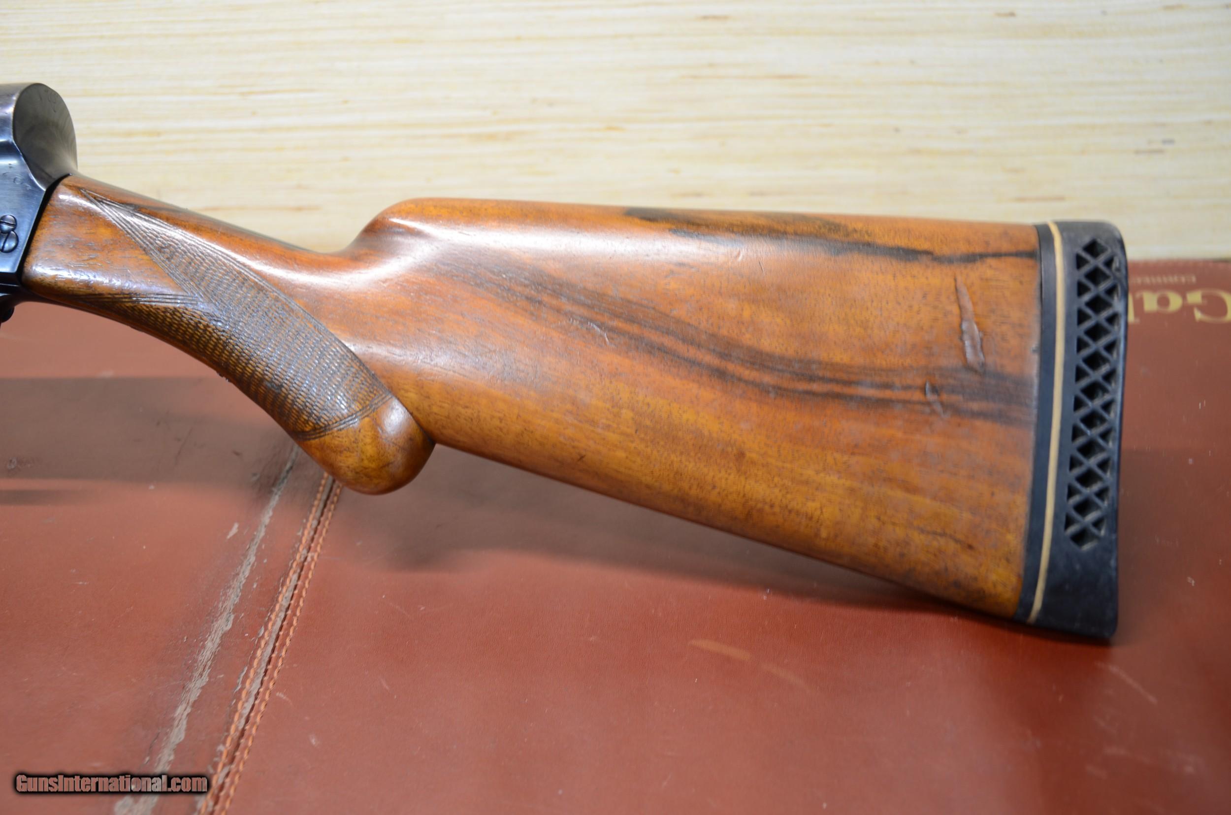 Description: Browning Belgium Auto-5 Standardweight 12Ga., 2 3/4"in. Manufactured 1956, Vent Modified barrel This is not a collectors gun, this is a nice gun to take out bird hunting without worries. Firearm mechanically excellent with excellent bore, choked modified and with a 14 3/8"in. length of pull. (Firearm has been reblued) SOLD Curio/Relic: Yes Shotgun Gauge: 12 Gauge Manufacturer: Browning Model: Auto 5 Serial Number: H94684 Barrel Length: 26 Chambers: 2 3/4 Condition: 70% Metal Condition: 95% Reblued Wood Condition: 70% Bore Condition: excellent Action: Semi Auto Stock: checkerd walnut round knob Butt Pad: rubber LOP: 14 3/8 Rib: VR Finish: Blue ( reblue ) Sights: single bead Manufacture Date: 1956 Chokes: Modified |