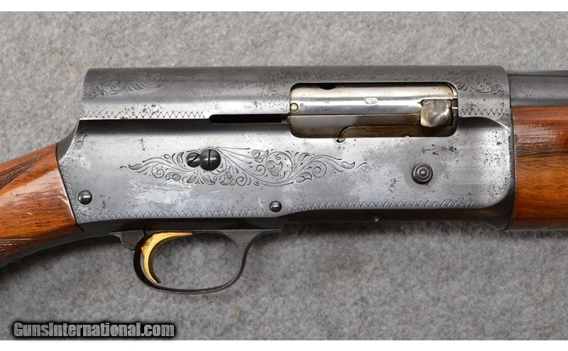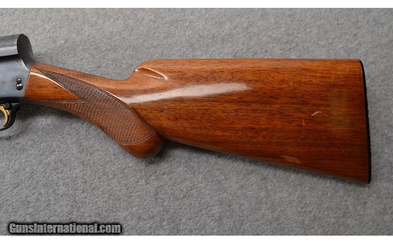 Description: This Browning Auto 5 Light Twelve has seen some action in its time, but is still in great condition. Fixed full choke 27 1/2" barrel with vent matte rib and single bead. Some patina noted throughout the barrel. No dings, dents, rings, or bulges noted. There is some powder and plastic residue throughout the bore. Checkered pistol grip stock and checkered fore end are in good condition. Some dings and dents noted on both, with a couple through the finish on the pistol grip stock. This classic firearm is ready for your next trip to the field. Manufactured in Belgium in 1963. 12 Gauge SOLD Chambers: 2 3/4" chamber. Metal Condition: "Barrel and receiver in good condition. Patina found throughout. No deep scratches, dings, dents, or other defects noted. Wood Condition: "Checkered pistol grip stock is in good condition. There are a few dings and scratches with a couple that go through the finish. Checkered wood fore end in good condition with a few dings and dents noted. However, none appear to go through the finish Bore Condition: "No dings, dents, rings, or bulges noted. There is some powder and plastic residue noted throughout. Barrels: 27 1/2" barrel. Triggers: Smooth faced trigger. Stock Dimensions: "14 1/2"" LOP, 1 5/8"" DAC, 2 1/4"" DAH Fore End: Checkered wood fore end. Butt Pad: Thin hard plastic butt plate. Weight: 8 lb. Sights: Vent matte rib with single bead. Chokes: Fixed full choke. Item Location: Mitchell, SD |