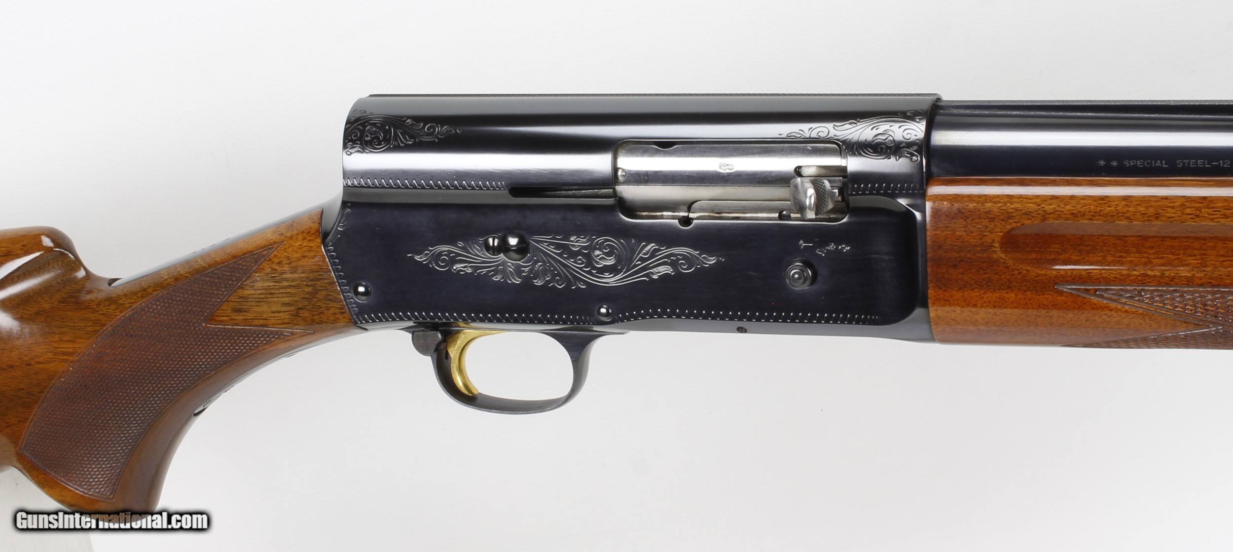 Description: Browning Auto-5 Light Twelve 12Ga. Shotgun. SN #7502. Mfg. in 1963."BELGIUM MADE", LOP 14 1/4". Chamber 2 3/4". DAH 2 1/2"- DAC 1 5/8". Modified fixed choke. 27" barrel with an excellent bore. The blued metal finish is in excellent condition as is the checkered pistol grip stock and forend. Vent Rib. Browning FN plastic buttplate. Made in Belgium. Weight 8 lbs. More photos available upon request. Ships to Lower 48 W/ Insurance $40.00. SOLD Curio/Relic: Yes Shotgun Gauge: 12 Gauge Manufacturer: Browning Model: A-5 Light Twelve Serial Number: 7502 Barrel Length: 27 Chambers: 2 3/4 Condition: Excellent Metal Condition: Excellent Wood Condition: Excellent Bore Condition: Excellent LOP: 14 1/4 Finish: Blue Manufacture Date: 1963 |