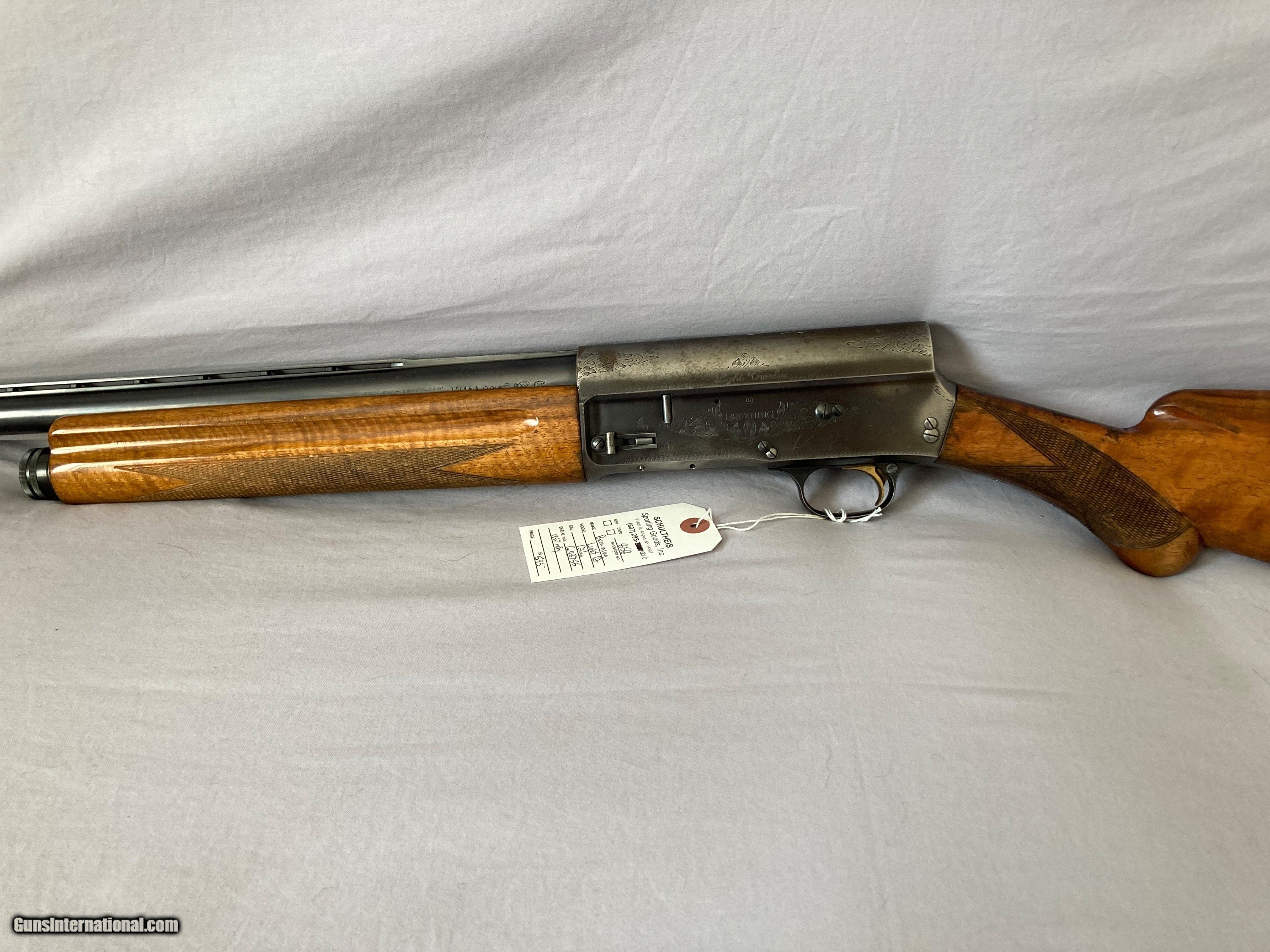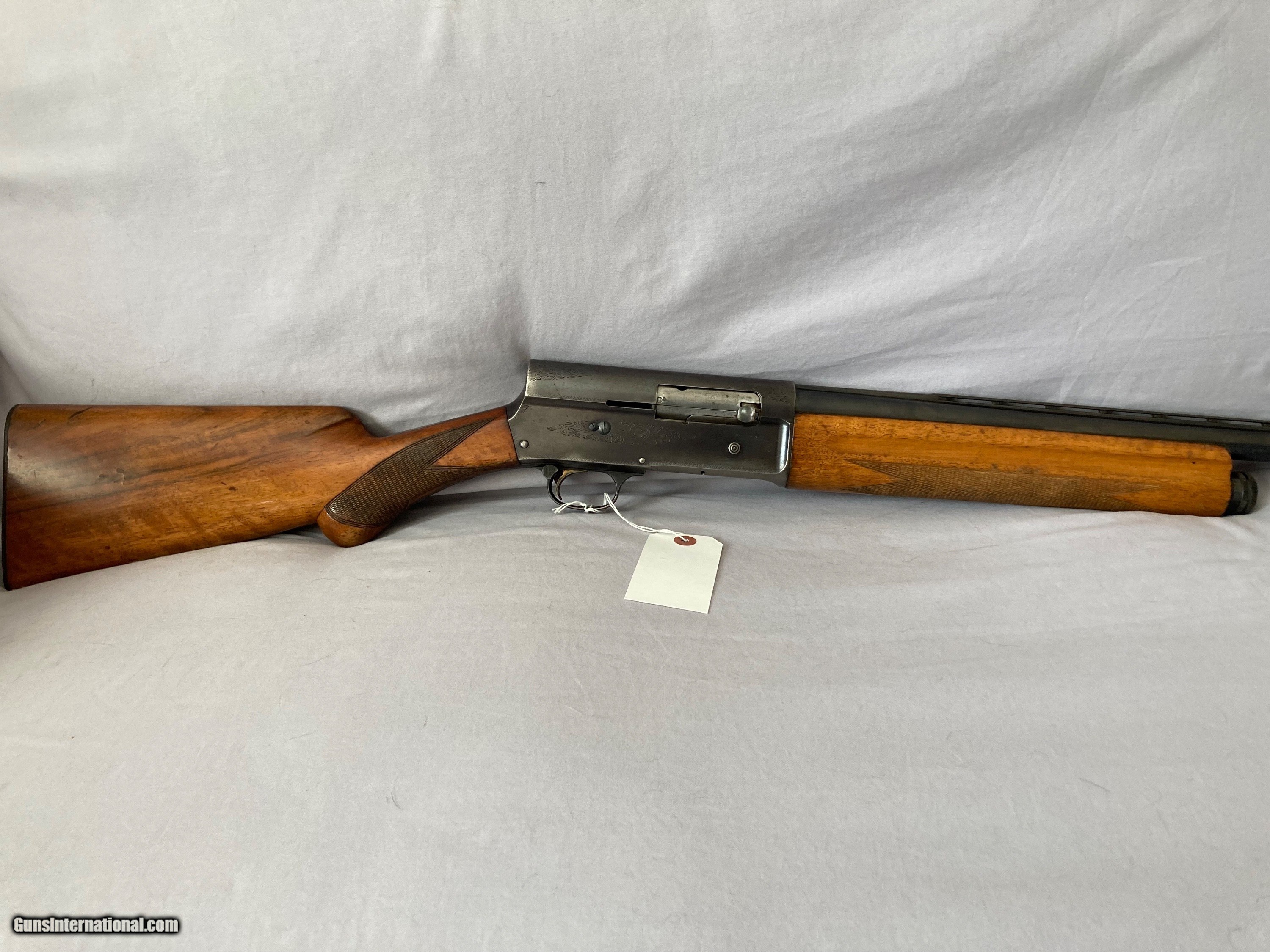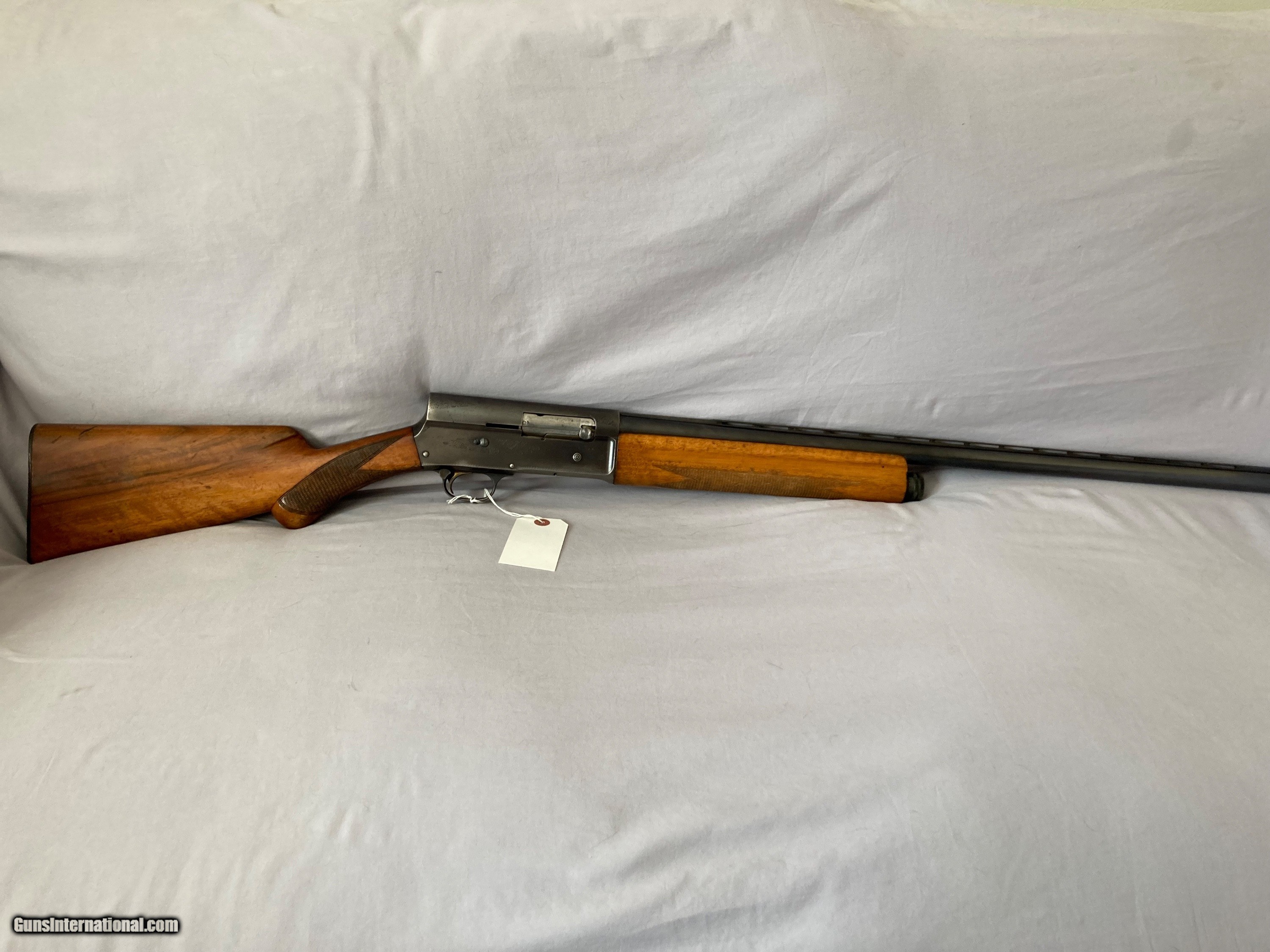 Description: Browning Auto-5 Light Twelve, 12ga. 28" vent rib, modify, serial #G48XXX, 1957 mfg., round knob, original butt plate, attractive orange-reddish stock and forearm, all original, 70% overall blue, a solid forearm, no cracks, and 80% original wood varnish, ($50.00 shipping) SOLD Curio/Relic: Yes |