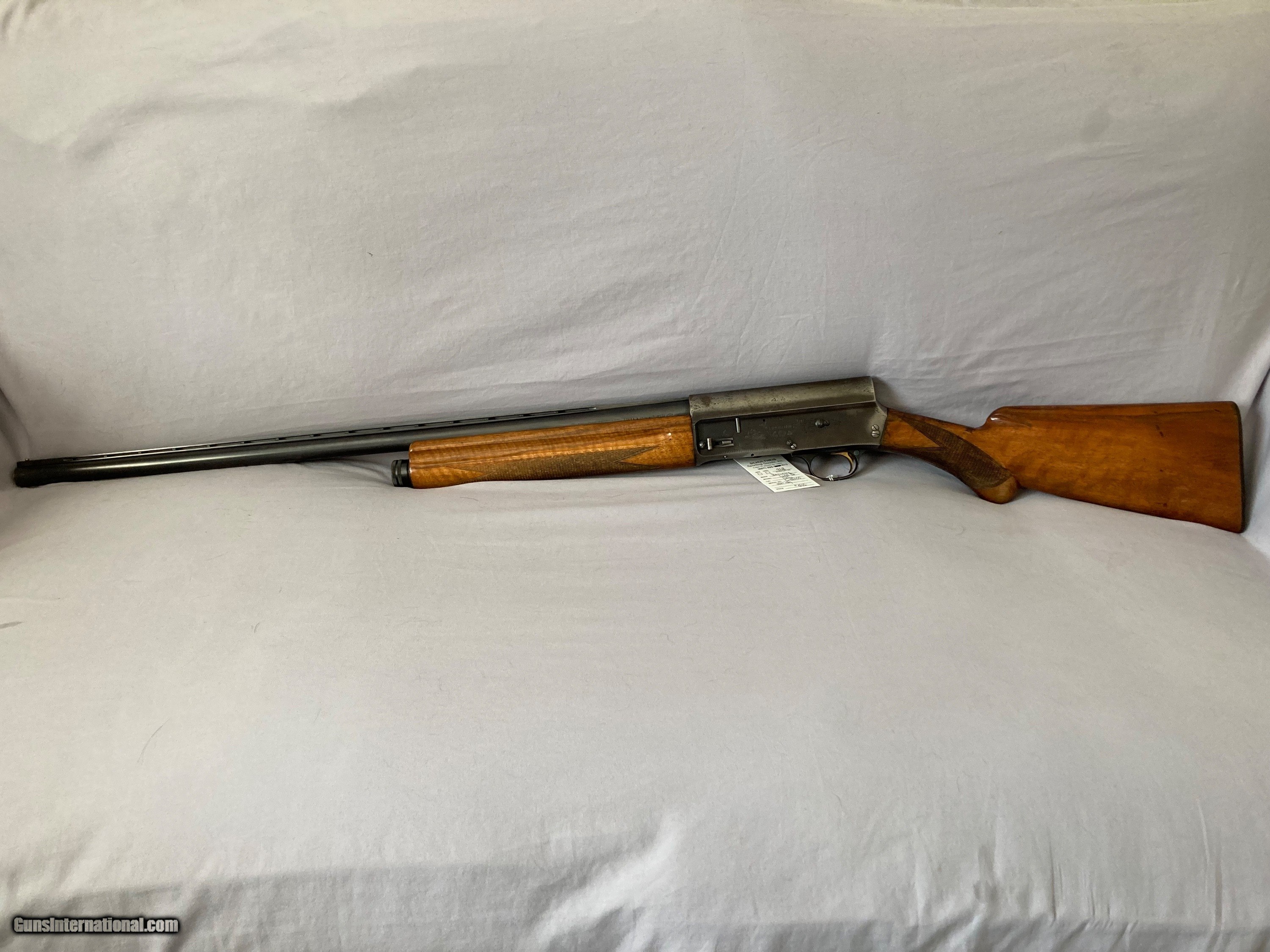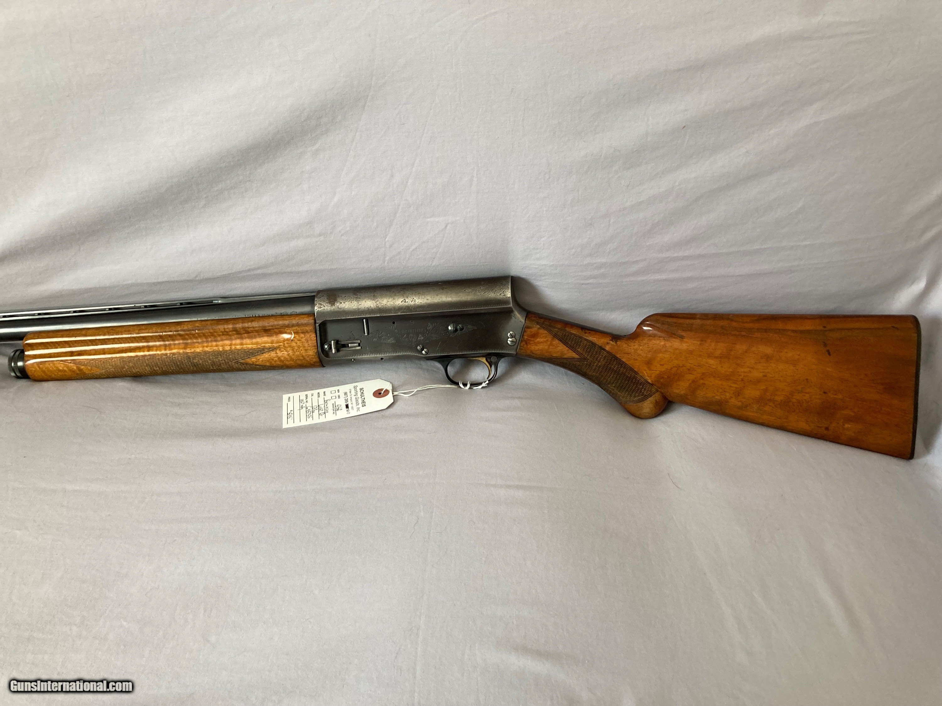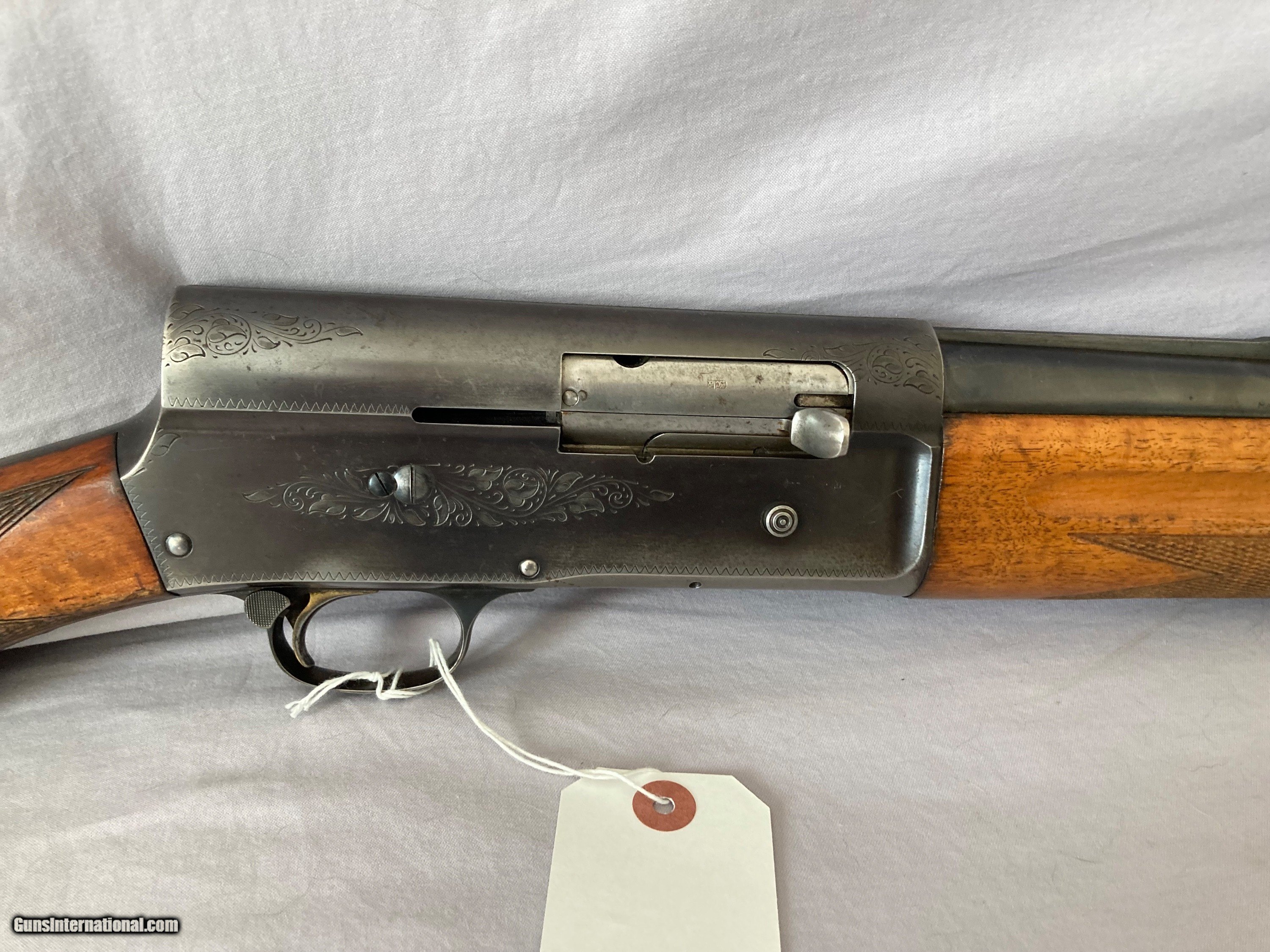 Description: Browning Auto-5 Light Twelve, 12ga. 28" vent rib, modify, serial #G48XXX, 1957 mfg., round knob, original butt plate, attractive orange-reddish stock and forearm, all original, 70% overall blue, a solid forearm, no cracks, and 80% original wood varnish, ($50.00 shipping) SOLD Curio/Relic: Yes |