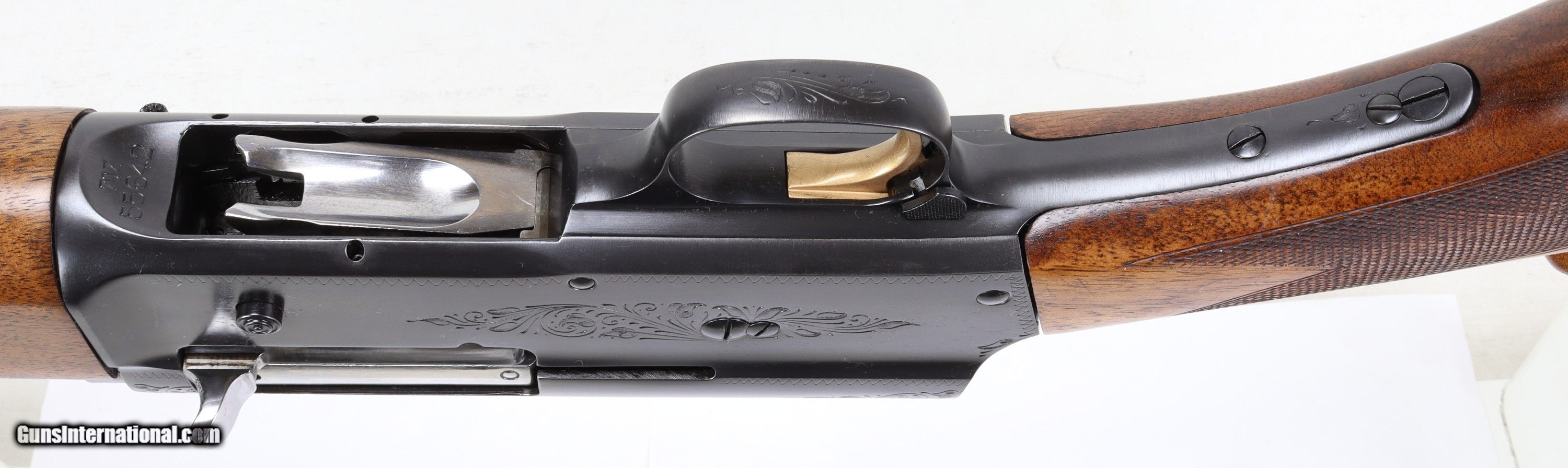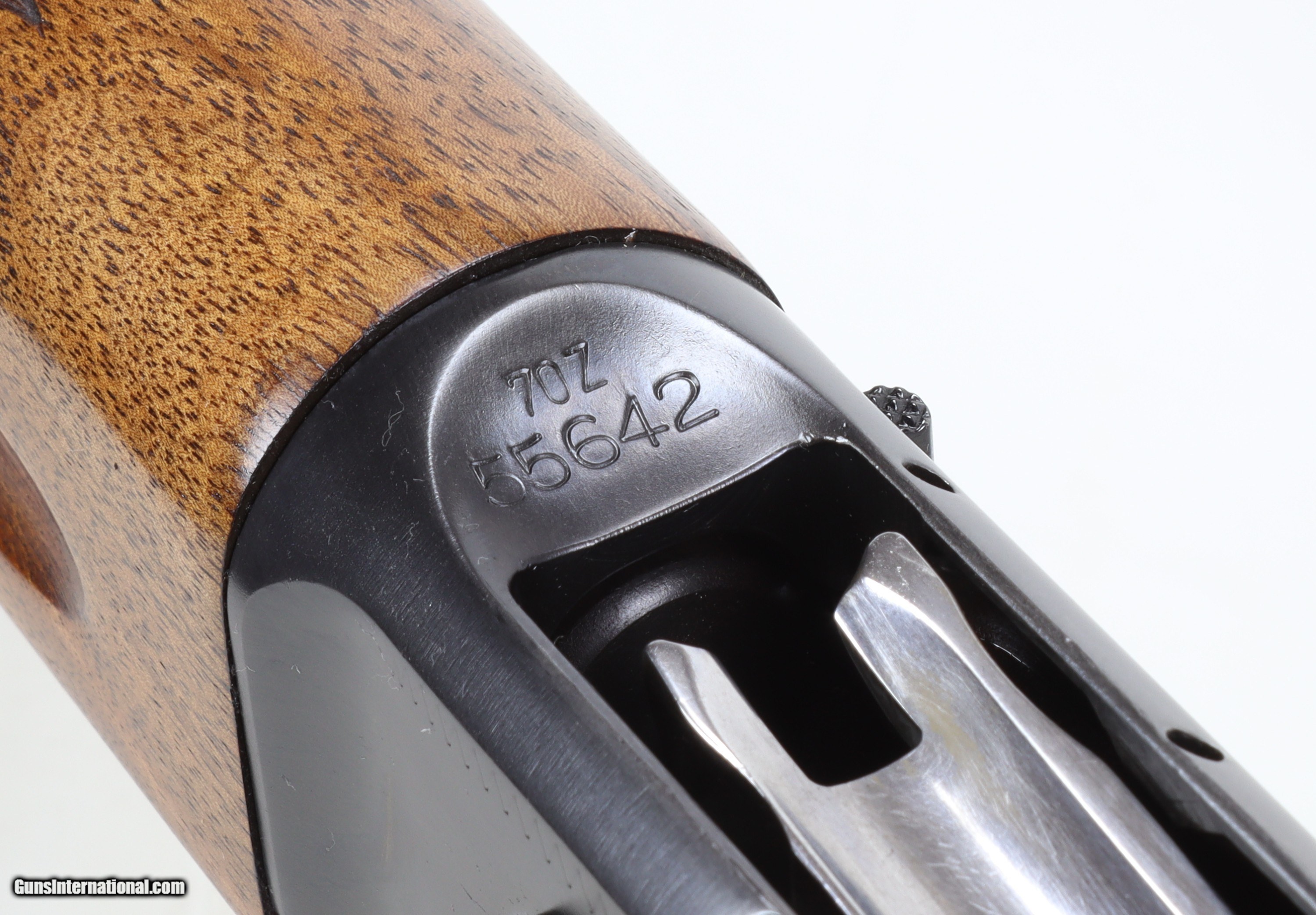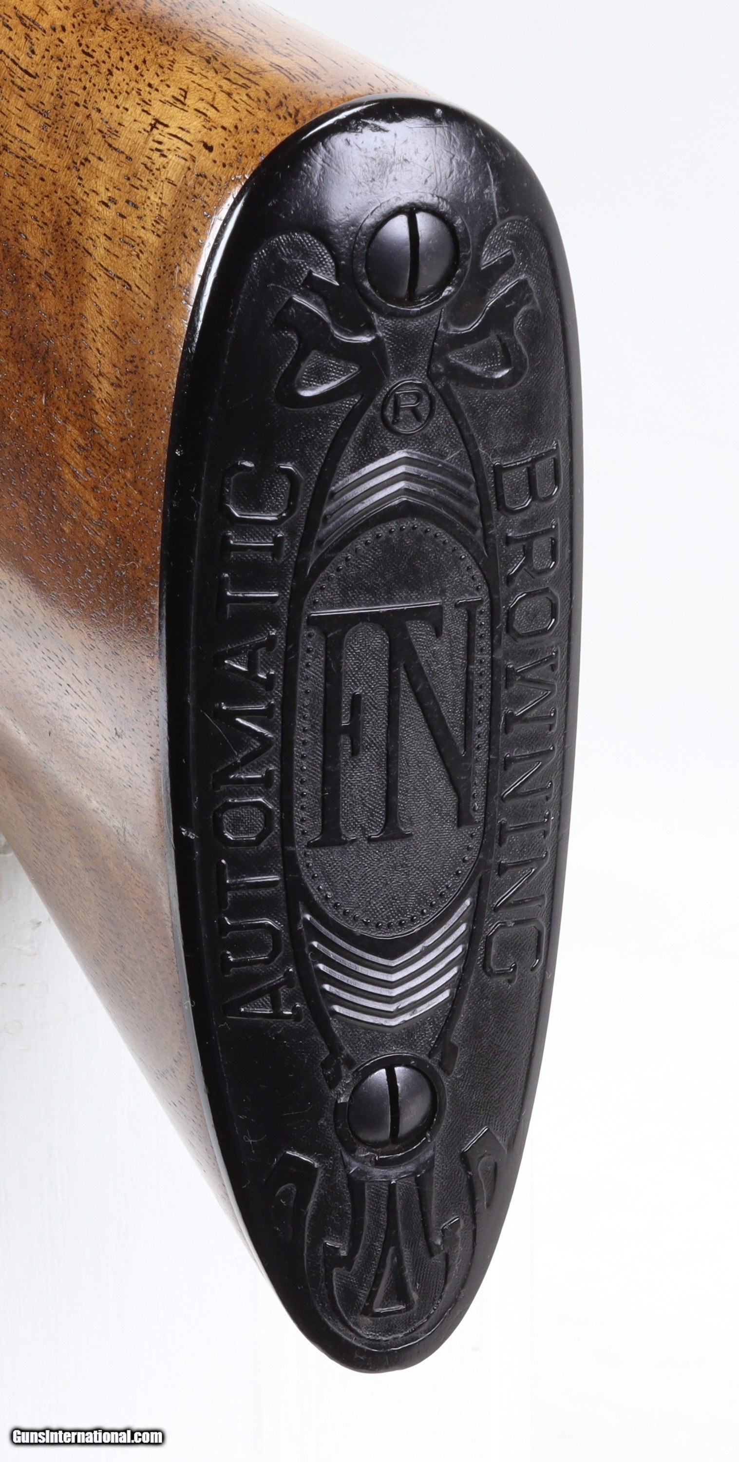 Description: Browning Auto-5 Light Twenty 20Ga. Semi-Auto Shotgun. SN #70Z55642. Mfg. in Belgium in 1970. LOP 14 1/4". 25 1/2" Vent Ribbed Barrel with an EXCELLENT Bright and Shiny Bore. Chamber 2 3/4". DAH 2 1/4". DAC 1 1/2". Choke is Modified (.014). Both the Blued Metal and Checkered Pistol Grip Stock and Forend have been FULLY RESTORED by SHOOTER'S EXCHANGE and LOOK GREAT. Scroll Engraved Receiver. Original FN Plastic Buttplate. Light Twenty A-5's are VERY DESIRABLE and this one REALLY LOOKS NICE. Weight: 6.65 lbs. Trigger Pull: 4.75 lbs. More photos available upon request. Ships to Lower 48 W/ Insurance $65.00. SOLD Curio/Relic: Yes Shotgun Gauge: 20 Gauge Manufacturer: Browning Model: Auto 5 Light Twenty Serial Number: 70Z55642 Barrel Length: 25 1/2 Chambers: 2 3/4 Condition: Excellent Metal Condition: Refinished Wood Condition: Refinished Bore Condition: Excellent Action: Semi Auto Butt Pad: Plastic LOP: 14 1/4 Rib: Vent Finish: Blue Weight: 6.65 lbs. Manufacture Date: 1970 |
