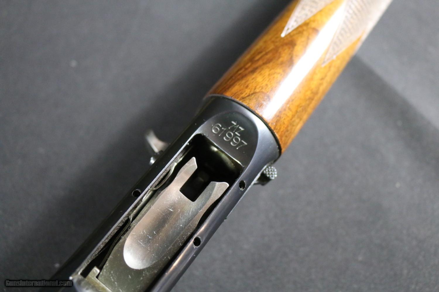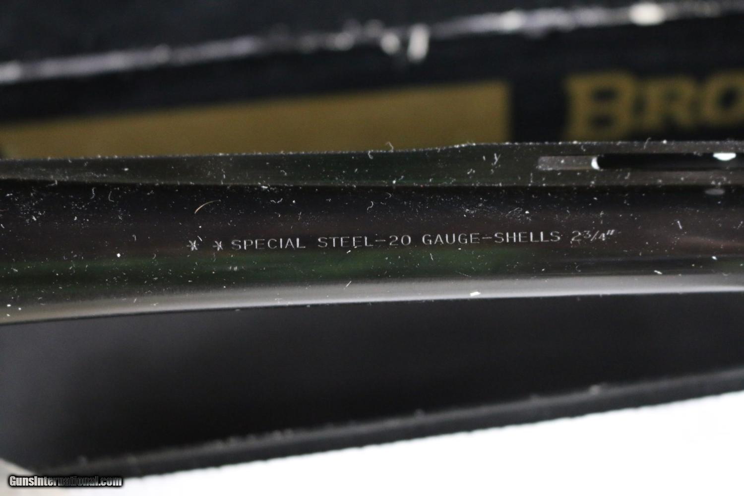 Description: MADE IN BELGIUM IN 1971. BARREL IS 28 INCHES WITH A VENT RIB AND CHOKED MOD. 99.9% AND ALL FACTORY. GREAT ADDITION TO ANY COLLECTION. PLEASE ADD $40 FOR SHIPPING. RETURN POLICY: We offer a 3 day return policy. Items must be returned in the same condition as received. Notification must be made with-in 3 days of receipt at dealer. All fees are non-refundable no exceptions. LAW-A-WAY: We offer a 60 day law-a-way with a 1/3 up front and 1/3 every 30 days. Once started all sales are final with no exceptions. CONDITIONS OF SALE: Art’s Gun Shop makes no express or implied warranty or representation with respect to items being advertized or sold. In no event shall Art’s Gun Shop be held responsible for correctness of description, representation, or warranty of items sold by them or their representatives. All items sold as collector items. All liability concerning the use of any weapons purchased from Art’s Gun Shop or its representatives is assumed by the purchaser. SOLD Manufacturer: BROWNING Condition: EXCELLENT Metal Condition: EXCELLENT Wood Condition: EXCELLENT Bore Condition: EXCELLENT Action: SEMI Triggers: SINGLE/GOLD LOP: 14 1/4 Rib: VENT Manufacture Date: 1971 Extras: BOX AND BOOKLET |