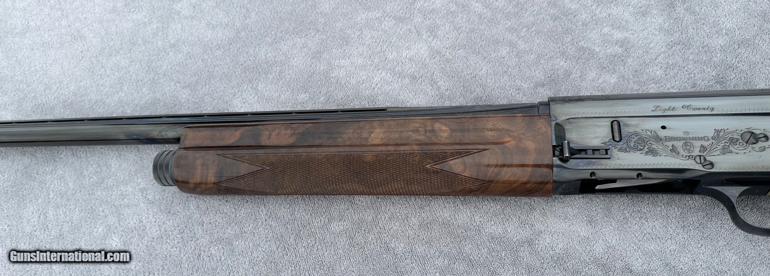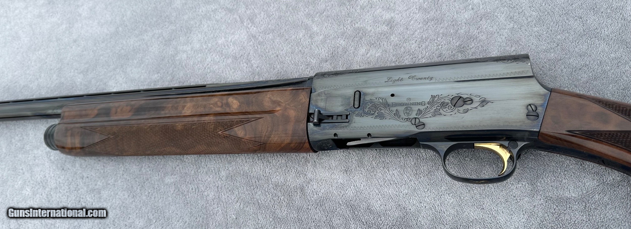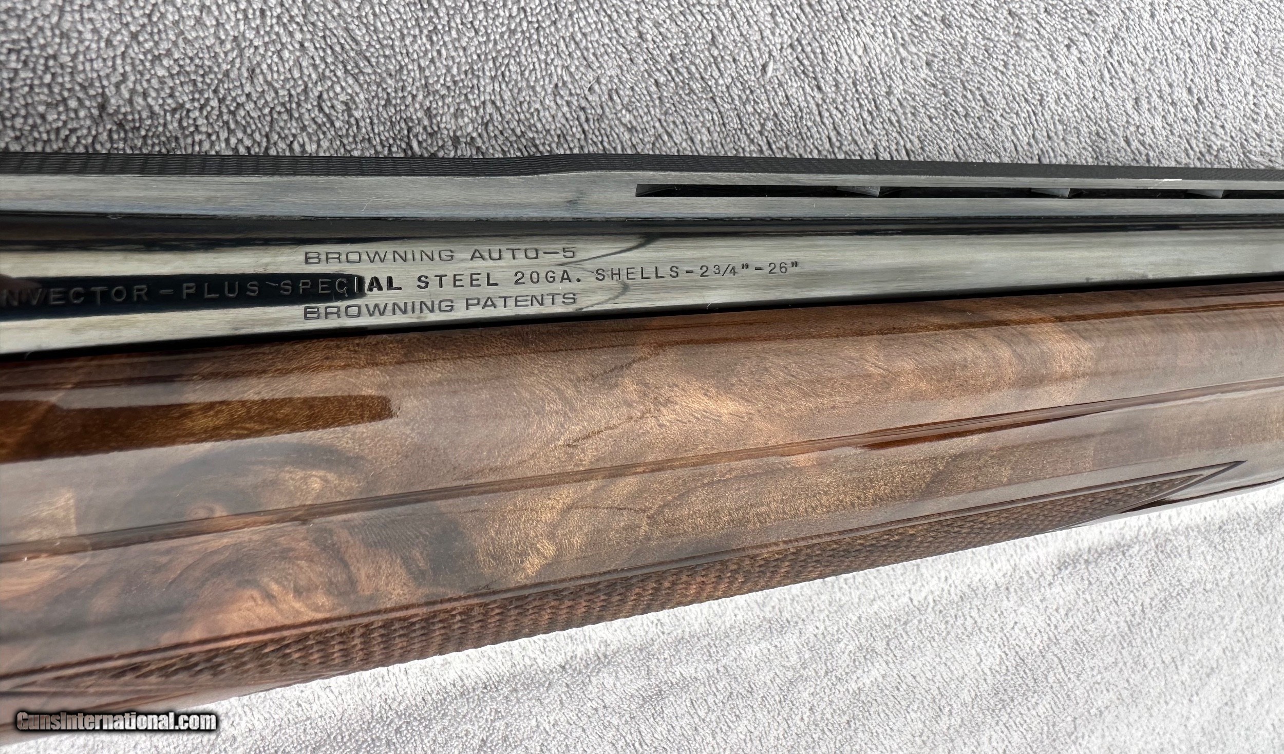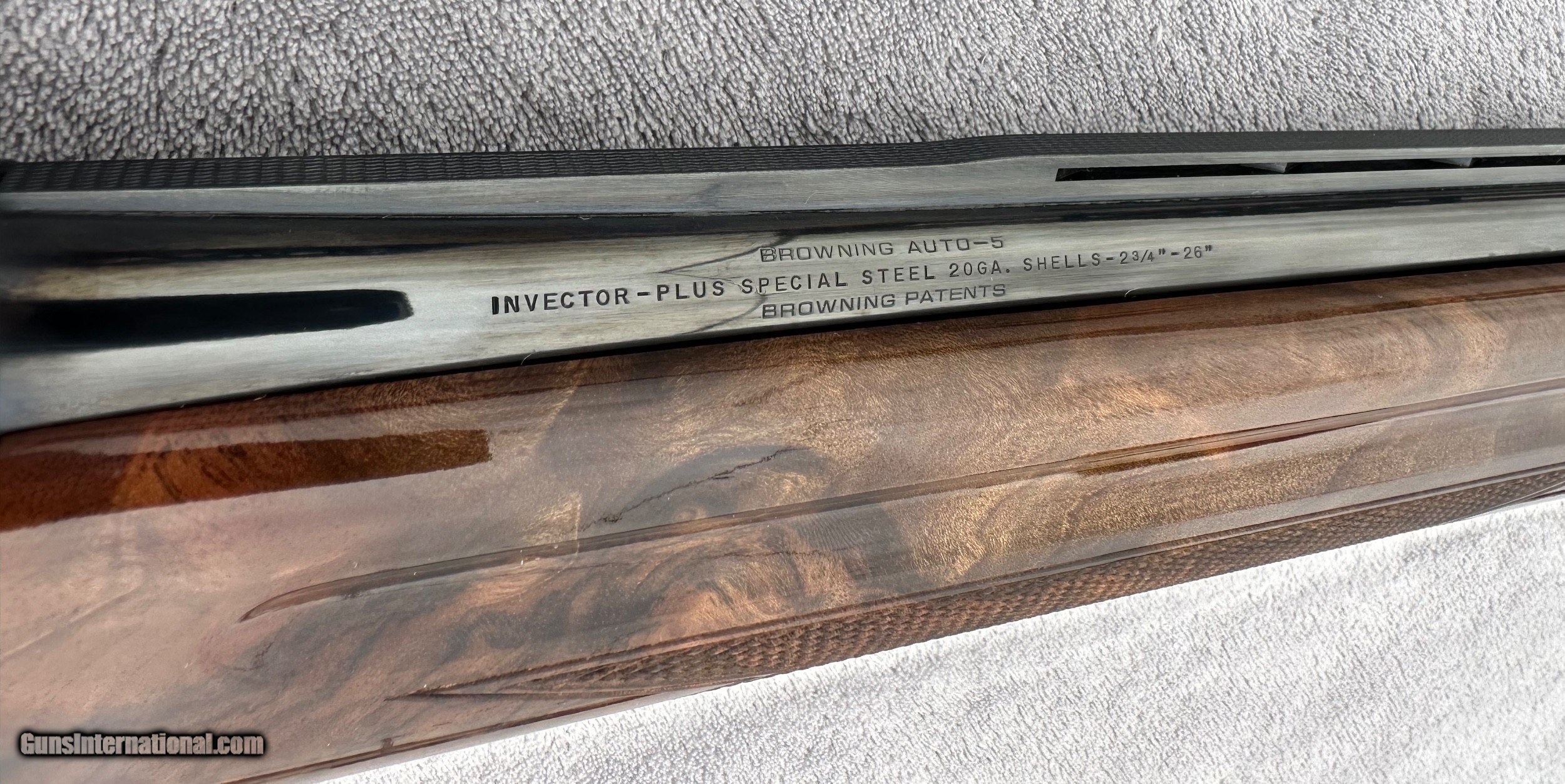 Description: Browning Auto 5 Light Twenty with 26" invector plus barrel and beautiful high grade wood. Excellent condition. Made in Japan in 1984. Please add $75 for shipping. SOLD Shotgun Gauge: 20 Gauge Manufacturer: Browning Model: Auto 5 Barrel Length: 26” Condition: Excellent Metal Condition: Excellent Wood Condition: Excellent |