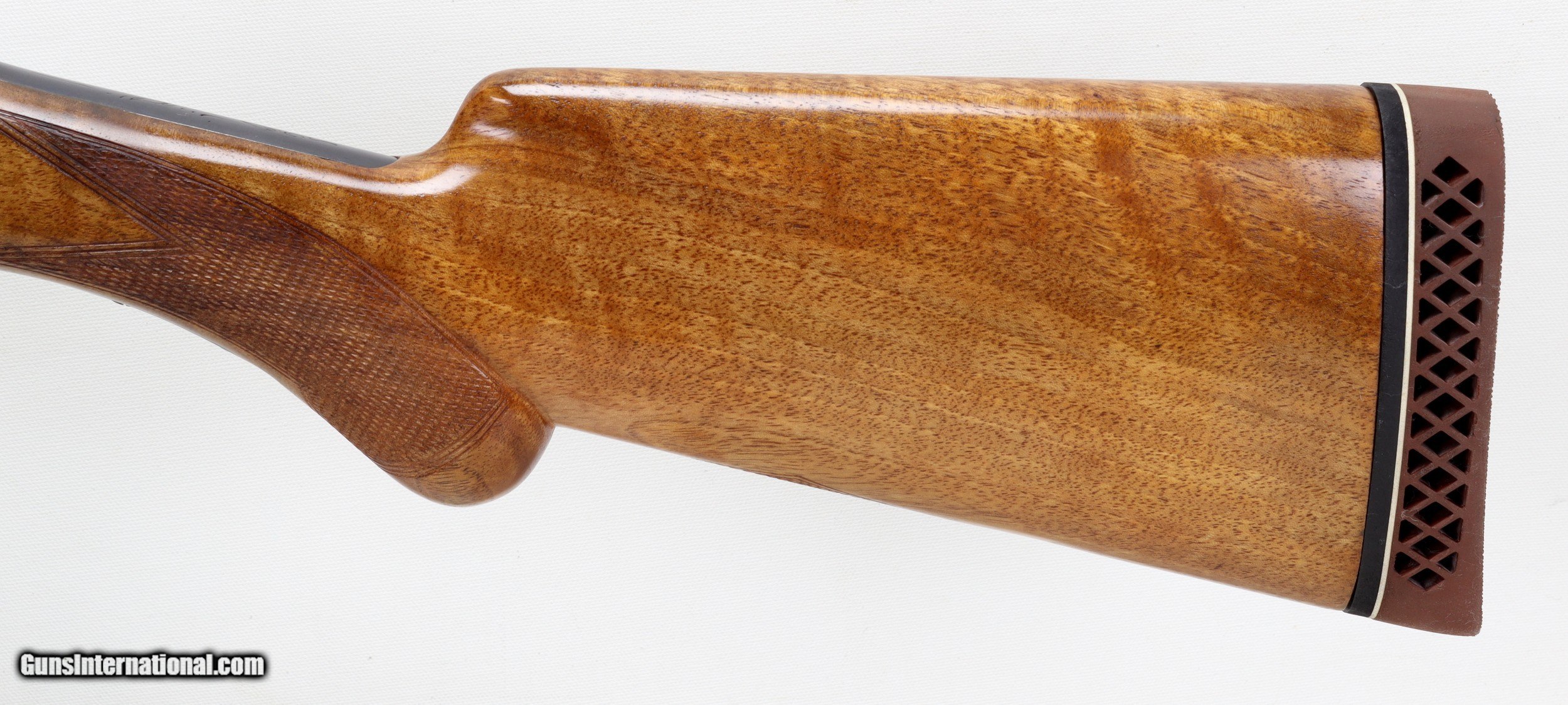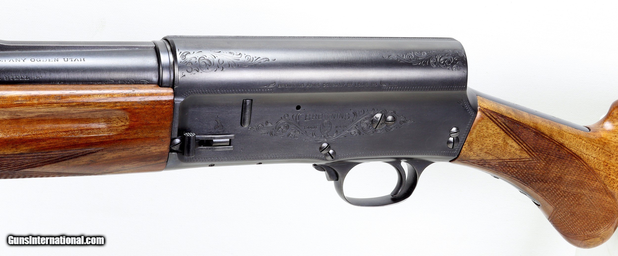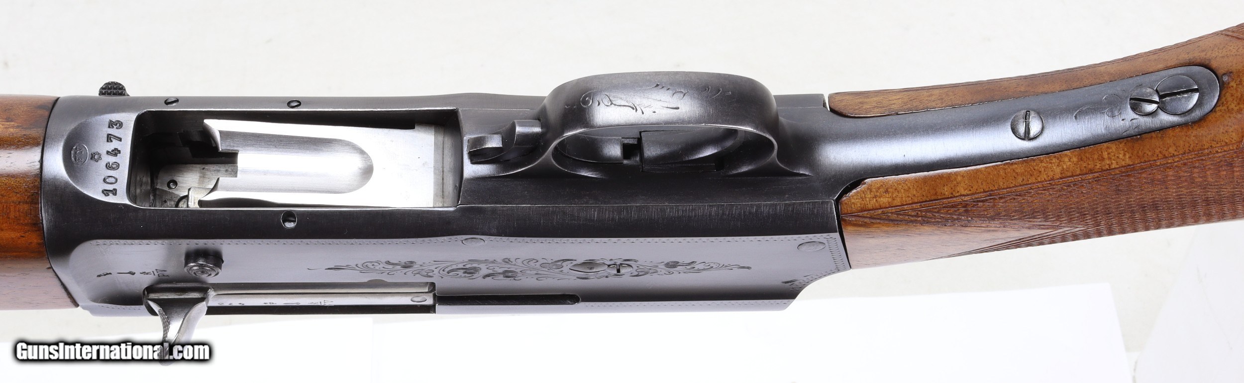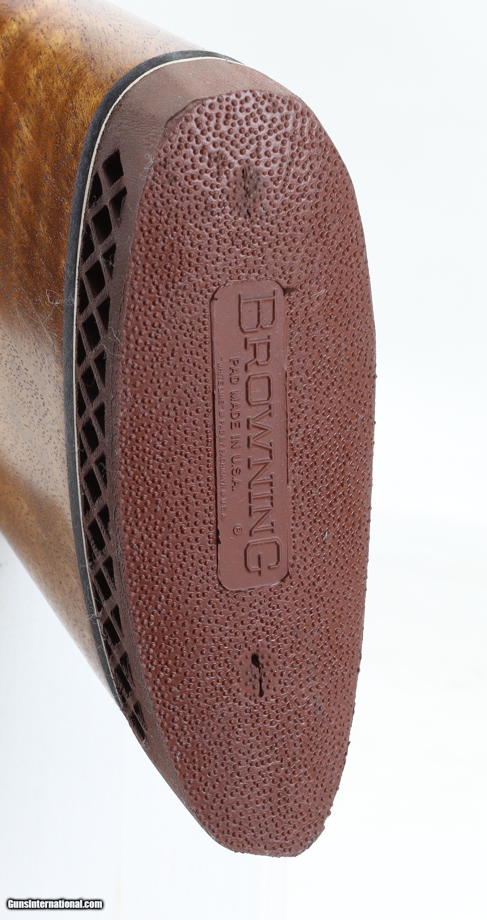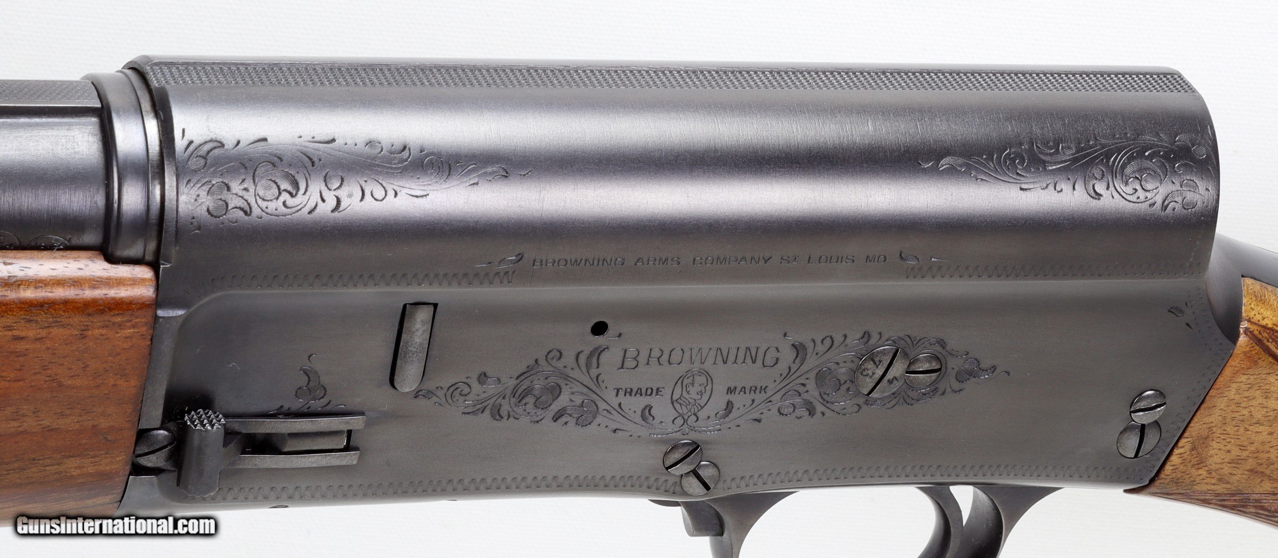 Description: Browning Auto-5 Standard Semi-Auto Shotgun in 16Ga. SN #106473. Made in Belgium 1932-1940. INTRODUCED AS THE THREE SHOT, PRIOR TO INTRODUCTION OF SWEET 16", LOP 13 3/4". Chamber is 2 3/4". Choke is Extra Full (.035). DAH 2 1/2". DAC 1 5/8". 27 1/2" Solid Raised Ribbed Barrel with a VERY GOOD to EXCELLENT Bore for it's age. Both the Blued Metal and Round Knob Checkered Pistol Grip Stock and Forend have been FULLY RESTORED by SHOOTER'S EXCHANGE and LOOK GREAT. This Early A-5 16Ga. has the safety in front of the trigger guard. Browning 3 shot marked on underside of forend. Custom Checkering with Diamond on Stock and Forend. Browning Recoil Pad. Has Magazine Tube Cutoff. Screws on Receiver marked with Serial Number. Weight: 7.7 lbs. Trigger Pull: 3 3/4 lbs. More photos available upon request. Ships to Lower 48 W/ Insurance $55.00. SOLD Curio/Relic: Yes Shotgun Gauge: 16 Gauge Manufacturer: Browning Model: Auto-5 Serial Number: 106473 Barrel Length: 27 1/2 Chambers: 2 3/4 Condition: Excellent Metal Condition: Refinished Wood Condition: Refinished Bore Condition: VG to Excellent For Age Action: Semi Auto LOP: 13 3/4 Rib: Solid Finish: Blue Weight: 7.7 lbs. Manufacture Date: 1932-40 |