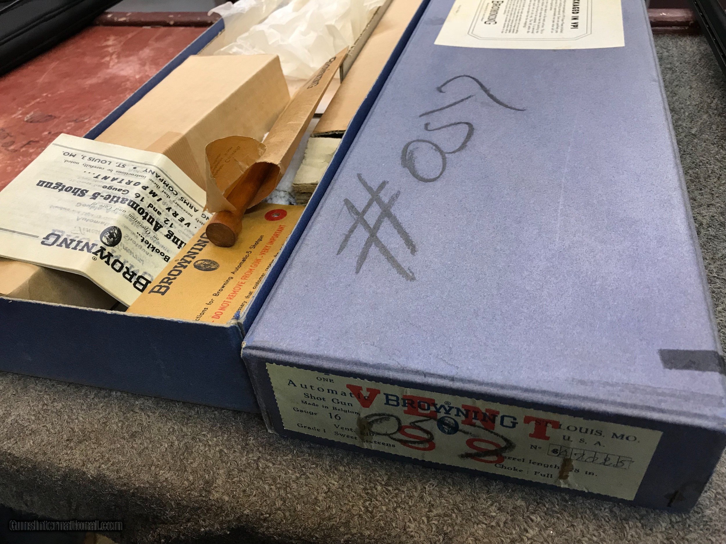 Description: BROWNING A-5 SWEET SIXTEEN IN RARE BLUE BOX,2-3/4" shells,27" vented barell,full choke,14-1/4"lop,in very good condition,original box & papers SOLD Manufacturer: BROWNING Model: sweet sixteen Serial Number: A 7025 Caliber Info: 16 |