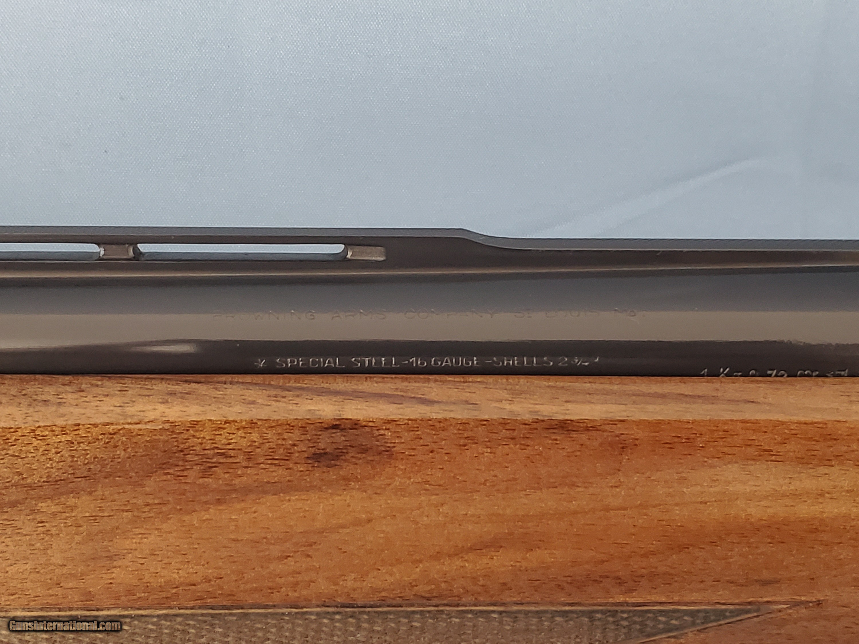 Description: MADE IN BELGIUM IN 1954. BARREL IS 28'' WITH A VENT RIB AND CHOKED FULL. FULL RESTORATION. PLEASE ADD $75 FOR SHIPPING. SOLD Curio/Relic: Yes Shotgun Gauge: 16 Gauge Manufacturer: BROWNING Model: AUTO 5 Condition: EXCELLENT Metal Condition: E Wood Condition: EXCELLENT Bore Condition: EXCELLENT Action: SEMI Triggers: SINGLE/GOLD LOP: 14 1/4'' Weight: 7 LB 12 OZ Extras: NONE |