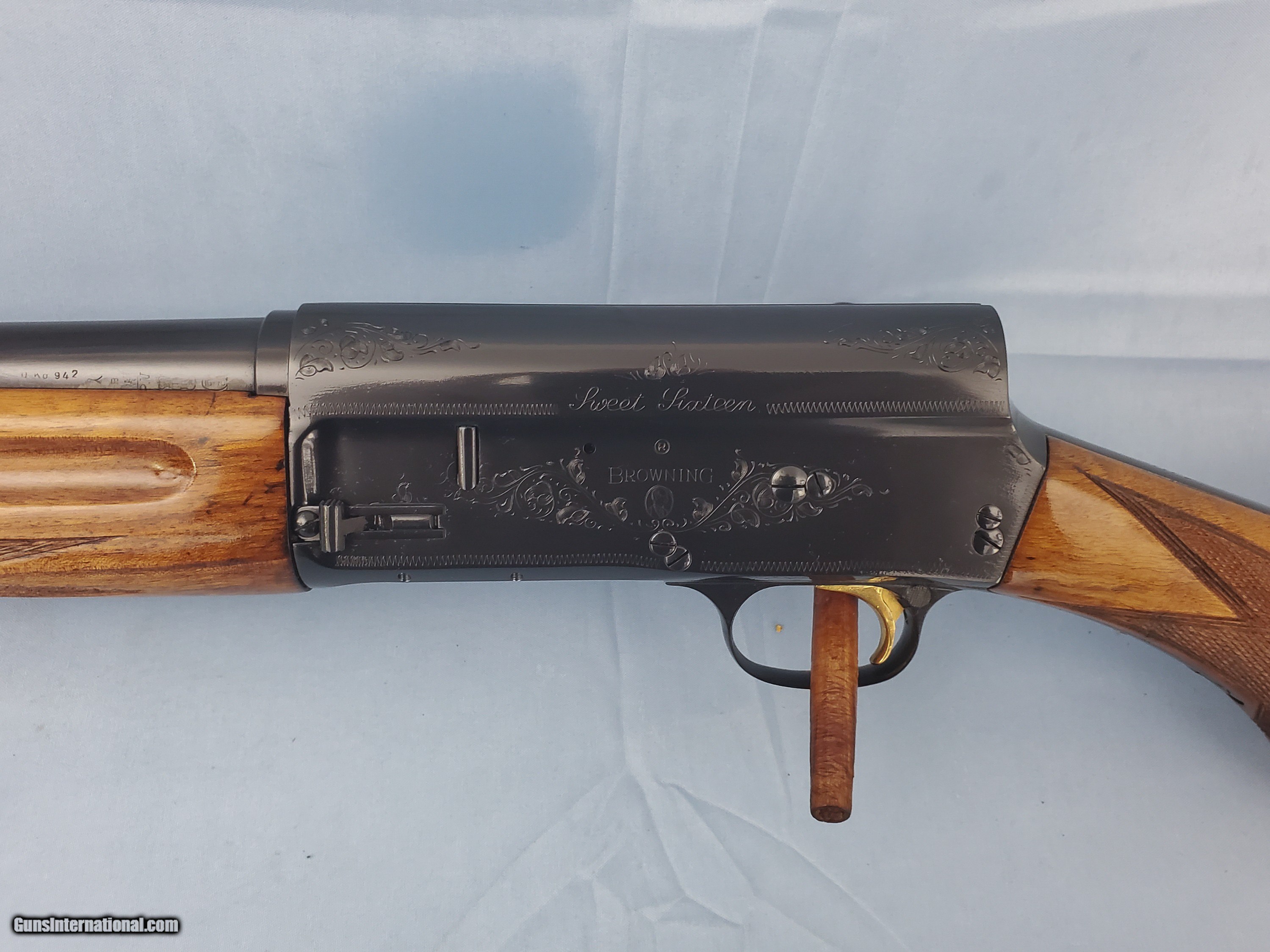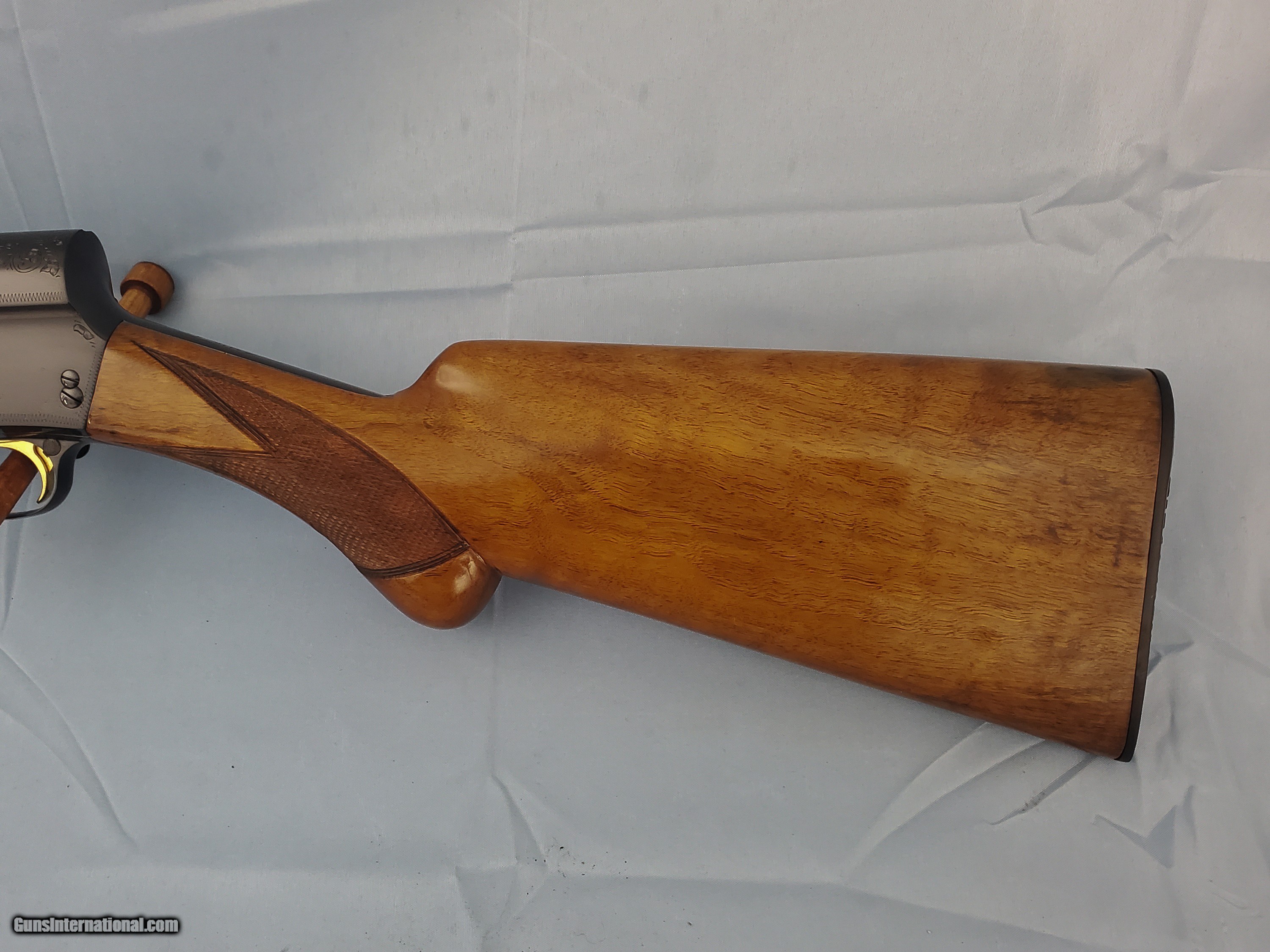 Description: MADE IN BELGIUM IN 1954. BARREL IS 28'' WITH A MATTED RIB AND CHOKED MOD. FULL RESTORATION. PLEASE ADD $75 FOR SHIPPING. SOLD Curio/Relic: Yes Shotgun Gauge: 16 Gauge Manufacturer: BROWNING Model: AUTO 5 Condition: EXCELLENT Metal Condition: EXCELLENT Wood Condition: EXCELLENT Bore Condition: EXCELLENT Action: SEMI Triggers: GOLD LOP: 14 1/4'' Weight: 7 LB 4 OZ Extras: NONE |