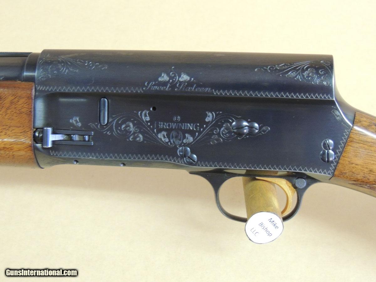 Description: BROWNING BELGIAN A5 SWEET 16 16 GAUGE SHOTGUN, 28" VENT RIB BARREL, CHOKED FULL, 98% BLUE, WOOD EXCELLENT WITH LIGHT FIELD USE, BELGIAN MANUFACTURE CIRCA 1966 $1499 ******* (PLEASE REFERENCE OUR INVENTORY NUMBER) (PAYMENT OPTIONS) (Postal Money Order) (Cashiers Checks) (Personal Checks (Item held until Check Cleared) (Layaway 90 days same as cash -Deposit required-Terms and Conditions Apply) (Credit Cards Visa or Master Card 4% fee added to total sale) (GA residents 7% sales Tax Applies) (EMAIL mikebishopllcgmail ) (FAX 888-597-1394) (BEST PHONE 229-424-8450) (Shipping $35.00) SOLD |