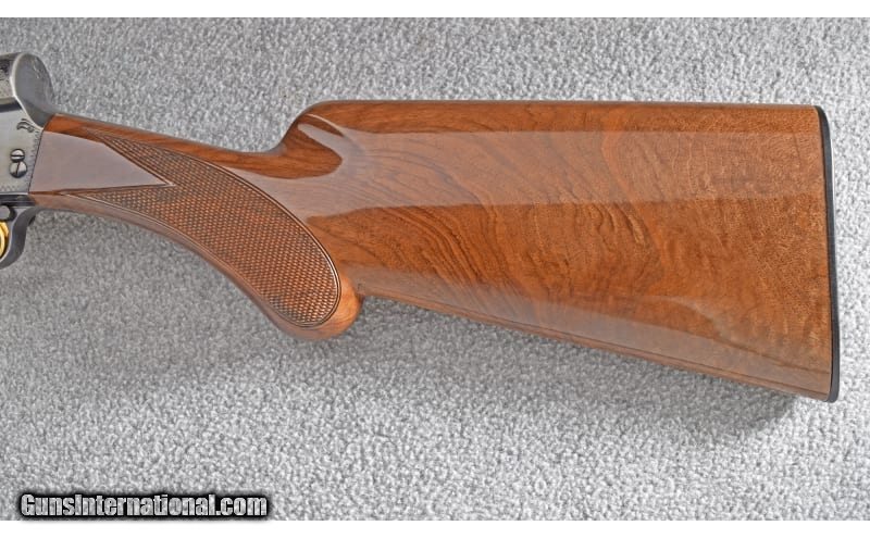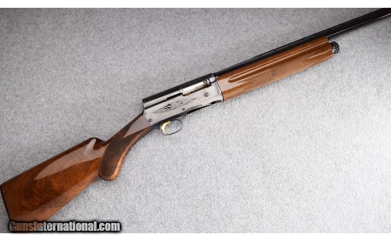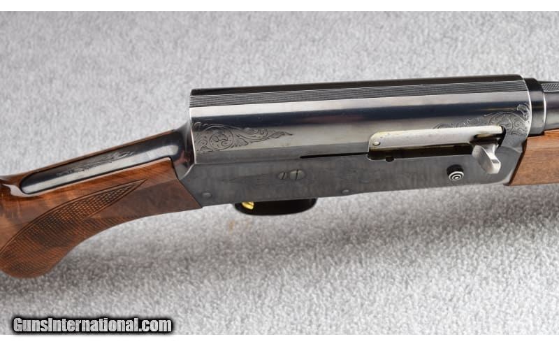 Description: This Belgian manufactured Browning A-5 is in excellent overall condition showing light wear. Wood is solid and may have been replaced. Butt Plate appears new and does not fit well. Stock has beautiful figure and remains scratch free. Barrel blue is excellent with matte vent rib. Receiver shows only blue loss on high spots and edges. Gun is complete with Poly Choke mounted on barrel. Round Knob - Long Tang gun. Even if wood has been replaced this is a lovely gun in 20 Ga. ! 20 Gauge SOLD Chambers: 2 3/4 Metal Condition: Very Good Wood Condition: Excellent Bore Condition: Excellent Barrels: 24" Vent Rib Triggers: Factory Stock Dimensions: 14 1/4" LOP Fore End: Checkered Walnut Round Knob Long Tang - Checkered Walnut Forend Butt Pad: """FN Automatic"" Black Plastic Butt Plate Weight: 7 lbs Sights: Single Front Bead - Integral Notch Rear Chokes: Poly Choke Item Location: Wheeling |